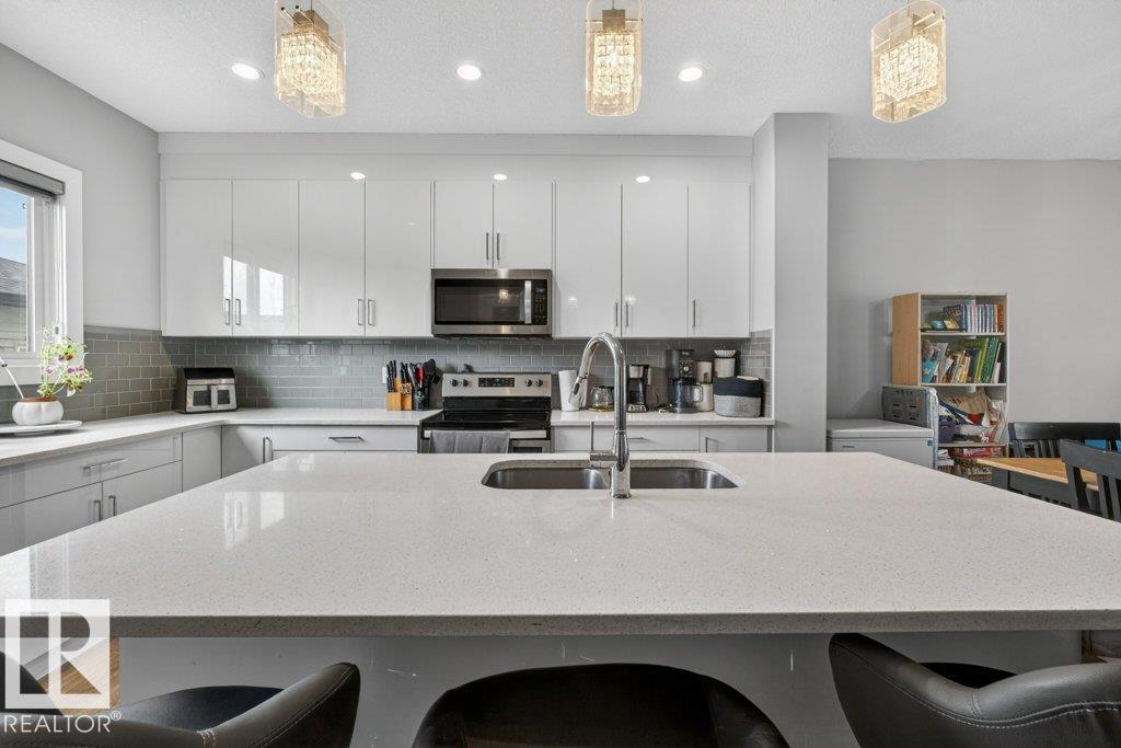 Welcome to this legally suited home in the vibrant community of Blackstone. The main level features a bright, open-concept layout anchored by a modern kitchen with stainless steel appliances, a spacious dining area, and a generous living room designed for comfortable everyday living. Upstairs, the expansive primary bedroom offers a private 4-pce ensuite and large walk-in closet, while two additional bedrooms, another full 4-pce bathroom, and dedicated upper-floor laundry complete the level. The legal basement suite contains a full kitchen, large bedroom, 3-pce bathroom, living space, and separate laundry, providing a thoughtful layout. Outside, tenants will appreciate the fenced yard and double detached garage, while the location offers excellent access to schools, parks, shopping, and community amenities. With modern finishes, and a functional layout, this property is turnkey and ready for you. (id:63190)