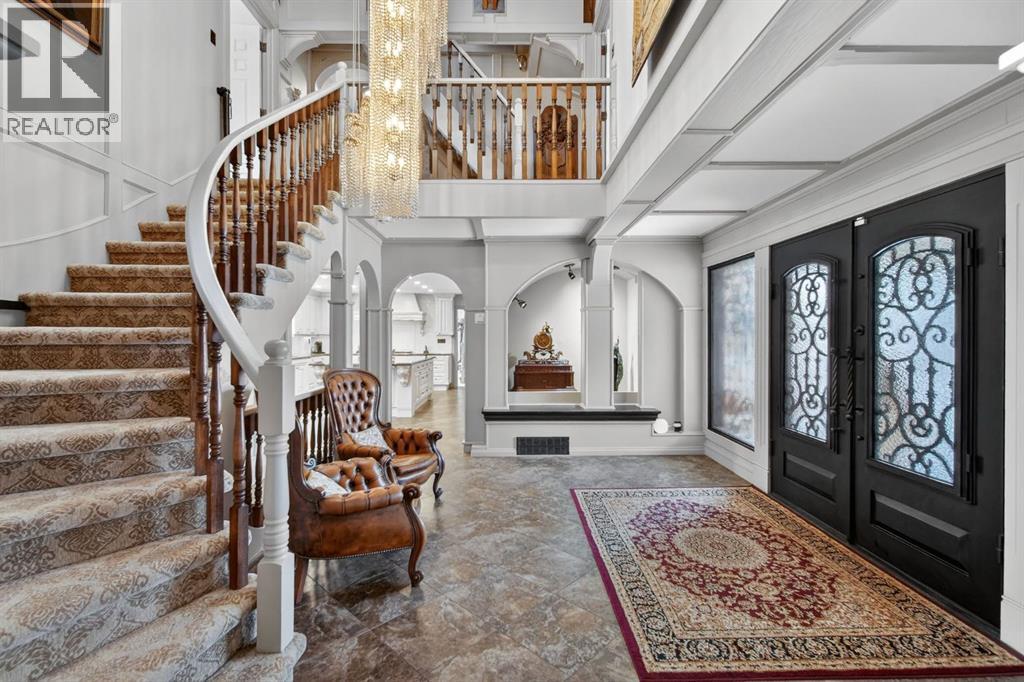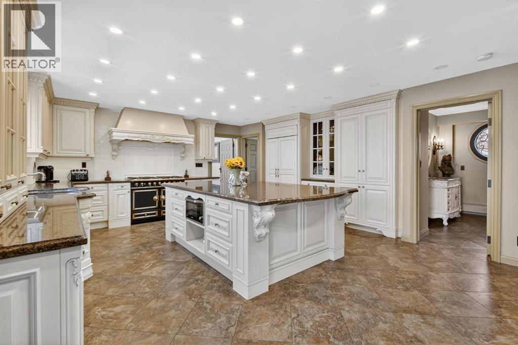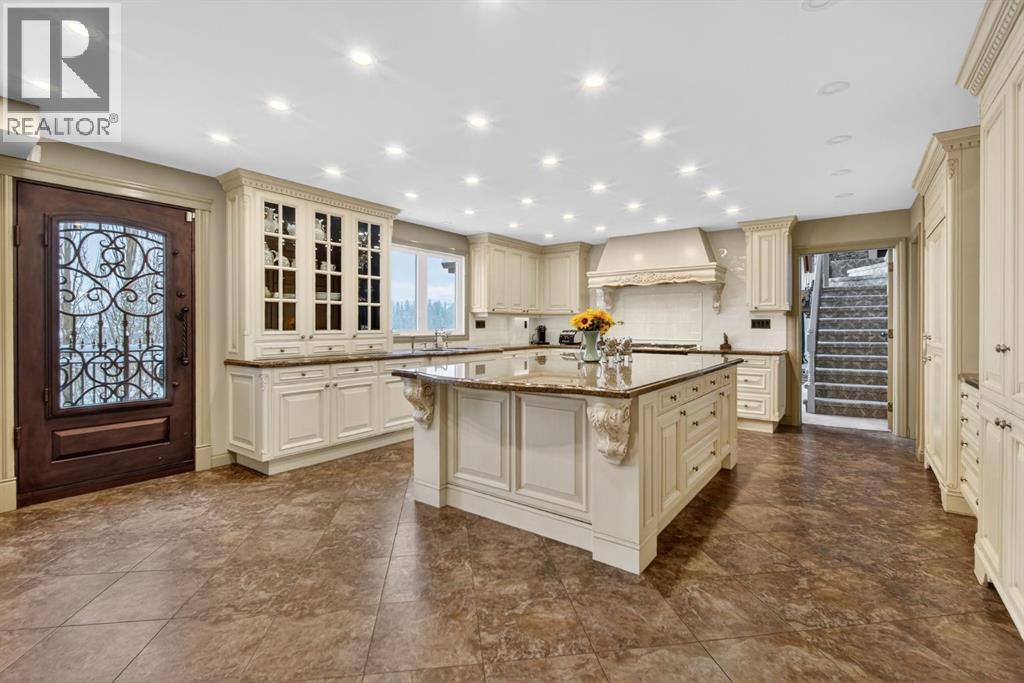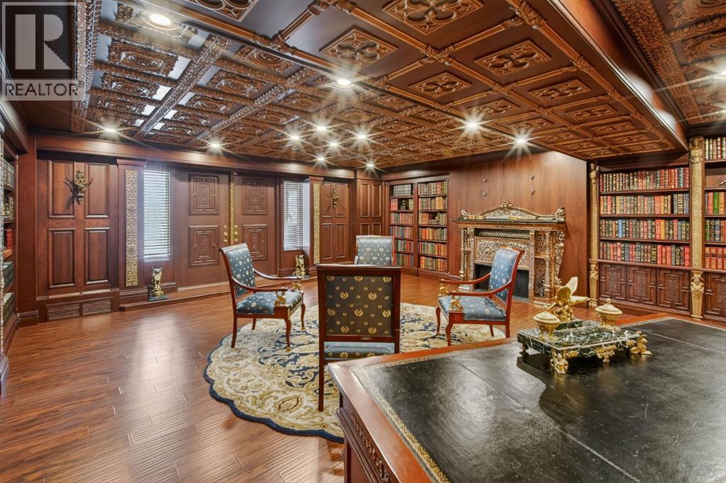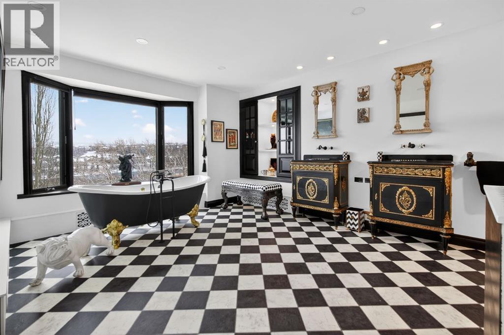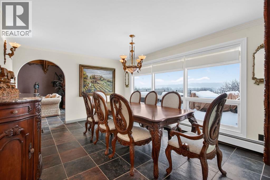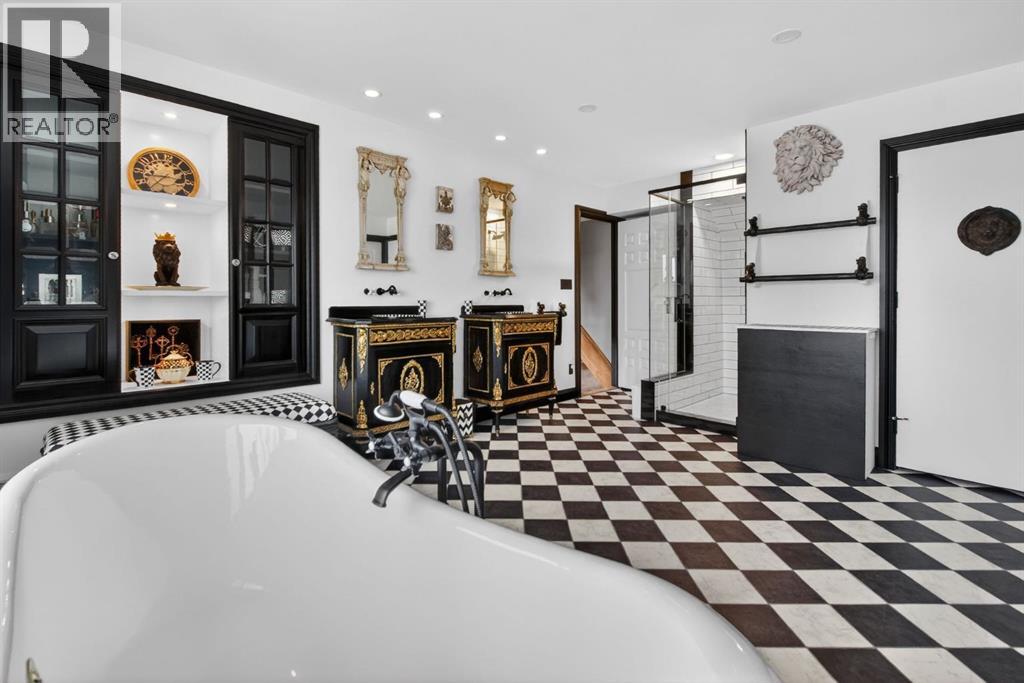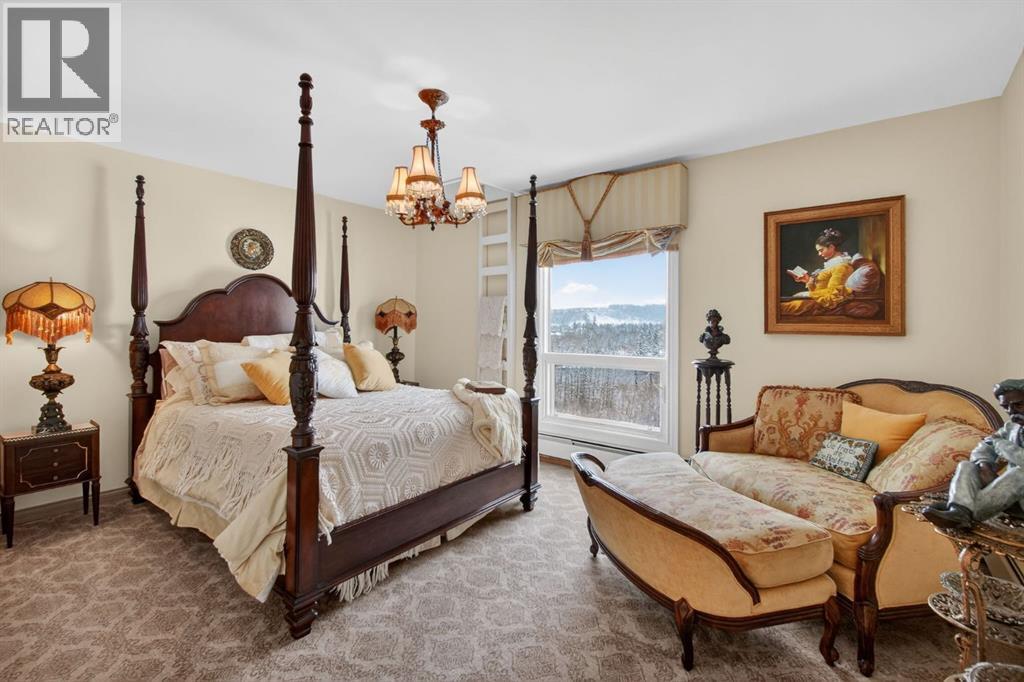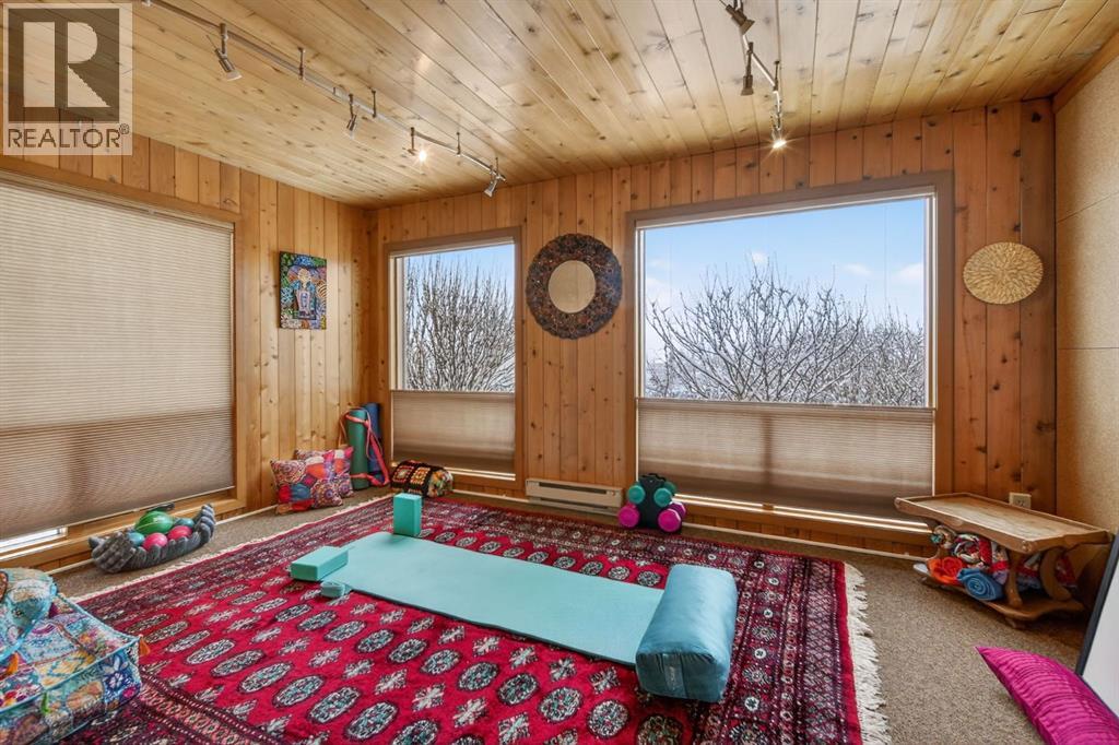 This home makes an immediate grand impression, inviting and full of curb appeal. Set against a natural reserve and backing onto the Bow River, it offers exceptional views from nearly every room, with mountain vistas best enjoyed from the expansive deck.Inside, the home is warm and welcoming, with thoughtful upgrades throughout, including an updated kitchen, renovated bathrooms, newer windows, and roof shakes. The kitchen is designed for both everyday living and entertaining, seamlessly connecting to the main living areas. The formal dining room captures the views and opens into a vaulted living room featuring a wood burning fireplace.A versatile main floor bedroom with its own 4-piece bathroom, vaulted ceilings, and views of the mature front landscaping is ideal for guests or multi generational living.The primary suite offers a private retreat, complete with a cozy sitting area, fireplace, and elevated design that leads into the upper level bedroom space with a 5-piece ensuite. Two additional spacious bedrooms upstairs share a well appointed 4-piece bathroom.The walkout basement is built for entertaining, featuring a large family room with fireplace, a 2-piece bathroom, and an expansive flex area. There is also access to a library with its own 3-piece bathroom and a secret room tucked just off the library. (id:63190)