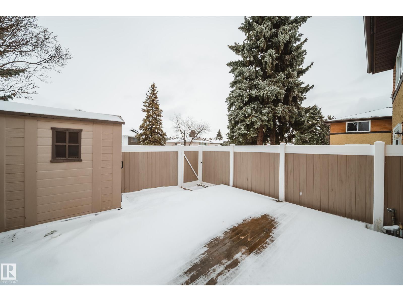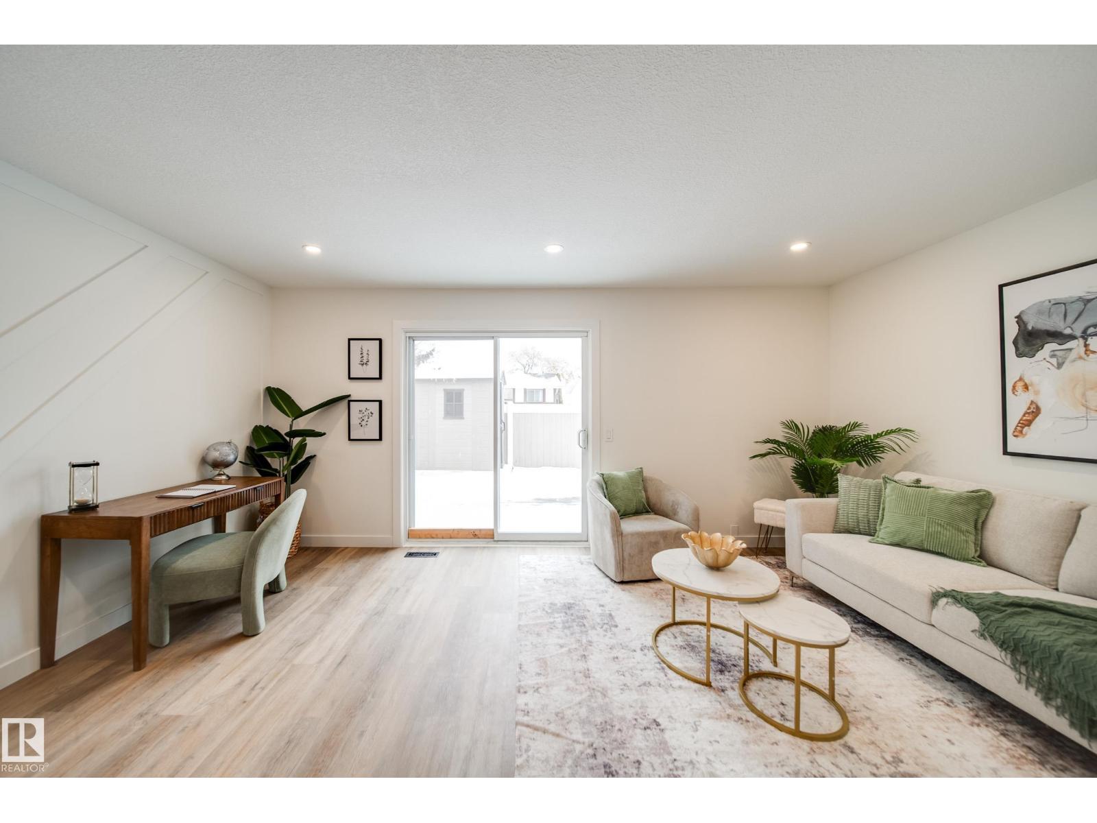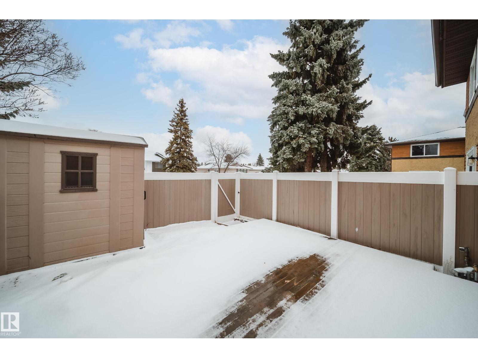 Welcome home to this beautifully RENOVATED townhouse. The moment you step in you will be wowed by all the work that has gone into the renovations. From the NEW KITCHEN to the FULLY FINISHED basement this home has it all. The living room is fabulous with feature wall and room for an office area, extra space for toys or whatever suits your needs. Upstairs has 3 bedrooms as well you have a BRAND NEW 4 piece bathroom with deep soaker tub. Fully finished basement with a 3 piece bath. Finishing off the home you have your own private backyard with shed. ALL FURNITURE CAN BE INCLUDED IN THE SALE. UPGRADES include: QUARTZ throughout, new vinyl plank flooring, new doors, trim, pot lights, all new LIGHTING, PLUSH CARPET, all new HARDWARE, fresh paint, and tile surround. Close to all amenities, playground/SCHOOL short walk away, minutes to the Henday and Yellowhead. (id:63190)