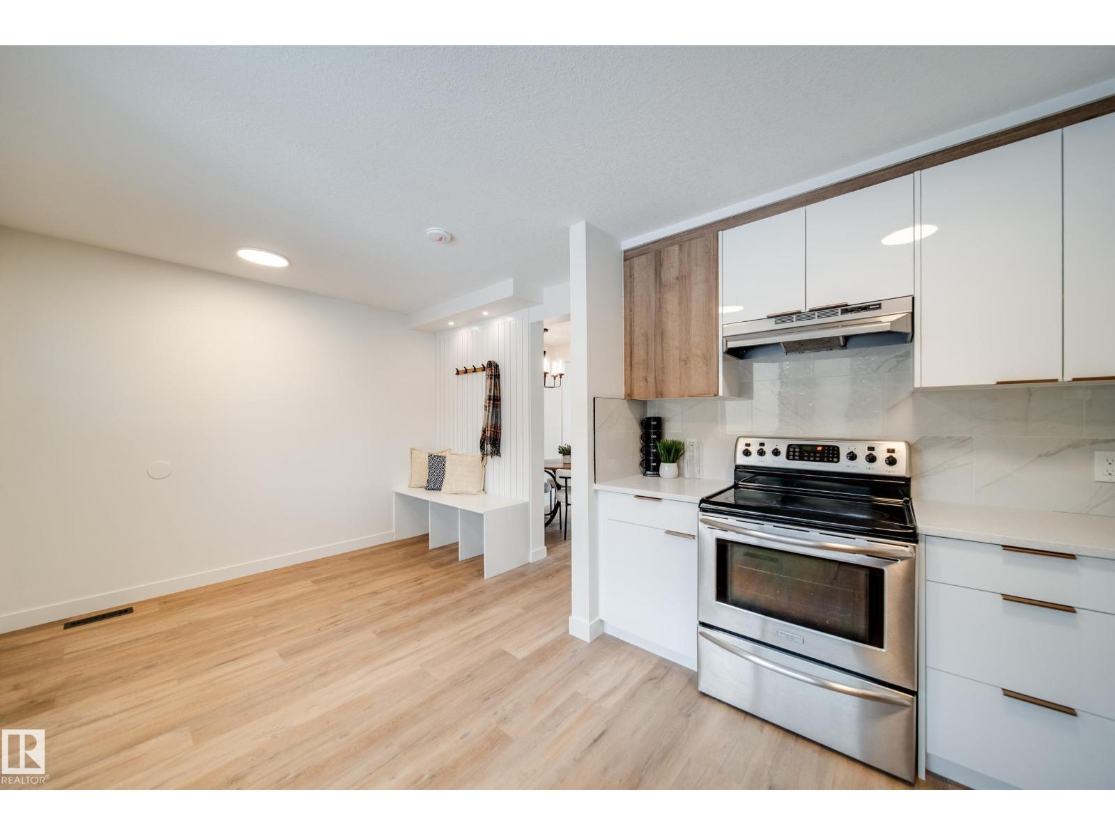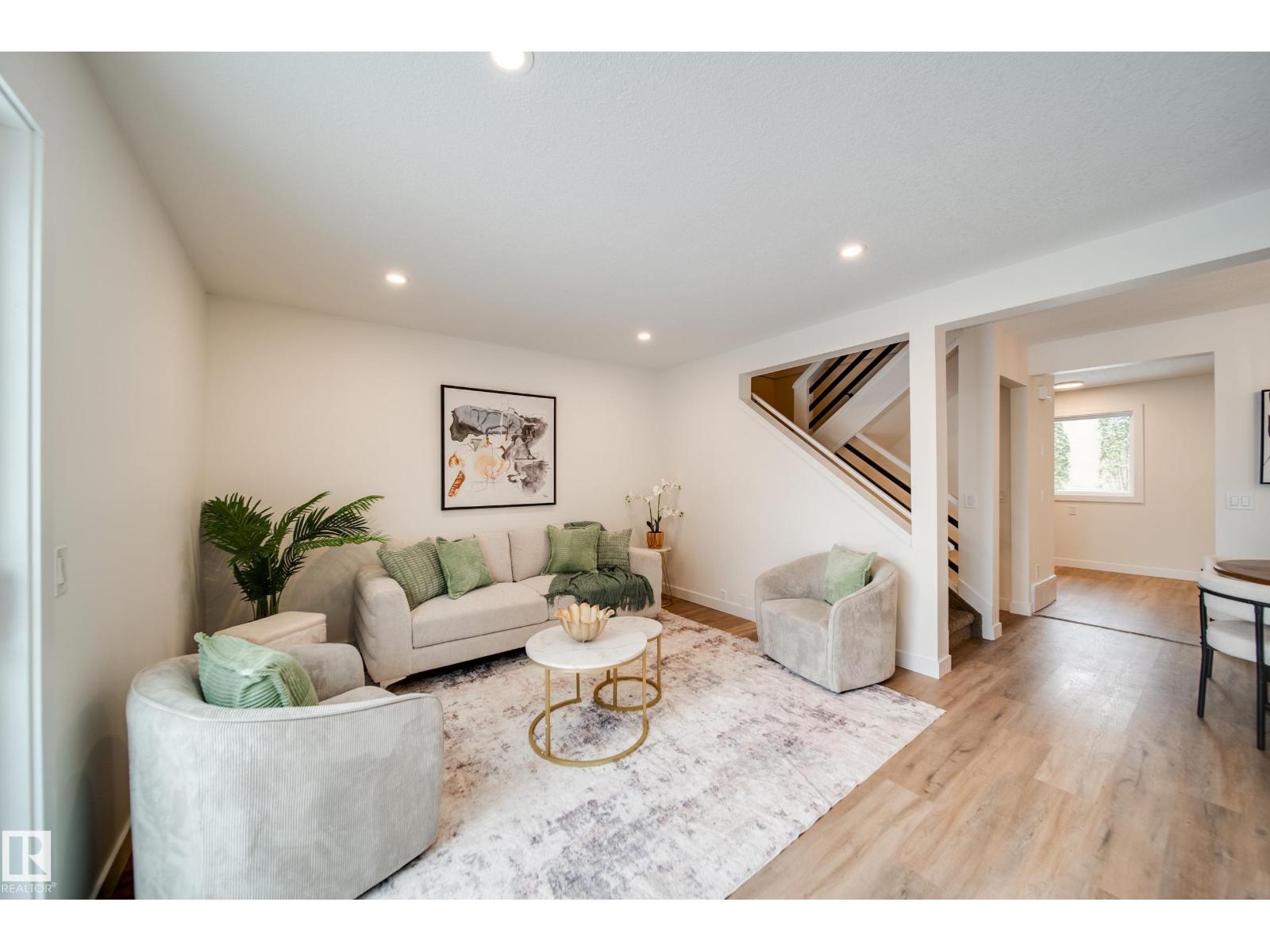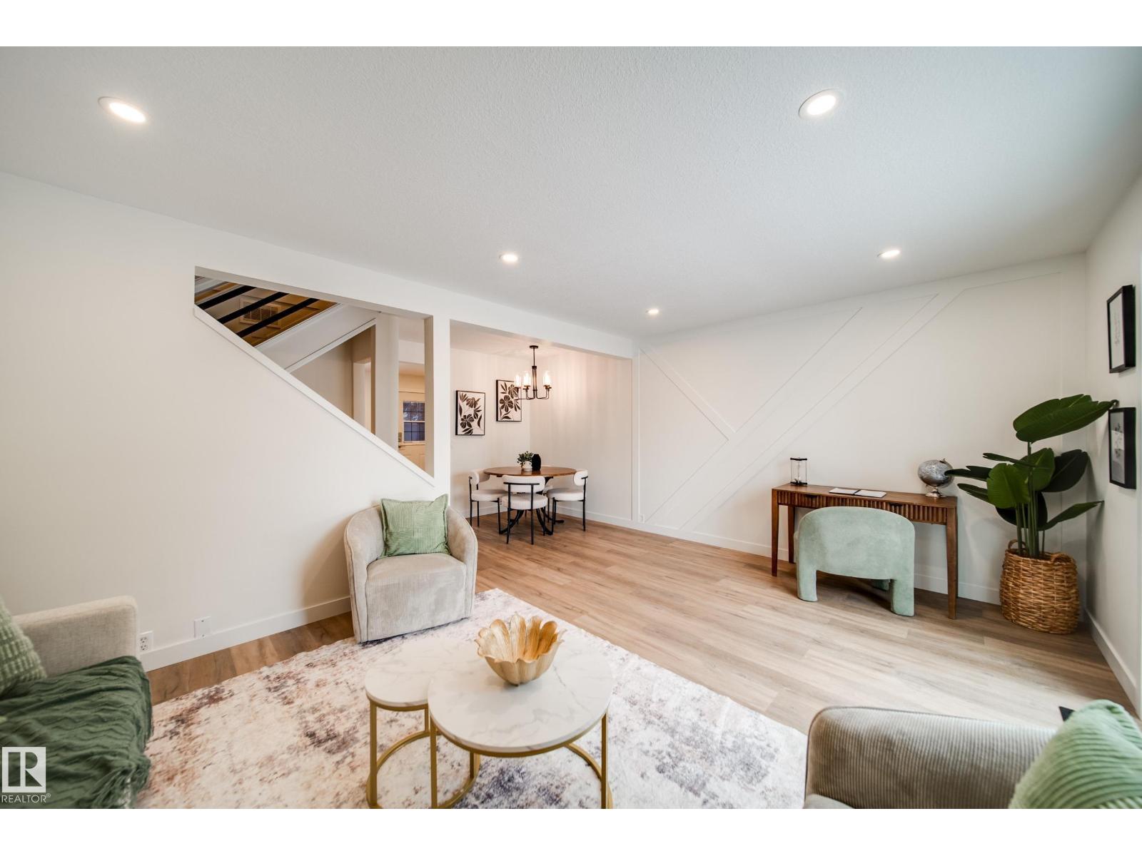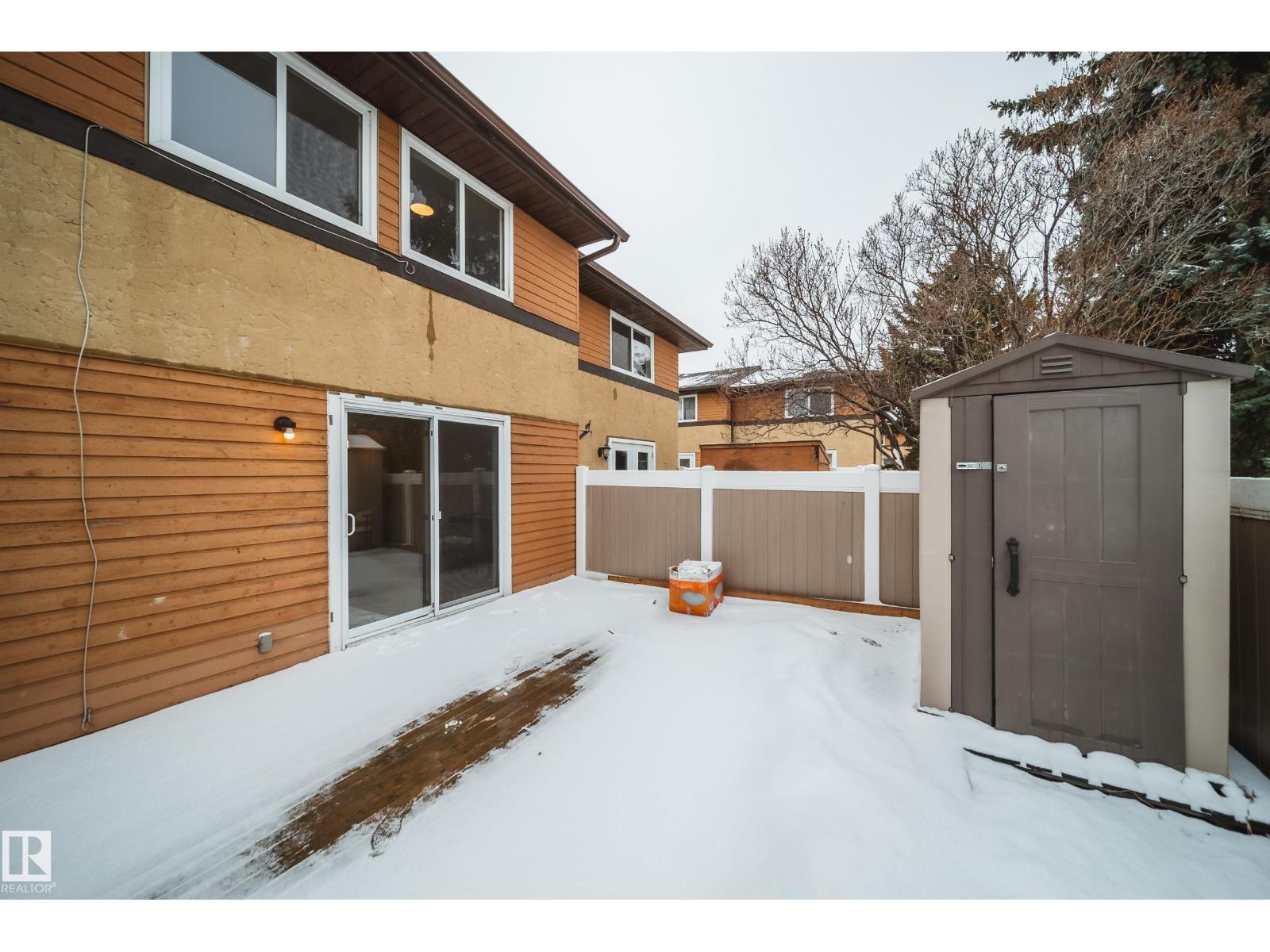 Welcome home to this beautifully RENOVATED townhouse. The moment you step in you will be wowed by all the work that has gone into the renovations. From the NEW KITCHEN to the FULLY FINISHED basement this home has it all. The living room is fabulous with feature wall and room for an office area, extra space for toys or whatever suits your needs. Upstairs has 3 bedrooms as well you have a BRAND NEW 4 piece bathroom with deep soaker tub. Fully finished basement with a 3 piece bath. Finishing off the home you have your own private backyard with shed. ALL FURNITURE CAN BE INCLUDED IN THE SALE. UPGRADES include: QUARTZ throughout, new vinyl plank flooring, new doors, trim, pot lights, all new LIGHTING, PLUSH CARPET, all new HARDWARE, fresh paint, and tile surround. Close to all amenities, playground/SCHOOL short walk away, minutes to the Henday and Yellowhead. (id:63190)