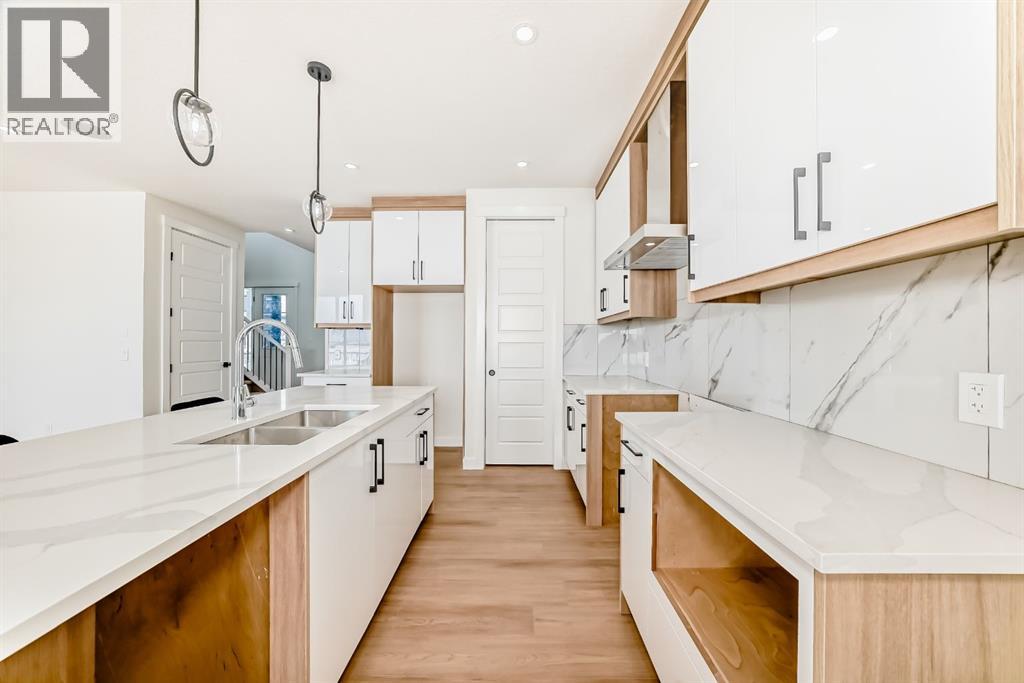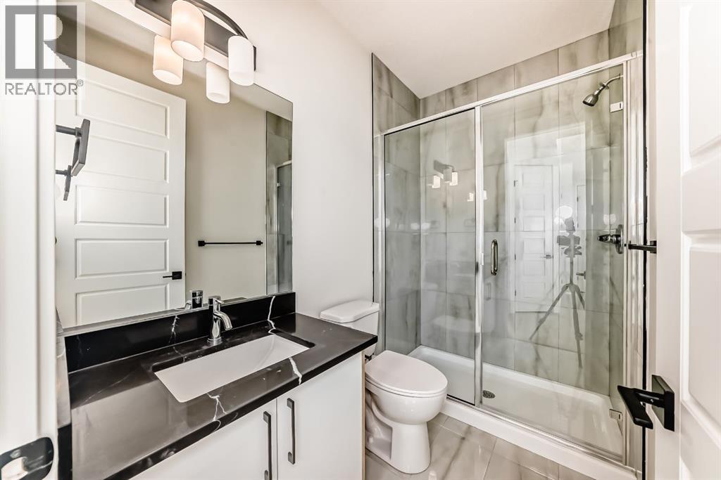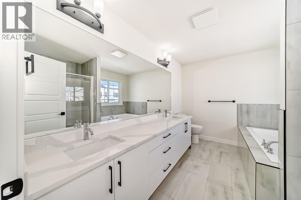Welcome to Waterford Estates, one of Chestermere’s most sought after new communities. Built by Paramount Homes, this brand new duplex blends modern design with thoughtful functionality, making it an ideal choice for families. The open concept main floor is filled with natural light and features a stylish living room with a contemporary fireplace, a beautifully appointed kitchen with quartz countertops, sleek cabinetry, and a walk-in pantry, along with a full bathroom and a versatile main floor office or flex space. Upstairs, you’ll find a spacious bonus room, convenient upper floor laundry, and three well sized bedrooms, including a luxurious primary retreat complete with a spa inspired ensuite and walk-in closet. The undeveloped basement, featuring a separate side entrance, offers excellent flexibility for future development or additional living space. A secondary suite would be subject to approval and permitting by the municipality. Finished with a double attached garage and ideally located near parks, schools, shopping, and the scenic shores of Chestermere Lake, this home delivers the perfect balance of comfort, style, and long term value. (id:63190)