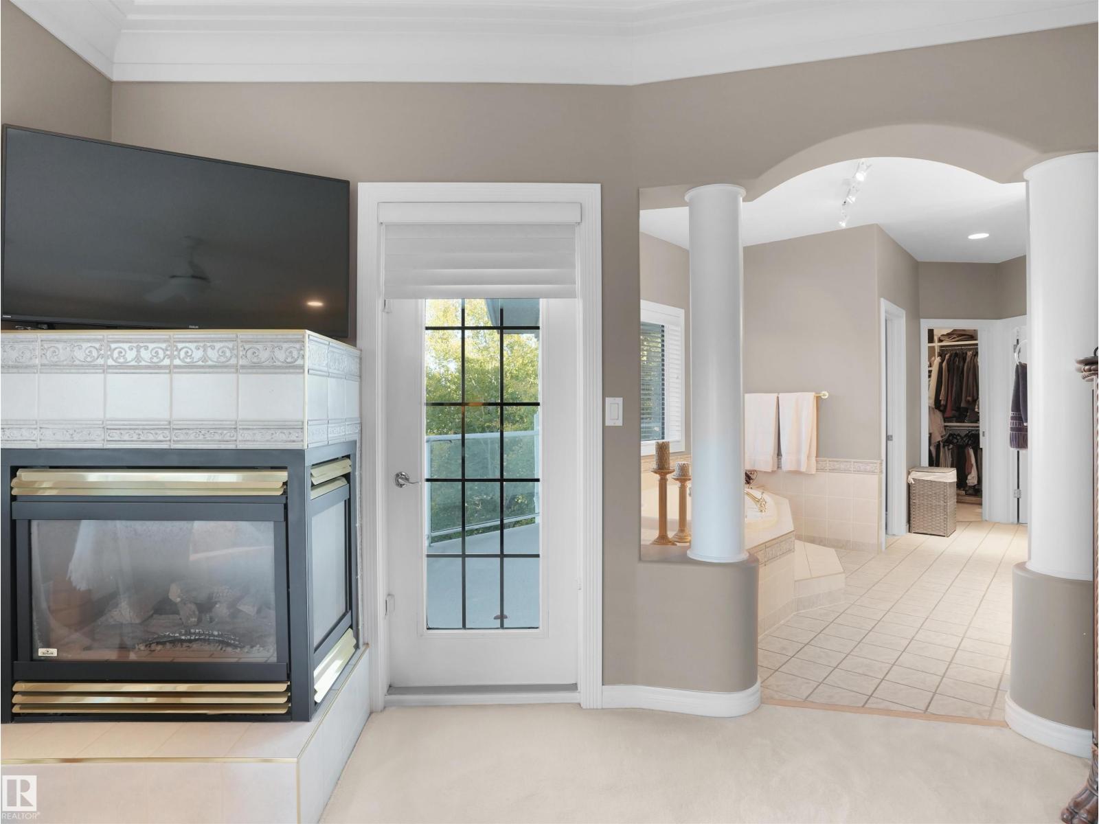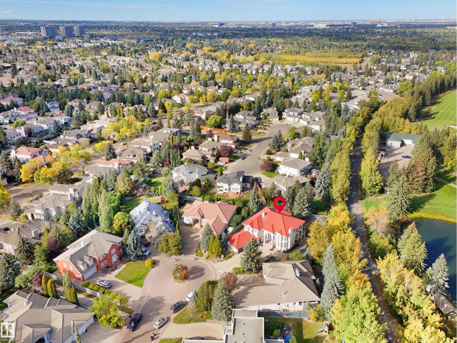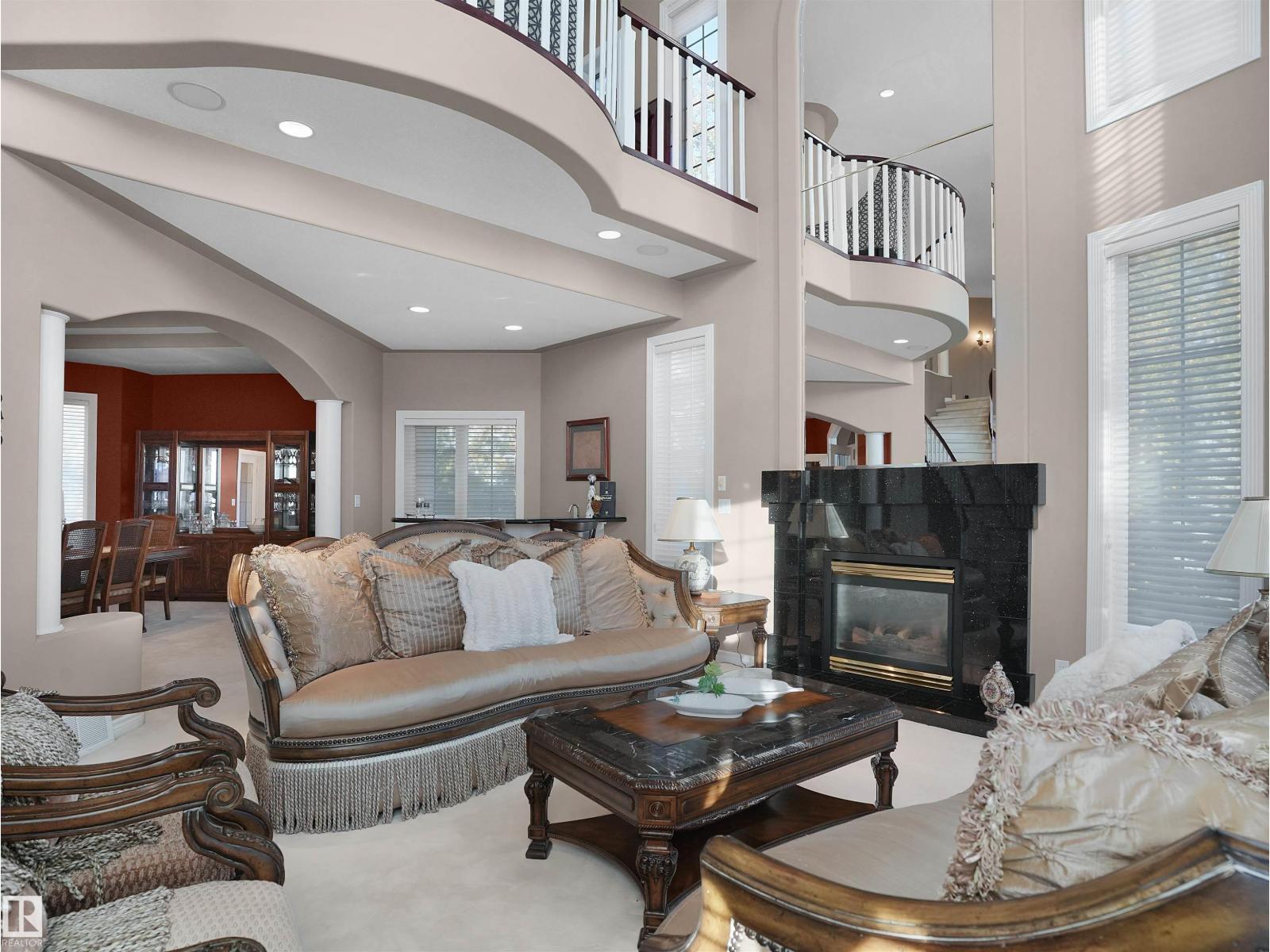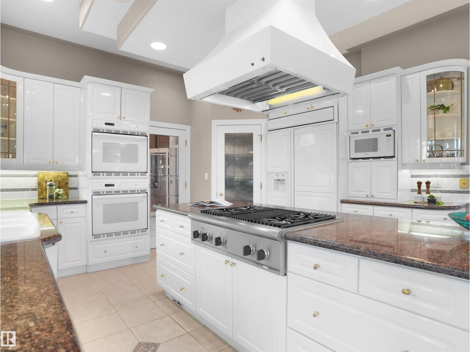 This elegant estate home is set within a prestigious country club, backing onto the golf course with breathtaking river valley views. Situated on a 1/3-acre lot, this custom walk-out offers approximately 6,500 sq. ft. of refined living space. A grand double staircase welcomes you into a home featuring 10’ ceilings, triple-pane windows, and a second private staircase. Enjoy formal living and family rooms with gas fireplaces, a private dining room, den, and loft. The gourmet kitchen showcases double wall ovens, gas cooktop, panelled refrigerator, dishwasher, granite countertops, and a spacious walk-in pantry. The luxurious primary suite features a fireplace, 6-piece ensuite, dual closets, and a private balcony overlooking the course. All five bedrooms include walk-in closets and ensuites. The fully finished walk-out basement offers a kitchenette, bedroom with ensuite, and in-floor heating. Complete with a triple garage, mature landscaping, two furnaces, two A/C units, and two hot water tanks. A must see !! (id:63190)