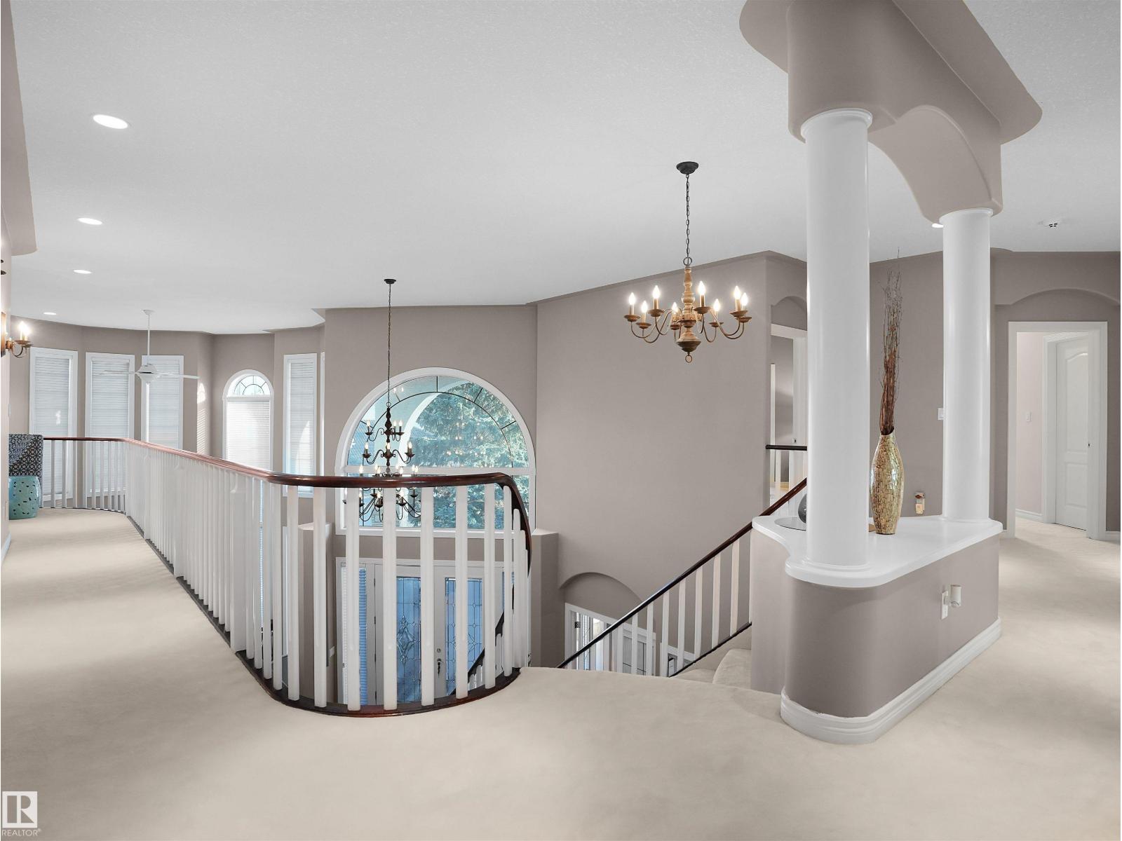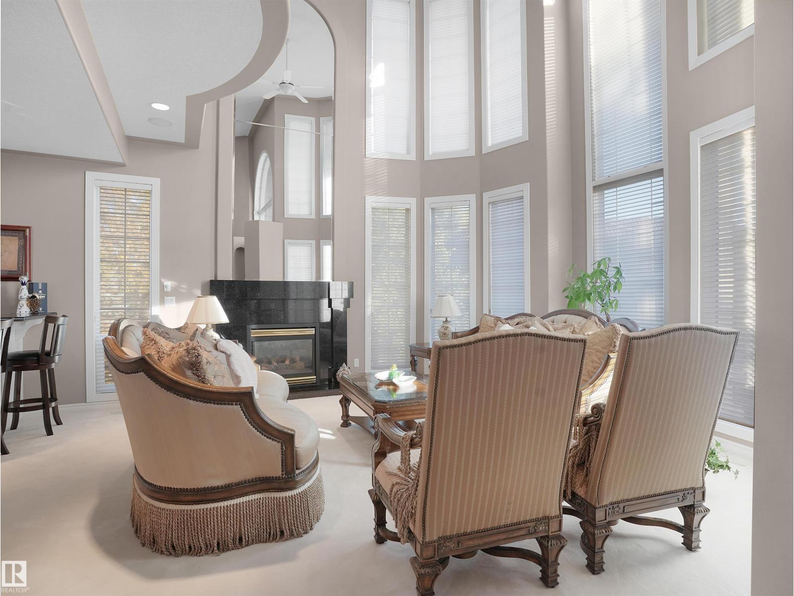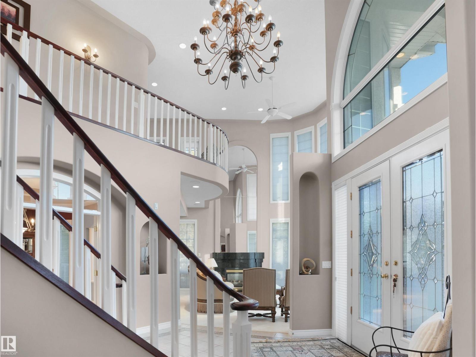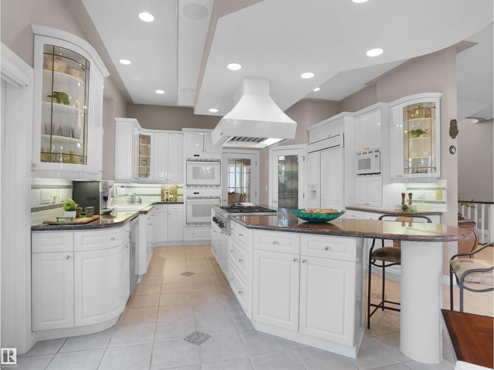 This elegant estate home is set within a prestigious country club, backing onto the golf course with breathtaking river valley views. Situated on a 1/3-acre lot, this custom walk-out offers approximately 6,500 sq. ft. of refined living space. A grand double staircase welcomes you into a home featuring 10’ ceilings, triple-pane windows, and a second private staircase. Enjoy formal living and family rooms with gas fireplaces, a private dining room, den, and loft. The gourmet kitchen showcases double wall ovens, gas cooktop, panelled refrigerator, dishwasher, granite countertops, and a spacious walk-in pantry. The luxurious primary suite features a fireplace, 6-piece ensuite, dual closets, and a private balcony overlooking the course. All five bedrooms include walk-in closets and ensuites. The fully finished walk-out basement offers a kitchenette, bedroom with ensuite, and in-floor heating. Complete with a triple garage, mature landscaping, two furnaces, two A/C units, and two hot water tanks. A must see !! (id:63190)