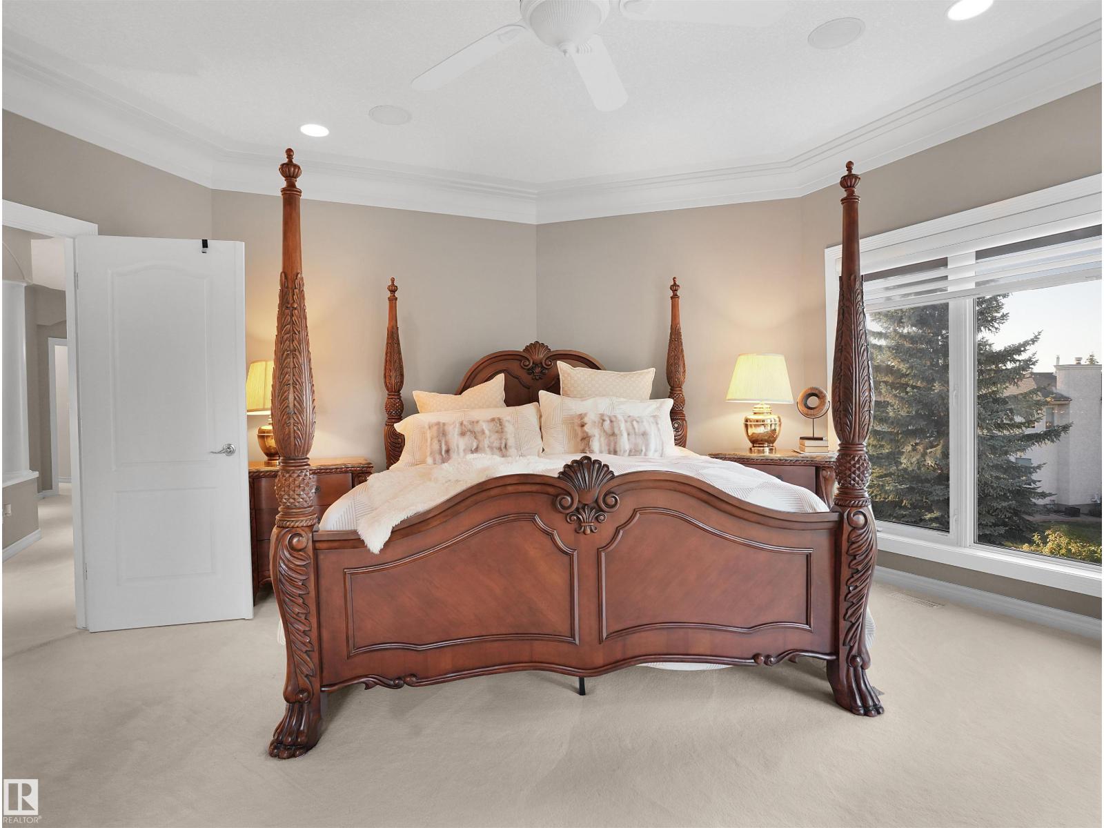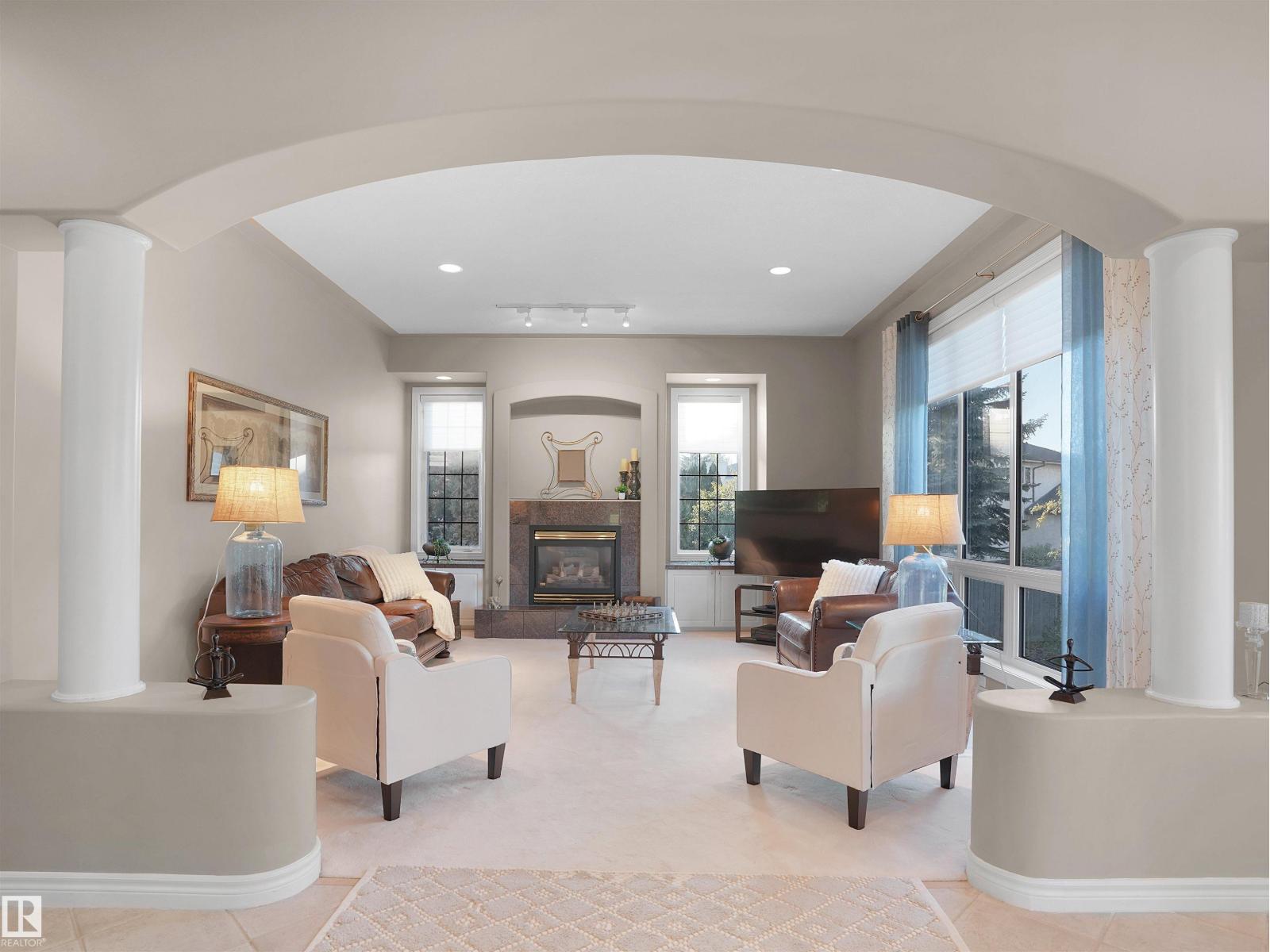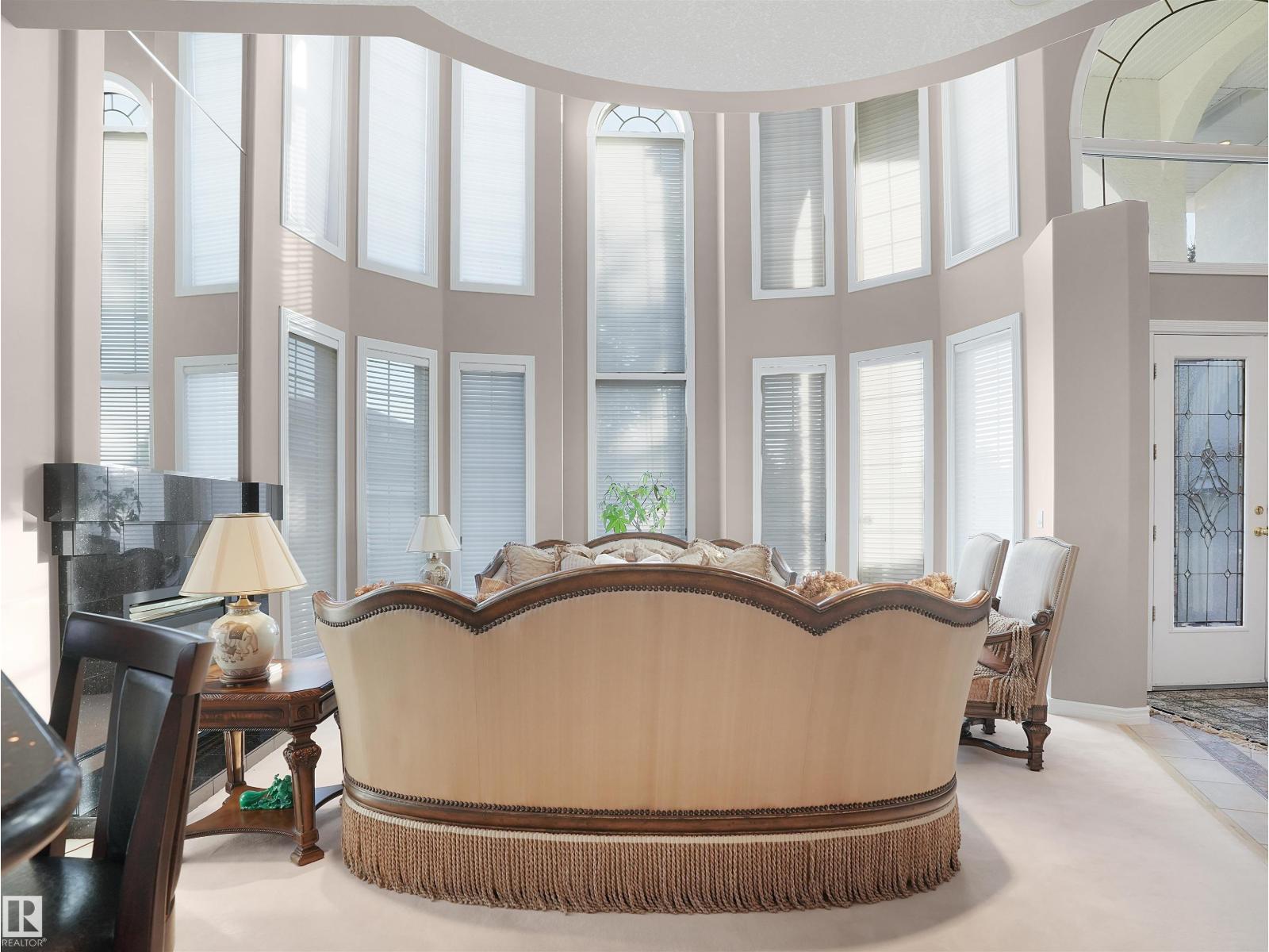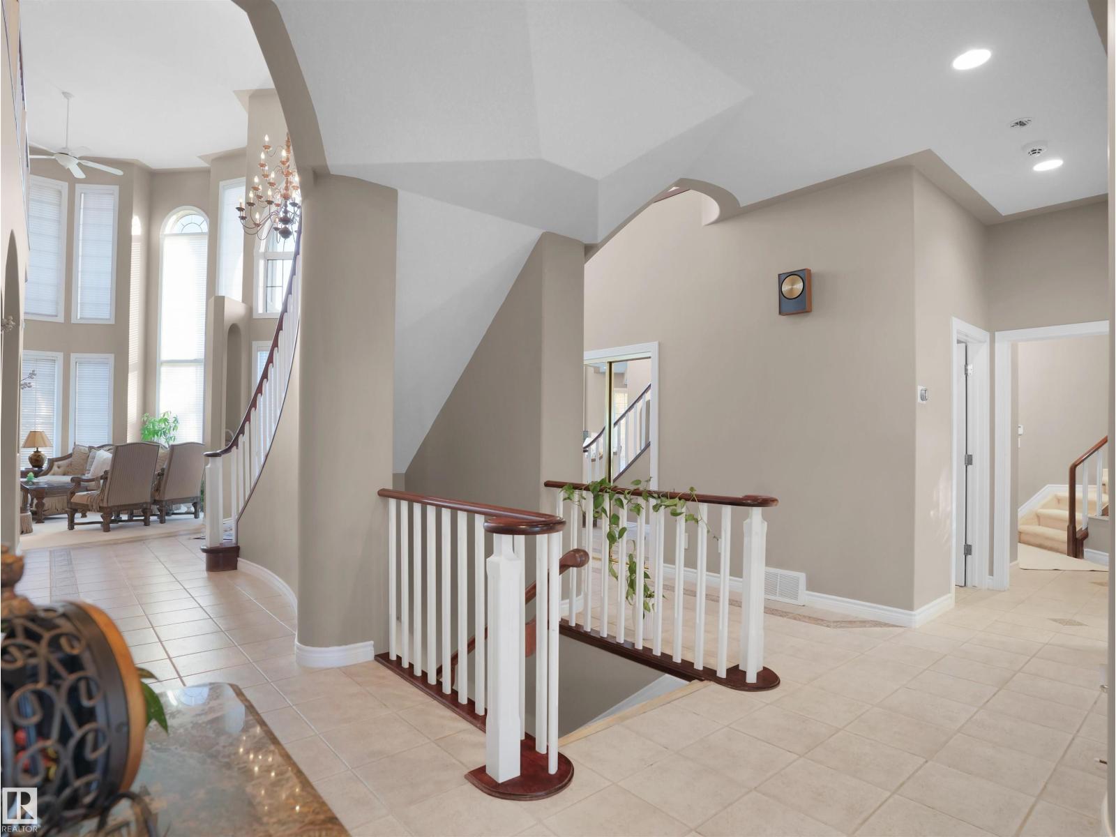This elegant estate home is set within a prestigious country club, backing onto the golf course with breathtaking river valley views. Situated on a 1/3-acre lot, this custom walk-out offers approximately 6,500 sq. ft. of refined living space. A grand double staircase welcomes you into a home featuring 10’ ceilings, triple-pane windows, and a second private staircase. Enjoy formal living and family rooms with gas fireplaces, a private dining room, den, and loft. The gourmet kitchen showcases double wall ovens, gas cooktop, panelled refrigerator, dishwasher, granite countertops, and a spacious walk-in pantry. The luxurious primary suite features a fireplace, 6-piece ensuite, dual closets, and a private balcony overlooking the course. All five bedrooms include walk-in closets and ensuites. The fully finished walk-out basement offers a kitchenette, bedroom with ensuite, and in-floor heating. Complete with a triple garage, mature landscaping, two furnaces, two A/C units, and two hot water tanks. A must see !! (id:63190)