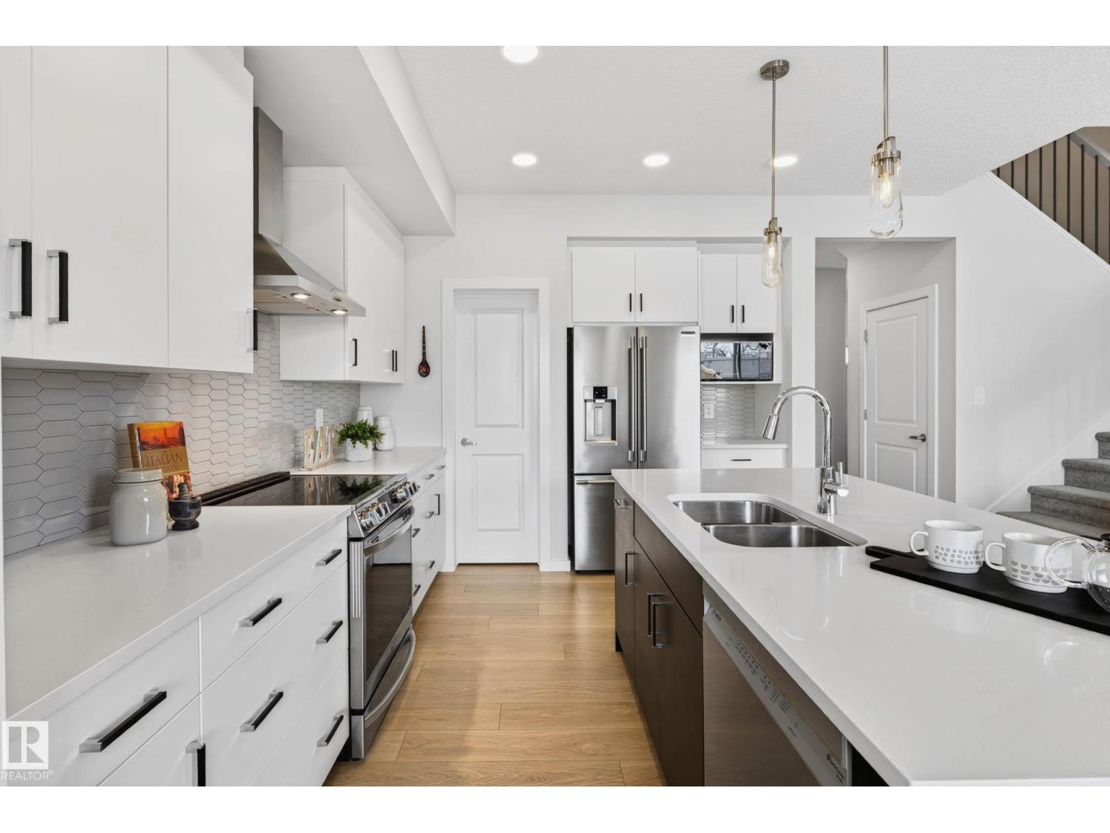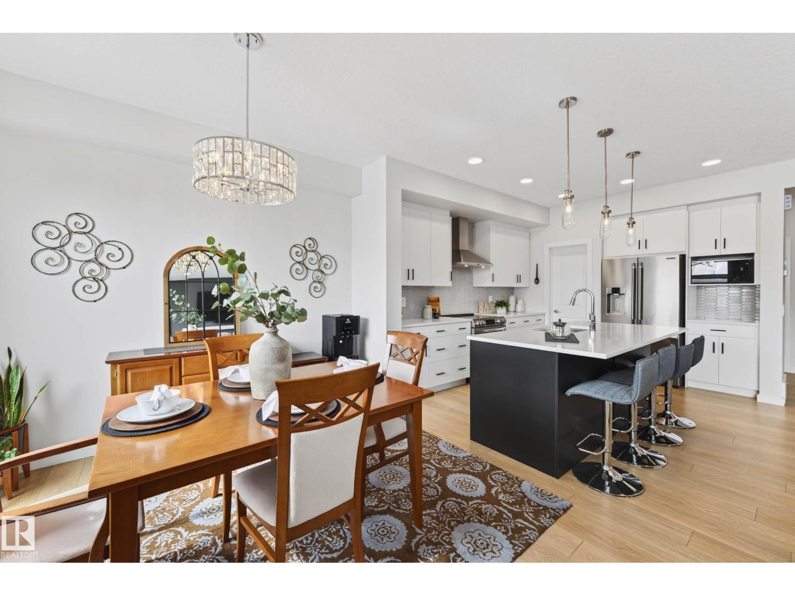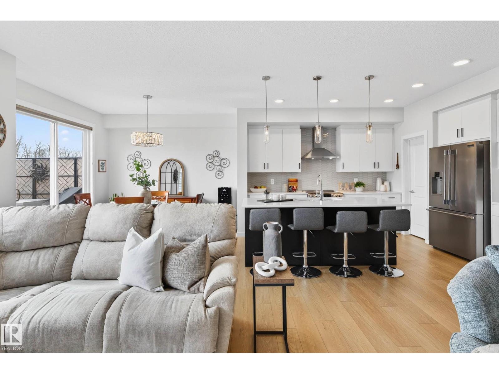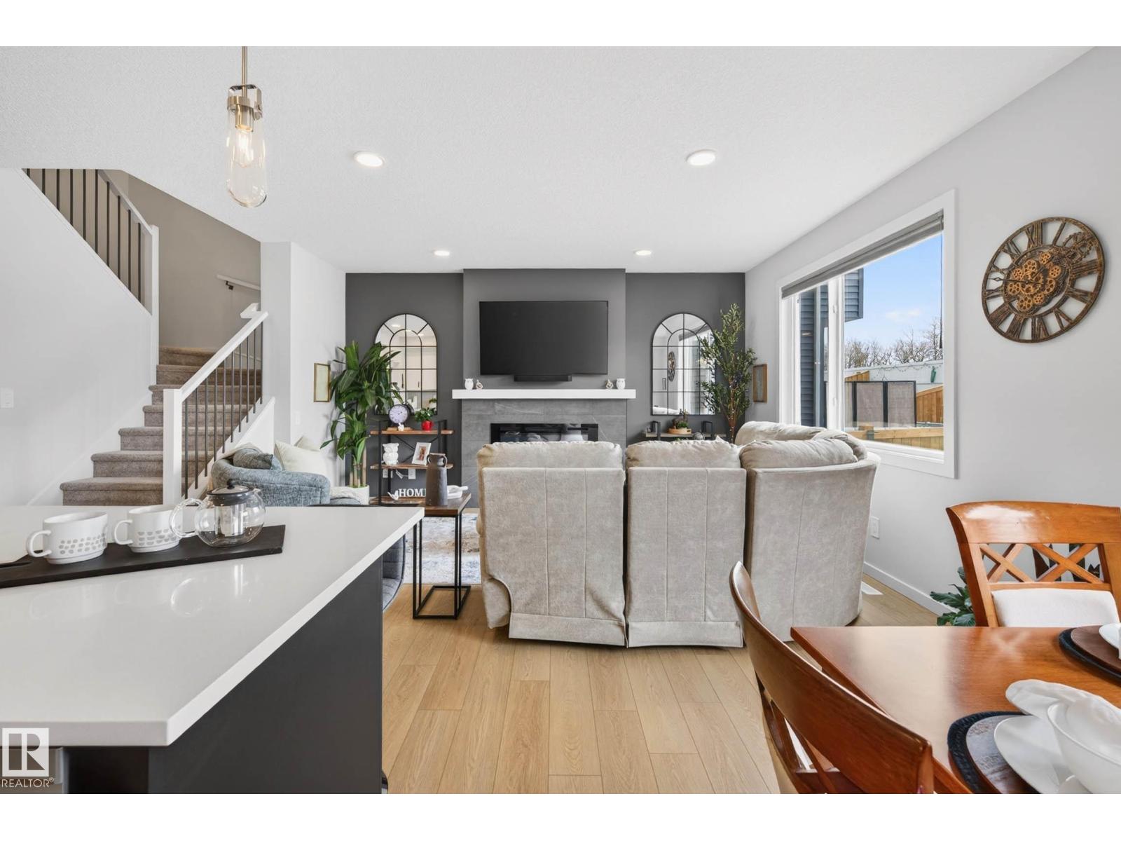 Welcome to this beautifully upgraded home nestled in the vibrant, family-friendly community of Southfork Leduc. Built by Homes By Avi w/extensive upgrades & exceptional pride of ownership. Designed for growing families & future flexibility as home features separate side entrance w/concrete sidewalk & plumbing rough-ins for a potential legal suite in 9’ basement. Step inside a bright, stylish interior where upgrades are immediately evident. Kitchen is functional & elegant, showcasing two-tone cabinetry, upgraded SS Bosh/LG appliances & lighting. Living room is warm & inviting, highlighted by a beautifully tiled fireplace & custom blinds that add a polished, designer finish. Upstairs, you’ll find added touches like iron spindle railings, den, laundry room & WIC's in each bdrm. Extra-large, 2-tier deck (w/weed barrier), gazebo & rock features complete professionally landscaped/fenced yard. Permanent gemstone lighting & Central A/C for added convenience. Nestle your family in this home that is INCREDIBLE! (id:63190)