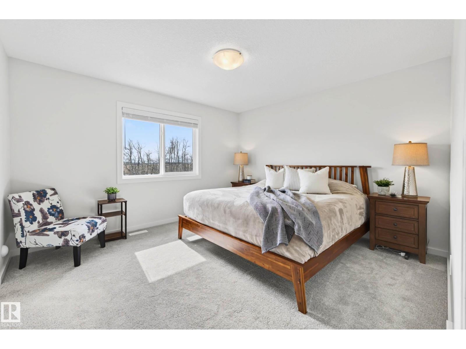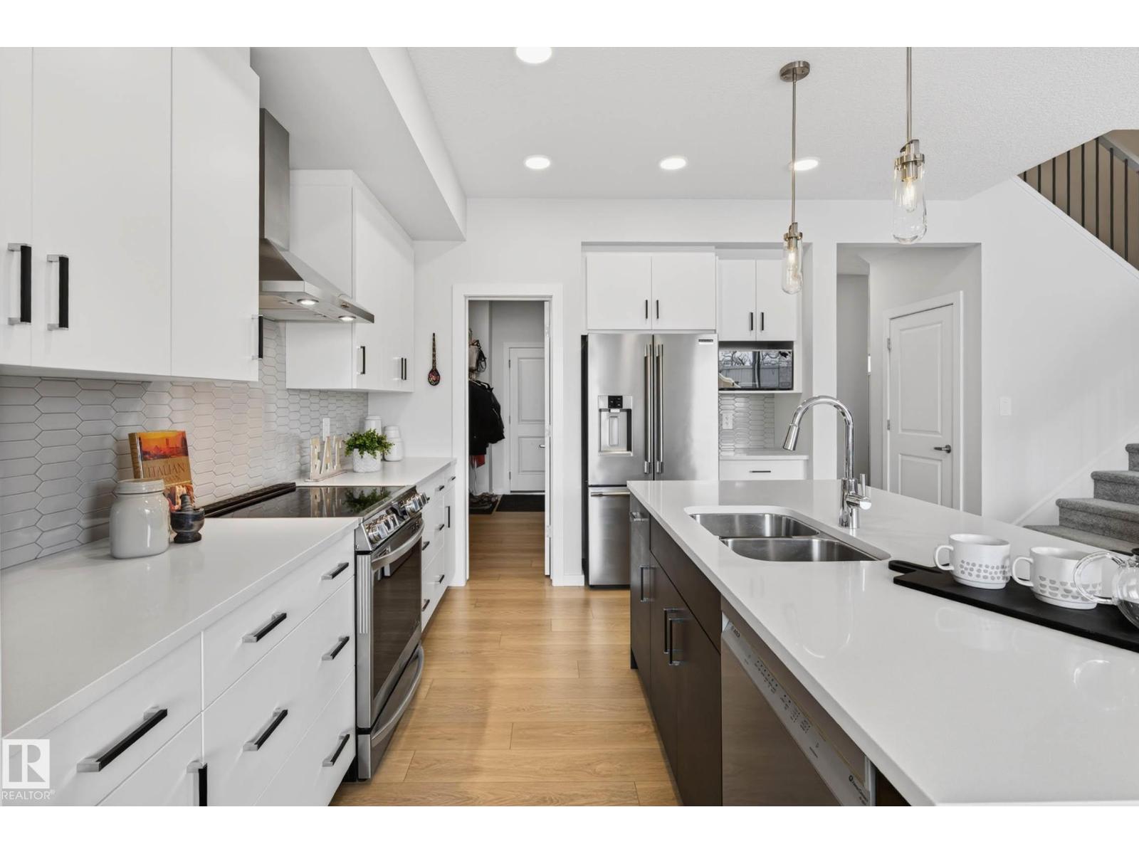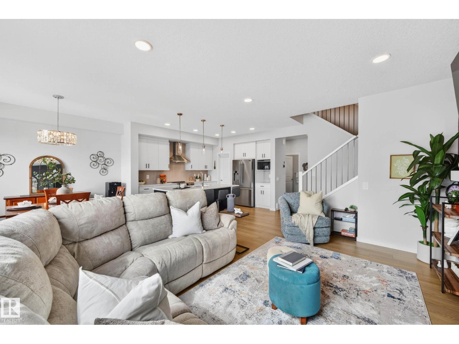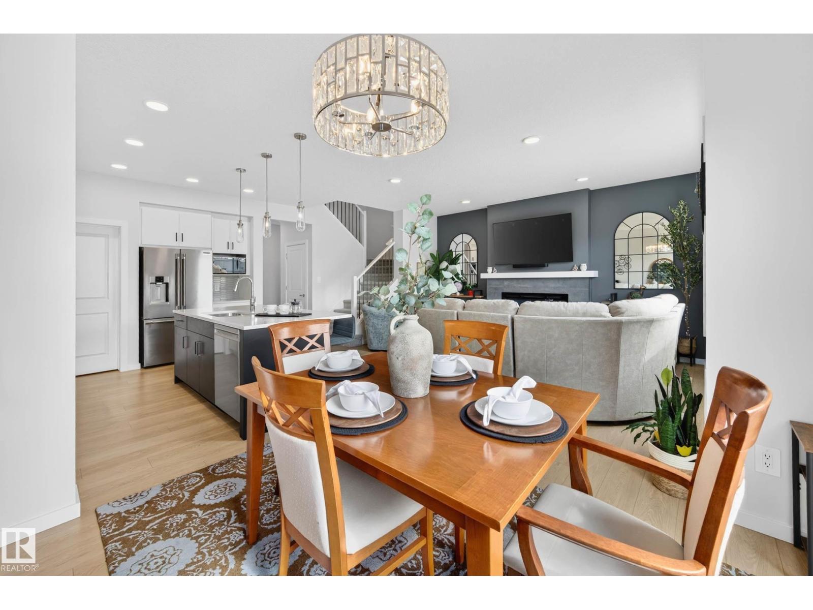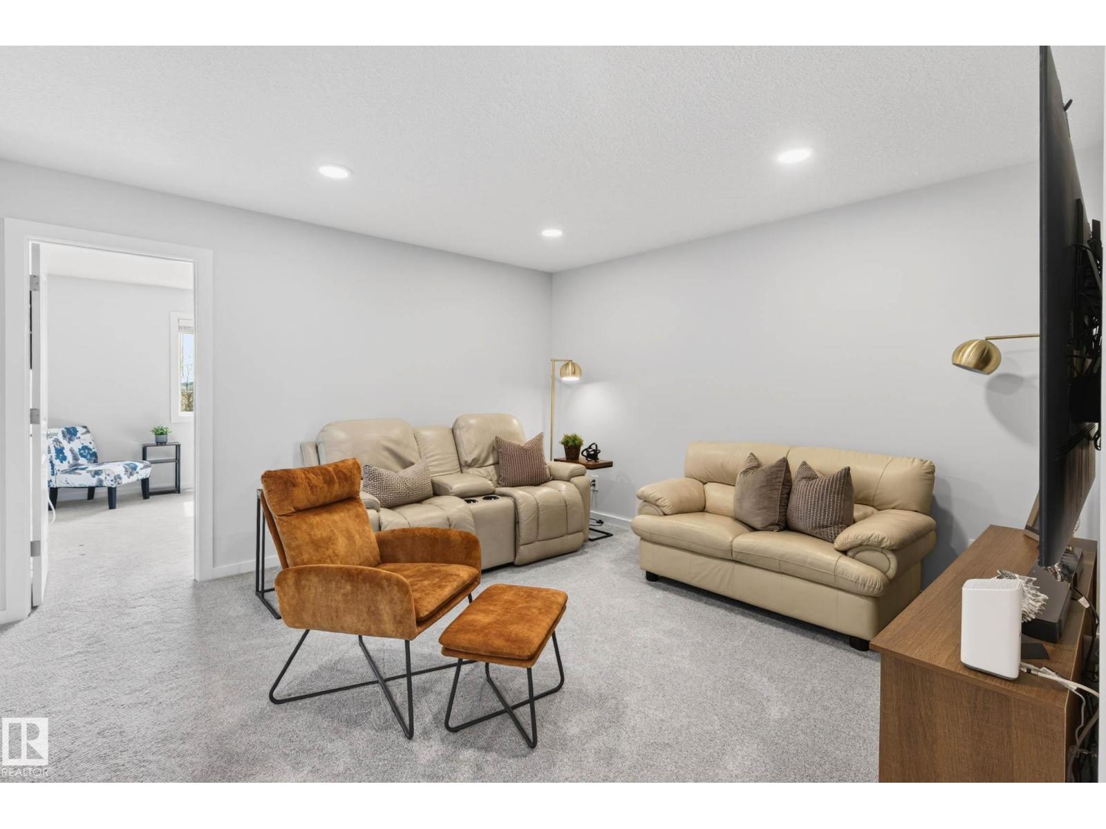 Welcome to this beautifully upgraded home nestled in the vibrant, family-friendly community of Southfork Leduc. Built by Homes By Avi w/extensive upgrades & exceptional pride of ownership. Designed for growing families & future flexibility as home features separate side entrance w/concrete sidewalk & plumbing rough-ins for a potential legal suite in 9’ basement. Step inside a bright, stylish interior where upgrades are immediately evident. Kitchen is functional & elegant, showcasing two-tone cabinetry, upgraded SS Bosh/LG appliances & lighting. Living room is warm & inviting, highlighted by a beautifully tiled fireplace & custom blinds that add a polished, designer finish. Upstairs, you’ll find added touches like iron spindle railings, den, laundry room & WIC's in each bdrm. Extra-large, 2-tier deck (w/weed barrier), gazebo & rock features complete professionally landscaped/fenced yard. Permanent gemstone lighting & Central A/C for added convenience. Nestle your family in this home that is INCREDIBLE! (id:63190)