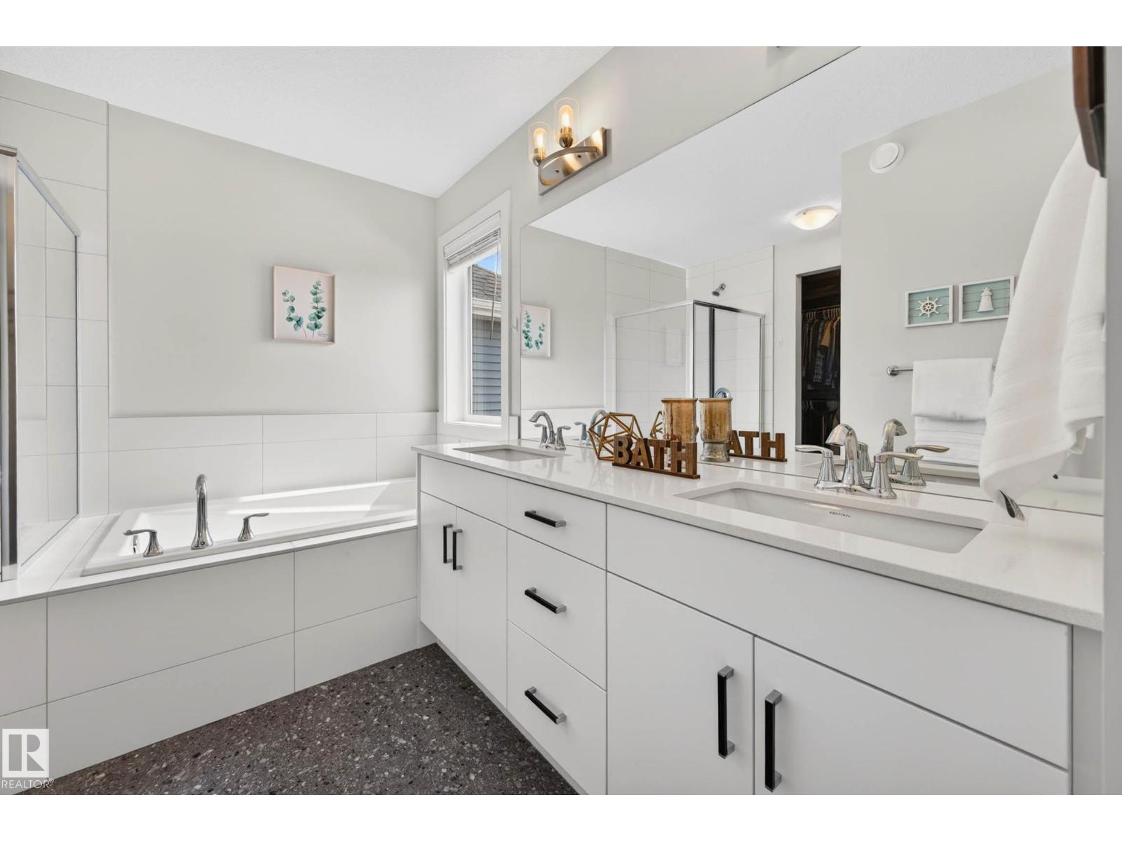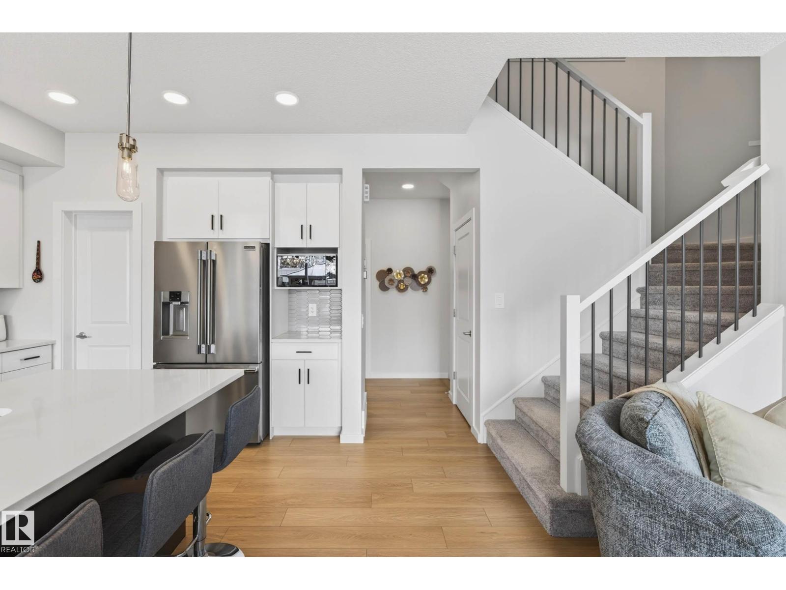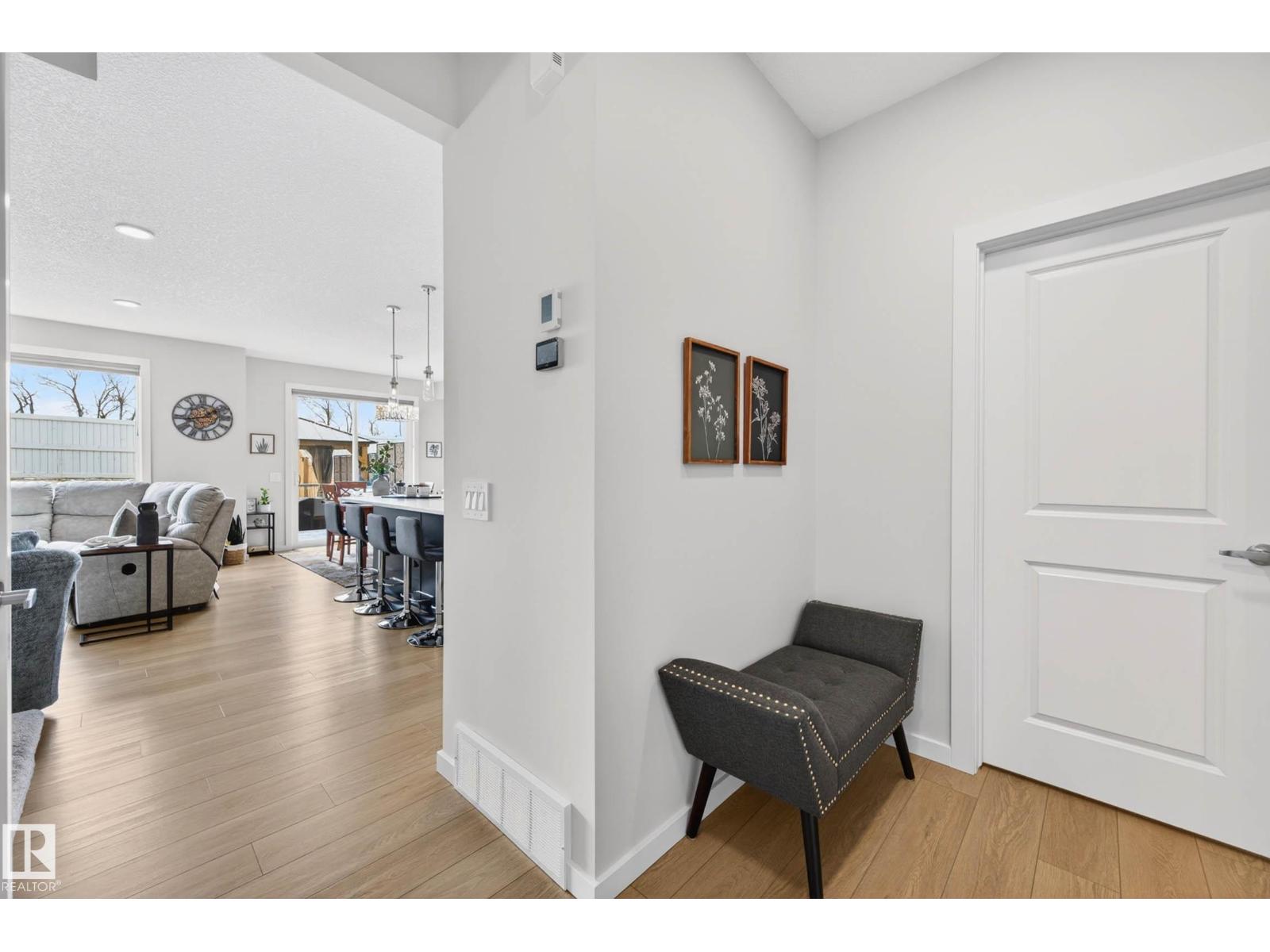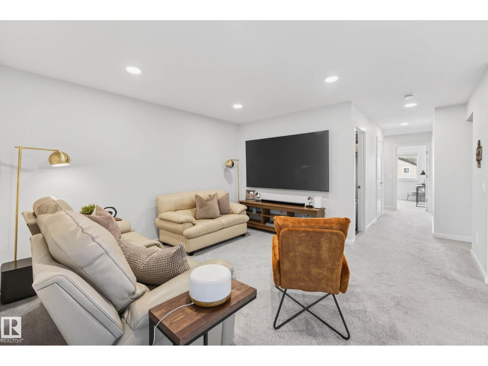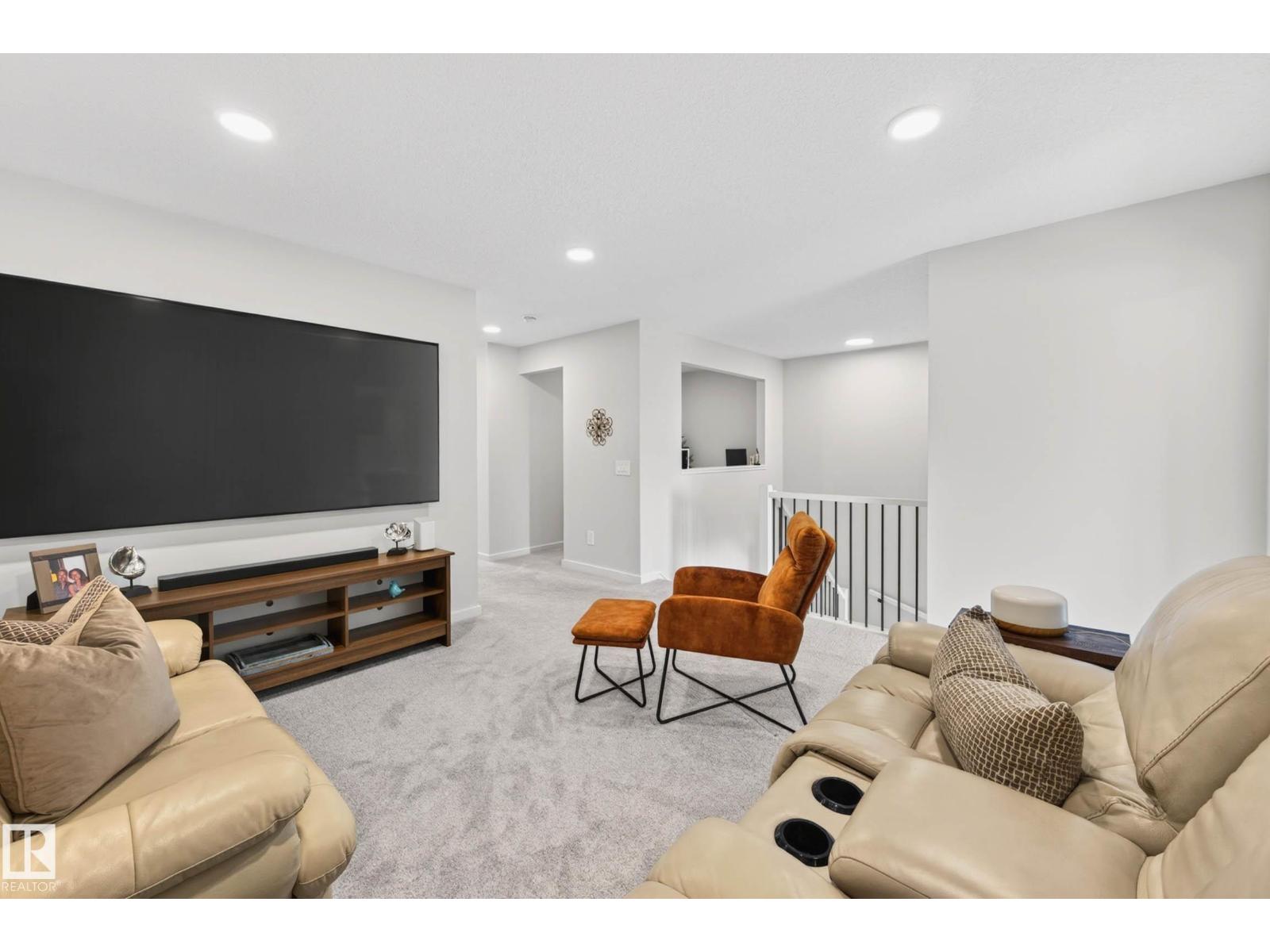 Welcome to this beautifully upgraded home nestled in the vibrant, family-friendly community of Southfork Leduc. Built by Homes By Avi w/extensive upgrades & exceptional pride of ownership. Designed for growing families & future flexibility as home features separate side entrance w/concrete sidewalk & plumbing rough-ins for a potential legal suite in 9’ basement. Step inside a bright, stylish interior where upgrades are immediately evident. Kitchen is functional & elegant, showcasing two-tone cabinetry, upgraded SS Bosh/LG appliances & lighting. Living room is warm & inviting, highlighted by a beautifully tiled fireplace & custom blinds that add a polished, designer finish. Upstairs, you’ll find added touches like iron spindle railings, den, laundry room & WIC's in each bdrm. Extra-large, 2-tier deck (w/weed barrier), gazebo & rock features complete professionally landscaped/fenced yard. Permanent gemstone lighting & Central A/C for added convenience. Nestle your family in this home that is INCREDIBLE! (id:63190)