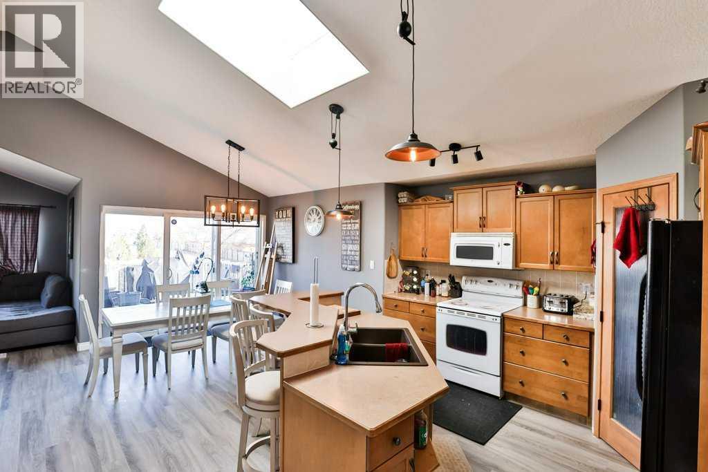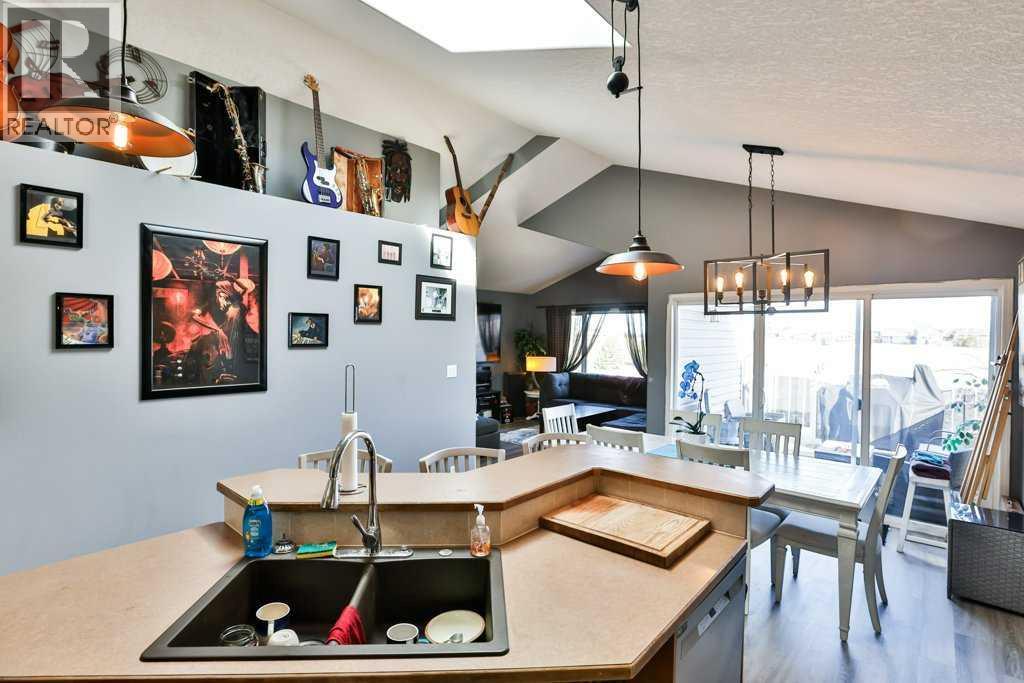 Welcome to this spacious family home backing directly onto a beautiful park, offering a rare setting where you’ll never have neighbors behind you—just open green space to enjoy year-round. Built in 2003, this Avonlea bi-level offers 1,380 sq ft of functional living space with 4 bedrooms and 3 bathrooms, making it an ideal layout for growing families. The main level features vaulted ceilings and a bright, open feel, with patio doors off the dining area leading to a back deck overlooking the park—perfect for morning coffee or watching the kids play. The unique floorplan includes 2 bedrooms on the main level, while the private primary suite is located above the garage, complete with a walk-in closet and full ensuite, creating a quiet retreat separate from the main living areas. The fully developed basement offers a large family room with a gas fireplace, oversized above-ground windows for plenty of natural light, an additional bedroom, and a full 4-piece bathroom. The yard is fully fenced and features convenient access to the park via a walking path just beside the home—an unbeatable setup for families and outdoor living. You’re also just minutes from additional parks, ponds, playgrounds, and shopping amenities. Please note: this property has been tenant-occupied in recent years and will require some TLC, including some new flooring, baseboards, paint, and kitchen appliances. The home has been priced accordingly, presenting an excellent opportunity for buyers to add value and make it their own.If you’ve been looking for a well-located family home with incredible potential, this is your chance to get into a sought-after area at a great price. (id:63190)