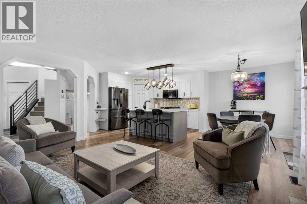 Beautifully maintained home in McKenzie Lake, offering over 3,000 sq ft of finished living space, and situated on a quiet cul-de-sac, this home features a welcoming front veranda, mature trees, and a fully landscaped yard. Step inside to a grand foyer that opens to a bright and spacious main level, complete with a formal dining room and a highly desirable main floor bedroom, perfect for guests, a home office, or multi-generational living. The living room showcases a cozy gas fireplace, while the stunning kitchen is equipped with quartz countertops, stainless steel appliances, gas stove, walk-in pantry, custom lacquered cabinetry, tile backsplash, and a large island with breakfast bar. The sunny breakfast nook overlooks the private backyard with concrete patio. Upstairs offers three generously sized bedrooms, including a spacious primary retreat with a spa-inspired 3 pc ensuite and large walk-in closet. The impressive bonus room features vaulted ceilings, a second gas fireplace, and sunny south exposure. The professionally developed basement expands your living space with an open media room featuring recessed TV space, a wet bar, a large fourth bedroom with walk-in closet, a 3 pc bathroom, and ample storage. Additional highlights include LVP flooring throughout (except for basement), metal railings, custom millwork, central air conditioning. Furnace controls rebuild and exchanger inspection completed in 2025, along with a full water heater controls rebuild, flush, and inspection in the same year. Exterior upgrades feature a new roof, gutters, and downspouts completed in 2024, enhancing durability and curb appeal. Additional highlights include permanent Gemstone lighting for year-round ambiance. Double attached garage has epoxy-coated floors, insulated and drywalled. The home is close to top rated schools such as McKenzie Lake School, Mountain Park School, and Lord Beaverbrook High School, as well as shopping and amenities at South Trail Crossing, McKenzie Towne High Street, and Deerfoot Meadows. Enjoy easy access to Fish Creek Provincial Park, Bow River pathways, and major routes including Deerfoot Trail and Stoney Trail for seamless commuting. A perfect blend of lifestyle, location, and space, this is the one you’ve been waiting for. (id:63190)