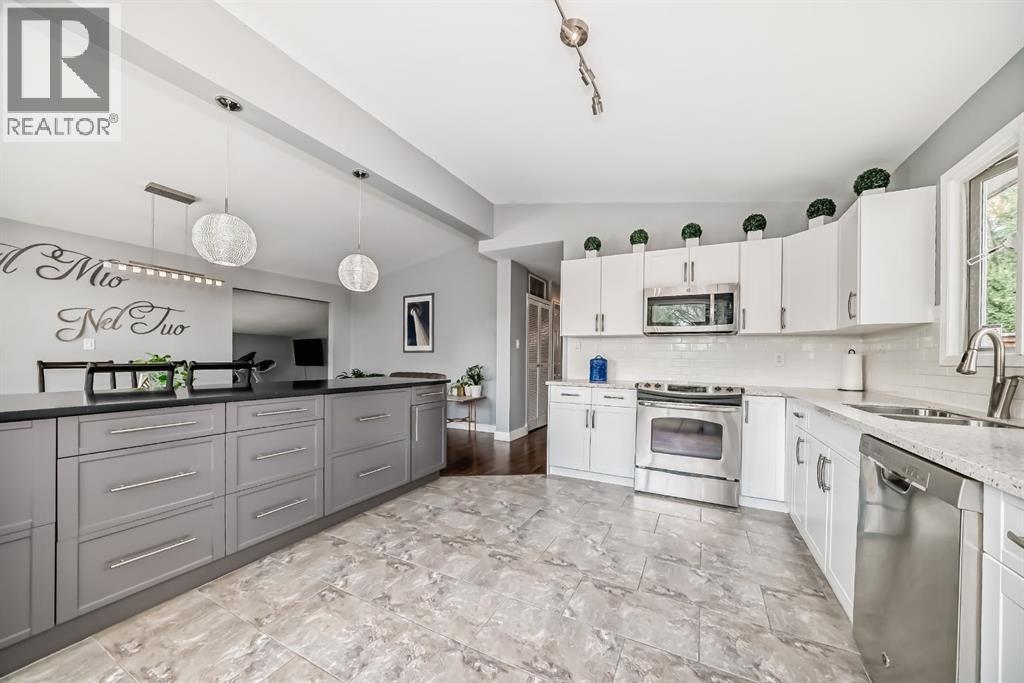 Welcome to your charming bungalow nestled in the heart of NW Calgary! This delightful home is the perfect find for a first-time homebuyer or savvy investor looking for a promising opportunity. The inner-city life is easy; in this impressive, thoughtfully renovated, residence just minutes from downtown flooring throughout the home featuring porcelain tile, laminate plank wood flooring(20 year warranty) and new carpets in the bedrooms. Newly Hot water tank and high efficiency furnace. The home fresh new paint on walls and trim, 5 newer appliances, well maintained kitchen counter tops, faucets and new cabinets. The exterior stucco has been re painted along with a built wrap around treated wood deck and a fully landscaped yard with new sod. The home boasts two large bedrooms, one five pc bathroom and tons of living space with a formal dining room, a large living room leading out to the nicely backyard and double detached garage. The master bedrooms is fit for a king sized bed and features a large walk-in closet. It's important to note that this home is a non-smoking environment. Don't miss the opportunity to make this extraordinary property your own. (id:63190)