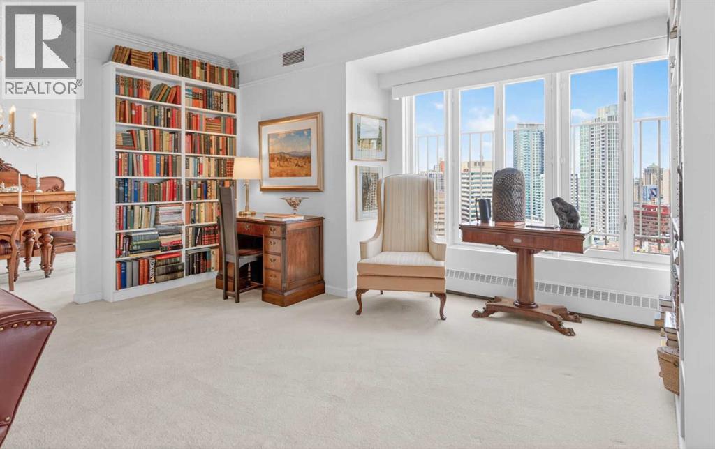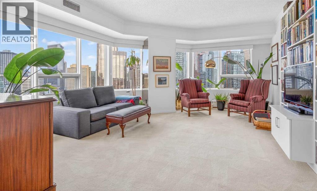 Welcome to an exceptional opportunity in the prestigious Ranchman’s Club Estates. Perched on the 20th floor, this expansive 2-bedroom residence offers almost 2,100 sq ft of refined living space paired with breathtaking downtown views.Designed for both comfort and sophistication, the home features in-unit laundry, extensive custom built-ins, and beautifully updated bathrooms, including a spa-inspired steam shower in the primary suite.Residents enjoy an impressive array of amenities, including a fully equipped fitness centre, elegant party room, and 24-hour concierge service. The 5th-floor outdoor terrace is perfect for entertaining, complete with gas BBQs and generous lounge areas. An indoor saltwater pool—currently undergoing renovation—will soon elevate the lifestyle experience even further.Additional highlights include two secure underground parking stalls, offering both convenience and peace of mind. Walking distance to Canadian Tire, SaveOnFoods, Safeway and 17 Avenue pubs, shops and services. (id:63190)
