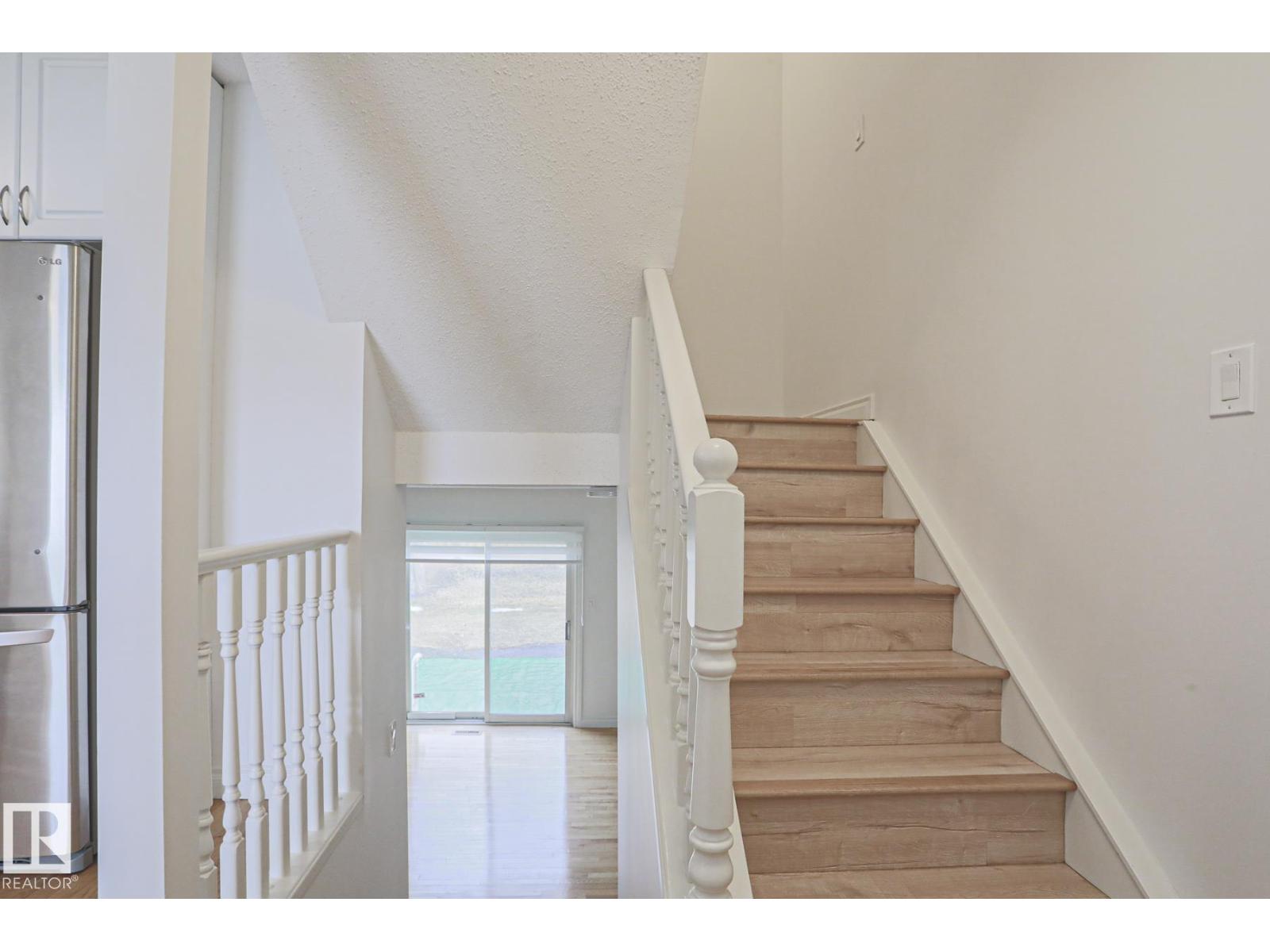 Lakefront living in the heart of West Edmonton doesn’t come up often. Enjoy peaceful water views from your kitchen and multiple bedrooms in this bright and inviting Terra Losa townhome. Offering over 1200 sqft plus a fully finished basement this home features 3 bedrooms and 2.5 bathrooms with a functional layout for everyday living. The main floor showcases warm wood flooring and a spacious living and dining area that looks out onto the lake. Upstairs the primary bedroom includes its own ensuite and walk in closet while the additional bedrooms also capture the view. The finished basement gives you extra space for a rec room office or guests. Attached garage with nearby visitor parking. Steps to walking trails transit and quick access to Whitemud Drive with West Edmonton Mall just minutes away. (id:63190)