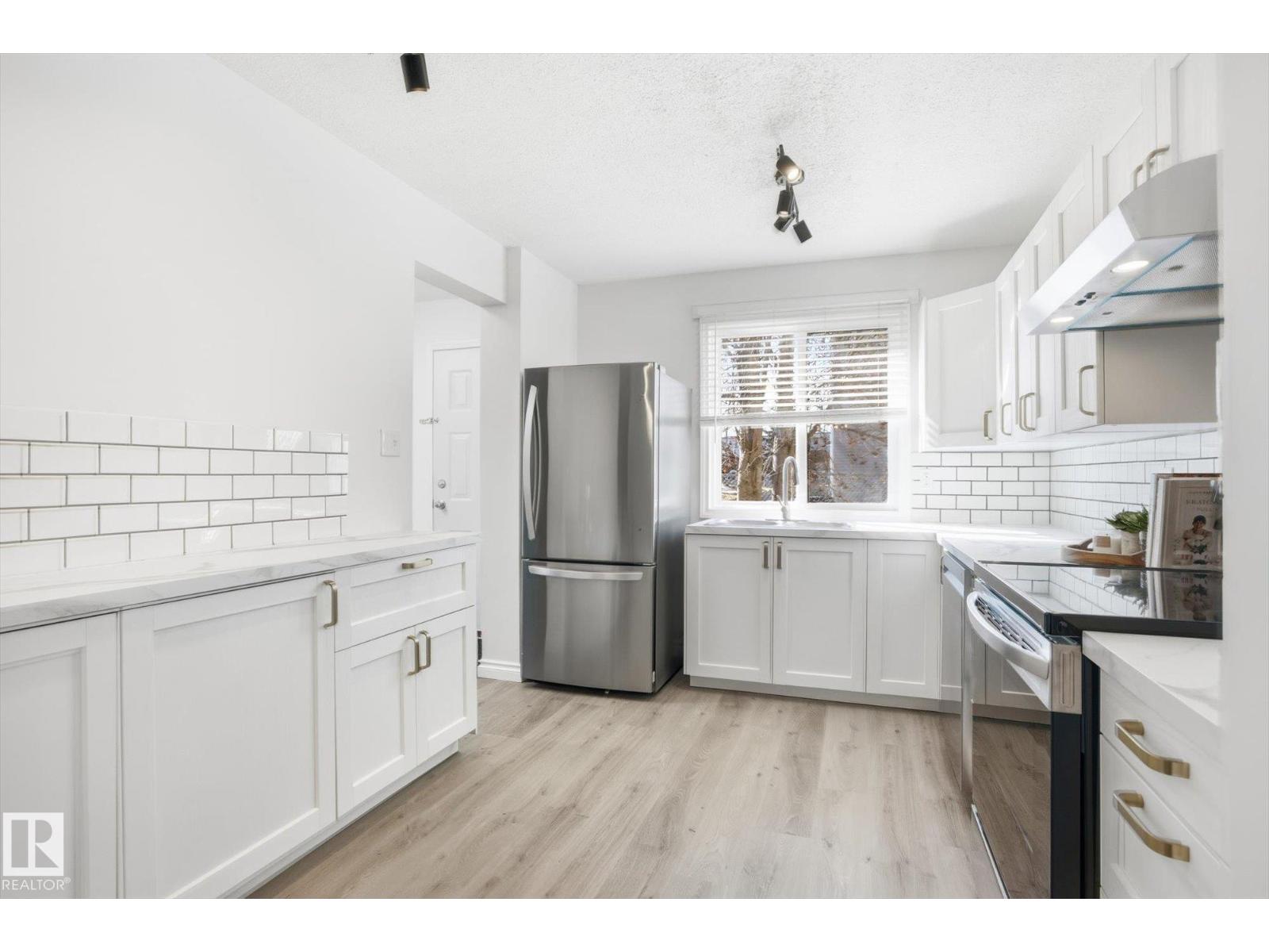 ~ 3 BEDROOM, 1.5 BATHROOM TOWNHOUSE in THORNCLIFFE ~ TOTALLY RENOVATED from TOP to BOTTOM ~ NICE SIZED FULLY FENCED BACK YARD ~ LOCATED JUST STEPS to SCHOOLS, WEST EDMONTON MALL & FUTURE LRT LINE~ This gorgeous property has just had major upgrades including: New Kitchen Cabinets, New Subway Tiles, New Countertops, New Kitchen Sink & Tap, New STAINLESS STEEL FRIDGE, STOVE & DISHWASHER, New Paint Throughout, New Baseboards, New Vinyl Flooring on the main floor, New Carpet Upstairs, New Light Fixtures Throughout, Renovated Bathrooms, Renovated Fully Finished Basement with New Drywall in the Family Room and much more. There is tons of storage in this unit including under the stairs storage. There is also a rough-in for a future bathroom in the basement. There is absolutely nothing to do but move in and enjoy. This is a perfect property for a first time buyer or great for a turn key investment property. (id:63190)