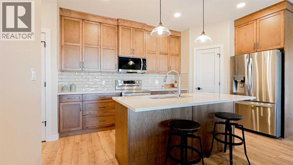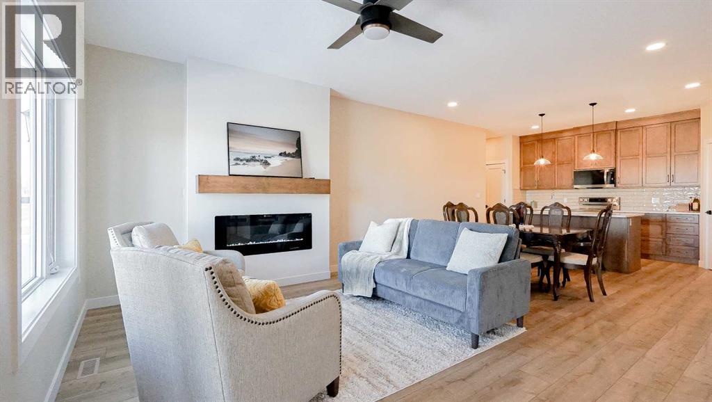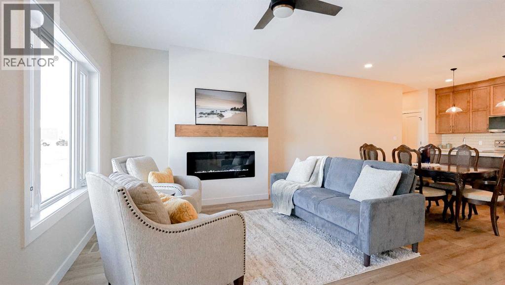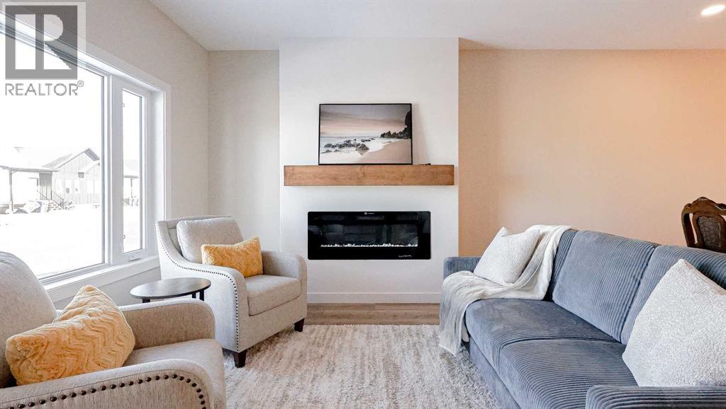 Welcome to Parkview Crescent, Bow Island’s newest subdivision, contemporary design meets small town charm. This brand-new 1,070 sq. ft. north-facing home, built by JAYCO, is part of a thoughtfully designed four-plex offering an easy, low-maintenance lifestyle with no condo fees—ideal for downsizers, first-time buyers, or young families. Step inside to a bright, open-concept main floor featuring a stylish electric fireplace, spacious kitchen, and a functional dining area perfect for everyday living or entertaining. The main level offers two bedrooms, including a comfortable primary suite complete with a 4-piece ensuite. Enjoy flexible laundry options with the choice of main floor or basement setup. Built with an ICF foundation, this home delivers excellent energy efficiency and long-term durability. The attached heated single garage adds year-round convenience, while the undeveloped basement provides a blank canvas to create additional living space tailored to your needs, if you so desire. As an added bonus, take advantage of a $7,500 property tax credit offered by the Town of Bow Island. Move-in ready and built for modern living—this is your opportunity to enjoy the benefits of a brand-new home in a welcoming community. (id:63190)