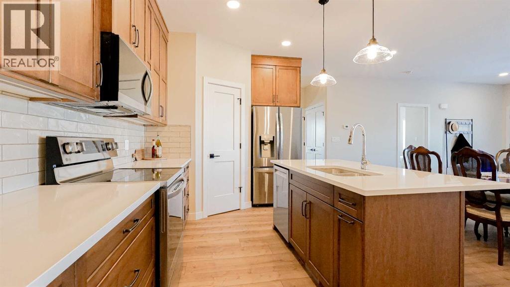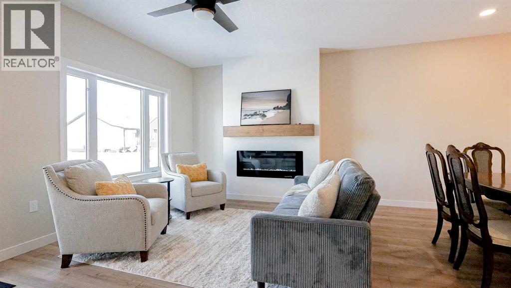 Welcome to Parkview Crescent, Bow Island’s newest subdivision, contemporary design meets small-town charm. This brand-new 1,070 sq. ft. north-facing home, built by JAYCO, is part of a thoughtfully designed four-plex offering an easy, low-maintenance lifestyle with no condo fees—ideal for downsizers, first-time buyers, or young families. Step inside to a bright, open-concept main floor featuring a stylish electric fireplace, spacious kitchen, and a functional dining area perfect for everyday living or entertaining. The main level offers two bedrooms, including a comfortable primary suite complete with a 4-piece ensuite. Enjoy flexible laundry options with the choice of main floor or basement setup. Built with an ICF foundation, this home delivers excellent energy efficiency and long-term durability. The attached heated single garage adds year-round convenience, while the undeveloped basement provides a blank canvas to create additional living space tailored to your needs, if you desire. As an added bonus, take advantage of a $7,500 property tax credit offered by the Town of Bow Island. Move-in ready and built for modern living—this is your opportunity to enjoy the benefits of a brand-new home in a thriving community. Photos are not of this exact unit. (id:63190)