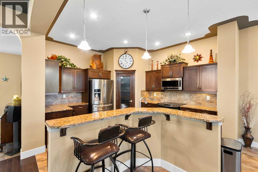 STEP INSIDE AND PREPARE TO BE IMPRESSED! This home is full of unexpected charm with its spacious layout and thoughtful details, making it the perfect fit for a growing family. Boasting over 3,600 sq ft of beautifully finished living space, a fully developed walkout basement, and soaring 10 ft ceilings on the main level. The main floor welcomes you with a grand foyer and striking open staircase, leading into a sun-filled living room complete with hardwood floors, custom built-ins, a cozy gas fireplace, and expansive windows that flood the space with natural light. The kitchen is a true showstopper, featuring granite countertops, rich wood cabinetry, a walk-in pantry, and a large central island ideal for hosting. The dining area opens seamlessly to an upper deck. Upstairs, the large bonus room stands out with its vaulted ceiling, creating a bright and welcoming space to relax. You will also find 2 generously sized bedrooms, a full bath, and a spacious laundry room with plenty of storage. The primary suite is your private escape with a vaulted ceiling, a charming window bench, a spa-inspired ensuite with soaker tub and separate shower, plus a walk-in closet. The fully finished walkout basement adds a 4th bedroom, full bathroom, ample storage, and a large family room with direct access to your backyard oasis. Mature trees, an exposed aggregate patio, and a dog run create a space that’s as functional as it is inviting. Added features include central A/C, a garage with abundant storage, and a quiet cul-de-sac location. Living in King’s Heights means enjoying scenic walking paths, nearby playgrounds, great schools, and easy access to shopping, dining, and commuter routes. This is a home you truly need to experience in person! (id:63190)