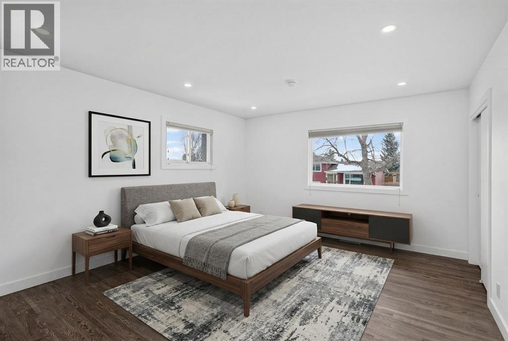 RARE RC-G CORNER LOT | 7,298 SQ FT | OVERSIZED HEATED GARAGE | FLEXIBLE LIVINGSituated on a quiet, tree-lined street in highly sought-after Cambrian Heights, this well-maintained bungalow offers beautiful curb appeal and sits on an expansive 7,298 sq ft RC-G zoned corner lot, providing exceptional space, privacy, and long-term redevelopment potential (subject to City approval) in a prime inner-city location.The main level features a bright, functional layout with hardwood flooring and large bay windows that fill the living and dining areas with natural light while offering views of downtown. The spacious primary bedroom also enjoys these views and features a beautifully updated 5-piece ensuite complete with a steam shower and in-floor heating, creating a relaxing, spa-like retreat. Freshly painted throughout, the home presents a clean, move-in ready feel.The fully developed basement adds incredible flexibility with a large recreation area, a second kitchen, two additional bedrooms, a full bathroom, and separate access — ideal for extended family, multi-generational living, or future suite potential (subject to approval and permitting).Step outside to a generous, private backyard designed for both relaxation and functionality, featuring a top-of-the-line swim spa, mature trees, fruit trees, garden planters, and two storage sheds. The oversized double heated garage provides exceptional space for vehicles, storage, or a workshop.Additional highlights include solar panels for improved efficiency, adding long-term value and sustainability.This RC-G zoned property presents a rare opportunity for builders, investors, or buyers looking to secure a premium inner-city lot with future upside.Located in one of Calgary’s most desirable inner-city communities, just minutes to Confederation Park, schools, and downtown. (id:63190)