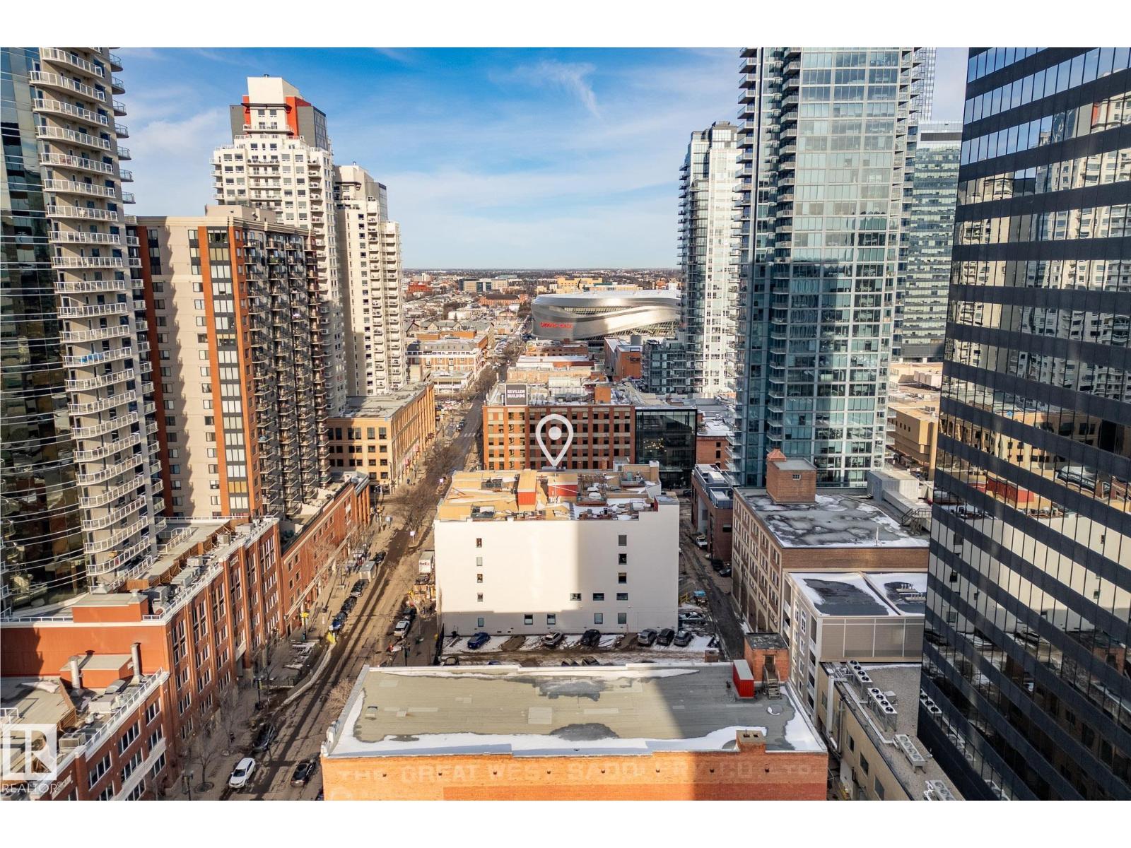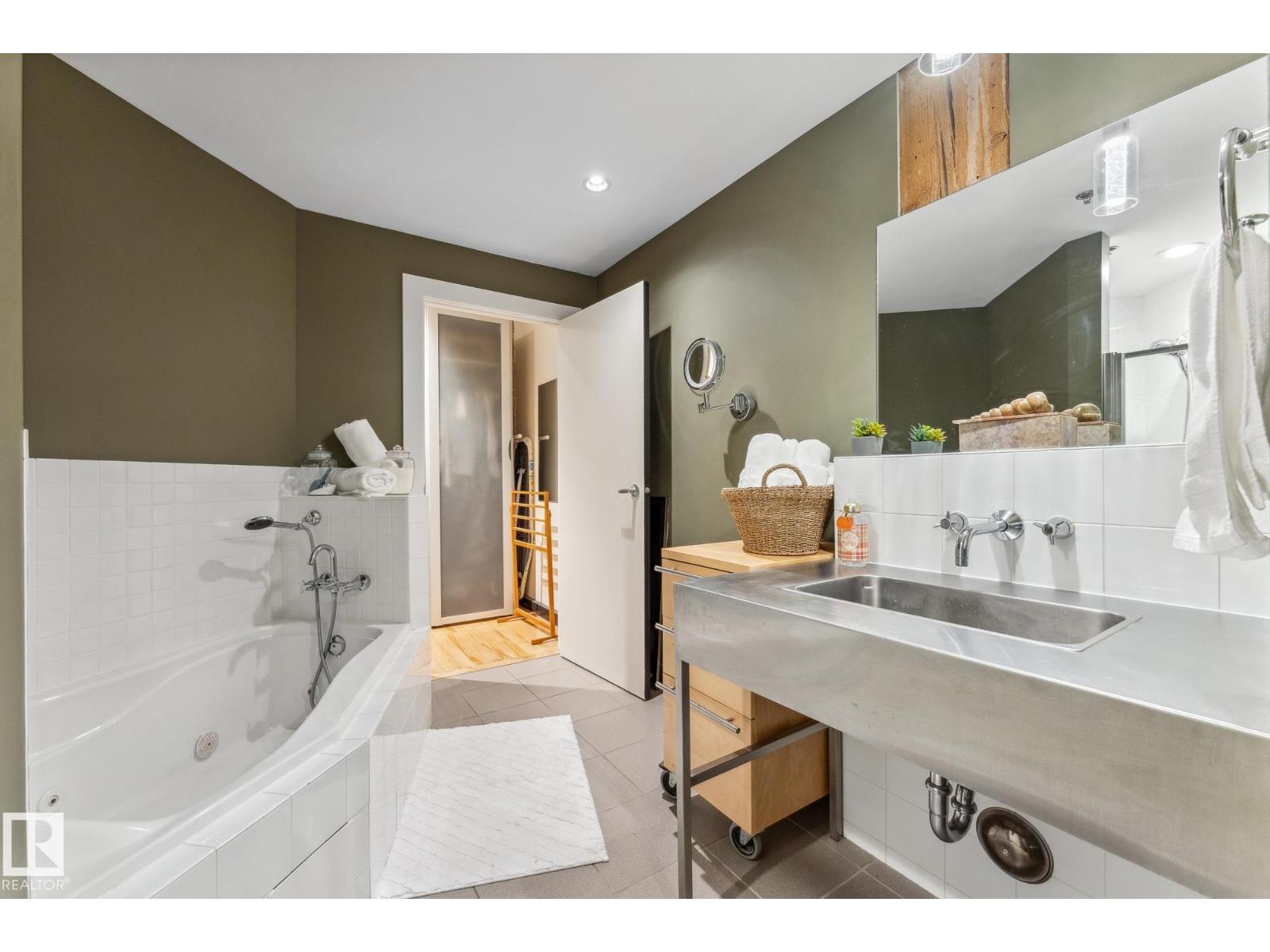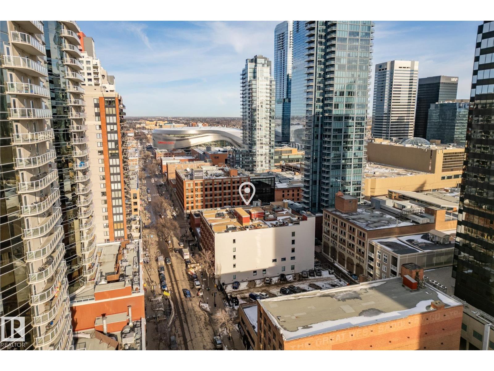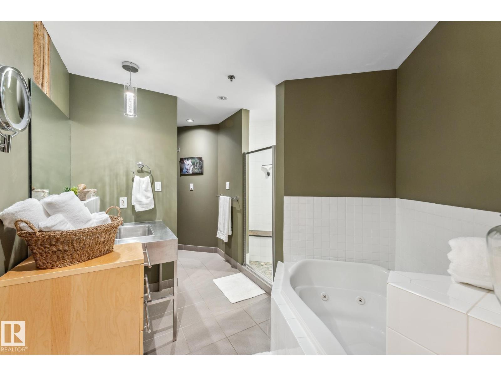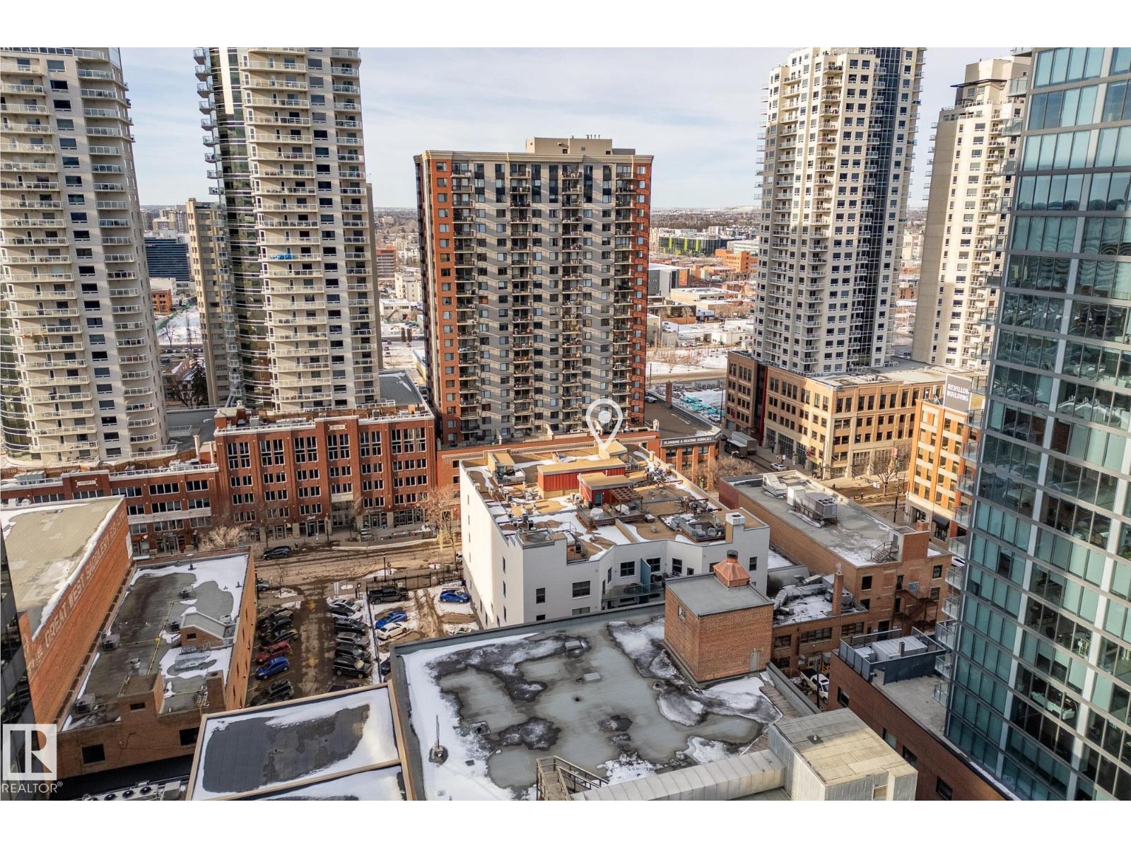 Quintessential Downtown Loft with Amazing Exposed Brick and Wood! This beautifully open concept and modernized one bedroom and den has been upgraded throughout boasting gleaming hardwood floors, custom built sliding steel doors, custom storage wall providing privacy and cupboard space to the master bedroom, 9’+ ceilings, central air conditioning (only certain units in building have it), underground parking (only certain units in building have it as well) and a storage cage that can be rented from the complex. Phillips Lofts is a historic building that is completely non-smoking, is pet friendly, and features a roof top patio as well. At over 1,500 sq/ft and situated in the absolute heart of Downtown’s 104 Street next to amazing restaurants, pubs, wine bars, coffee shops, the summertime outdoor market, and Rogers Place, this transcendent home is truly a must see! (id:63190)
