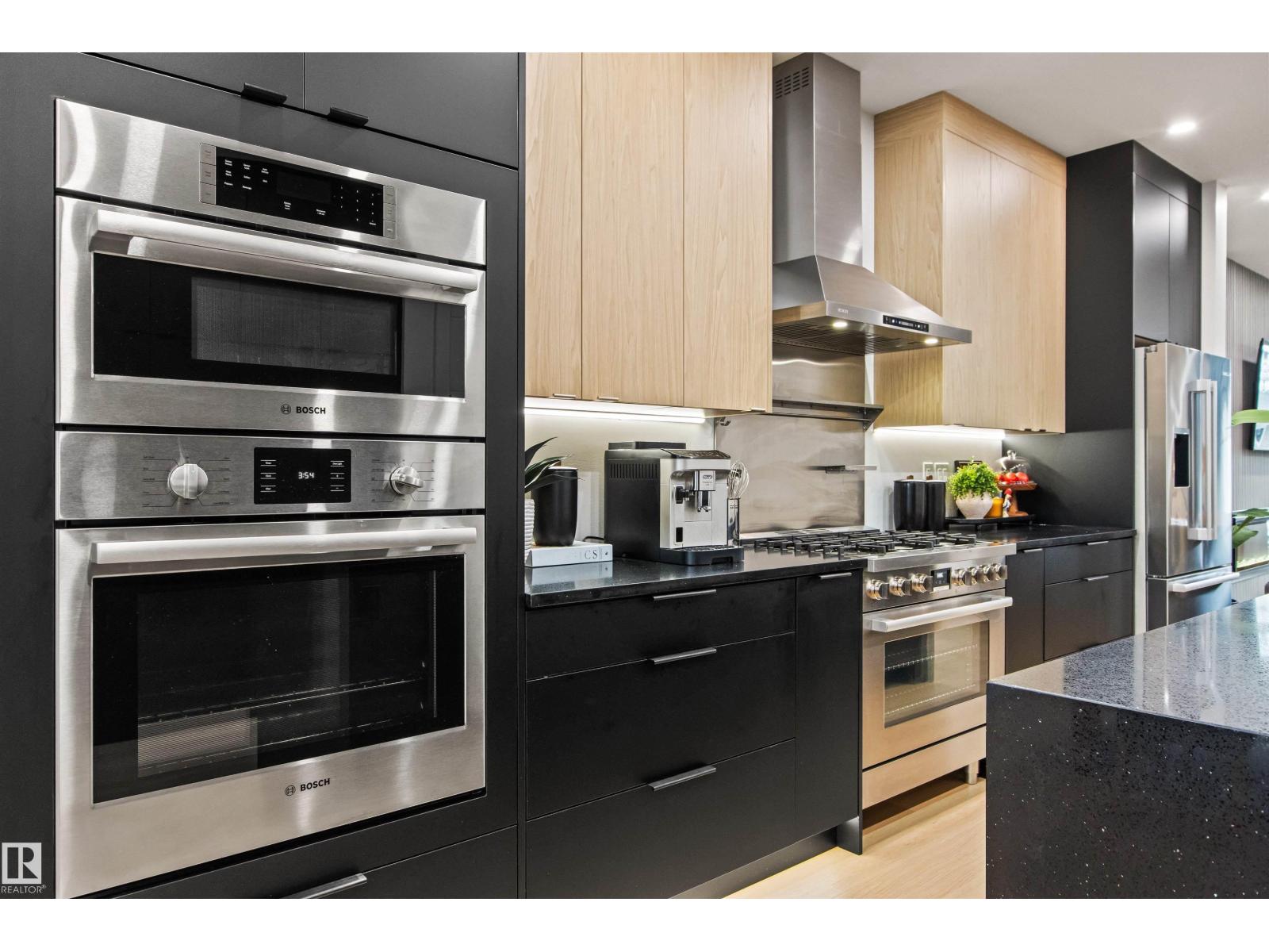 Welcome to Parkview & this truly TURNKEY property! Developed on 3 levels with superb workmanship. Engineered HARDWOOD throughout, 9' CEILINGS, & fantastic layout. Kitchen cabinets & closets by ESSENCE CABINETS. Showstopper kitchen has large waterfall QUARTZ island & high end BOSCH appliances ( including gas stove & 2 ovens: electric & gas). Living room has GARDEN doors leading to a front patio. Dining area, mud room & 2 pc bath complete the main level. Upstairs you find 3 bedrooms (including Primary suite with spacious closet & beautiful ensuite bath) & main bath. Basement has SEPARATE entrance & provides 2 additional bedrooms, family room (with wet bar, dishwasher & mini fridge), full bath, laundry hookup & utility room. NAVIEN tankless water heater, central A/C make life comfortable. Property is FENCED & LANDSCAPED. Exposed AGGREGATE concrete sidewalks & patios, ACRYLIC stucco & metal exterior add to a rich feeling of this property. DOUBLE detached garage is insulated. Make a move! (id:63190)