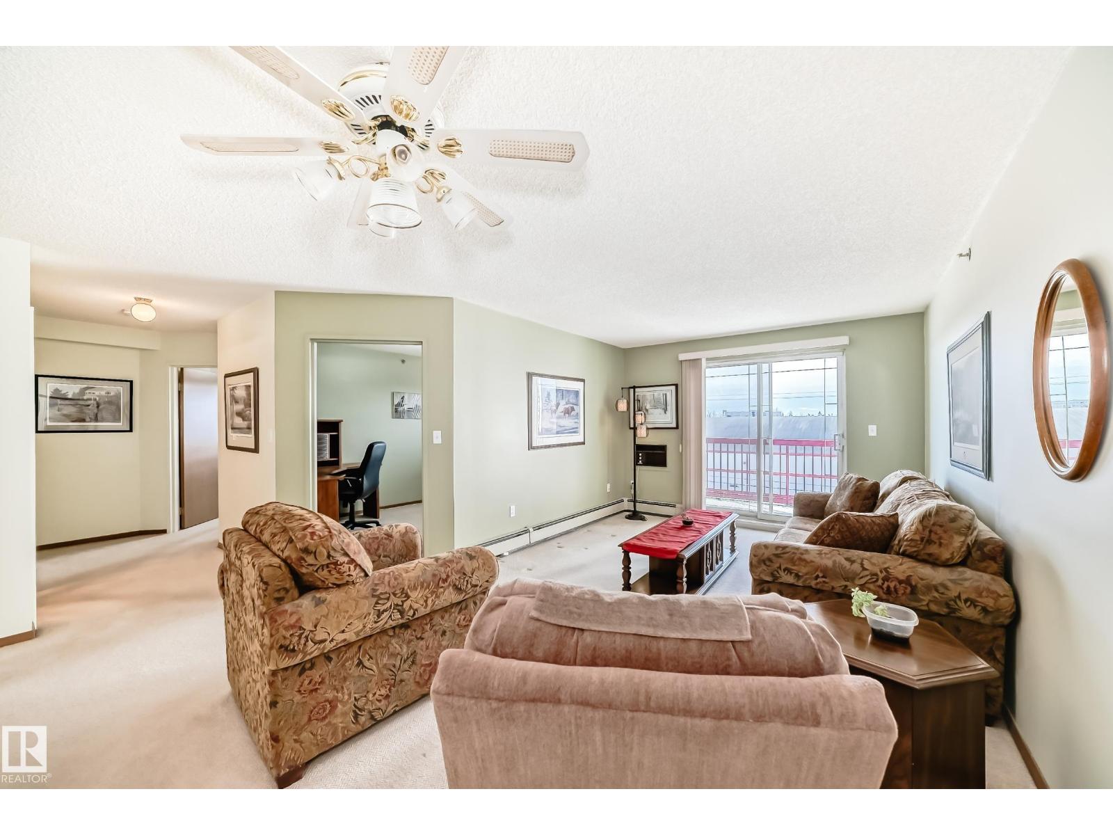 TOP FLOOR! South Facing! This is the one you have been waiting for! No one above you! Over 55! Low monthly fees, that include heat, water and sewer. Ideally situated within walking distance to shopping and the library. This home combines convenience with a relaxed lifestyle. 1 bedroom, plus den. Spacious open floor plan with access to the covered balcony and views of the city. Underground parking is available. Recreation area, work shop, exercise room and much more. Well maintained concrete building. (id:63190)
