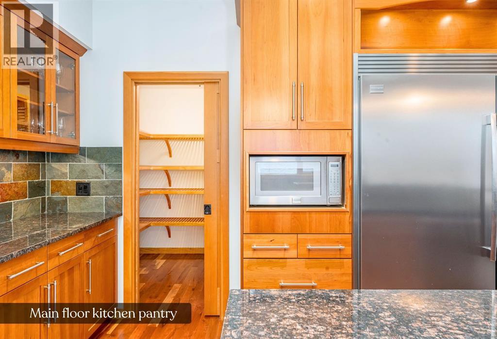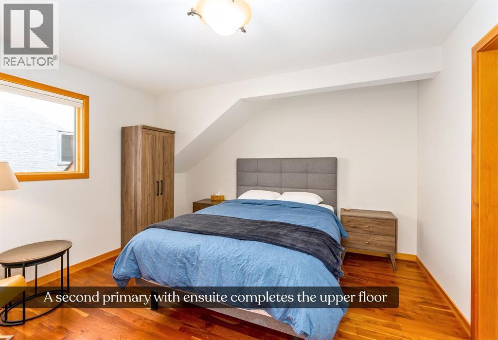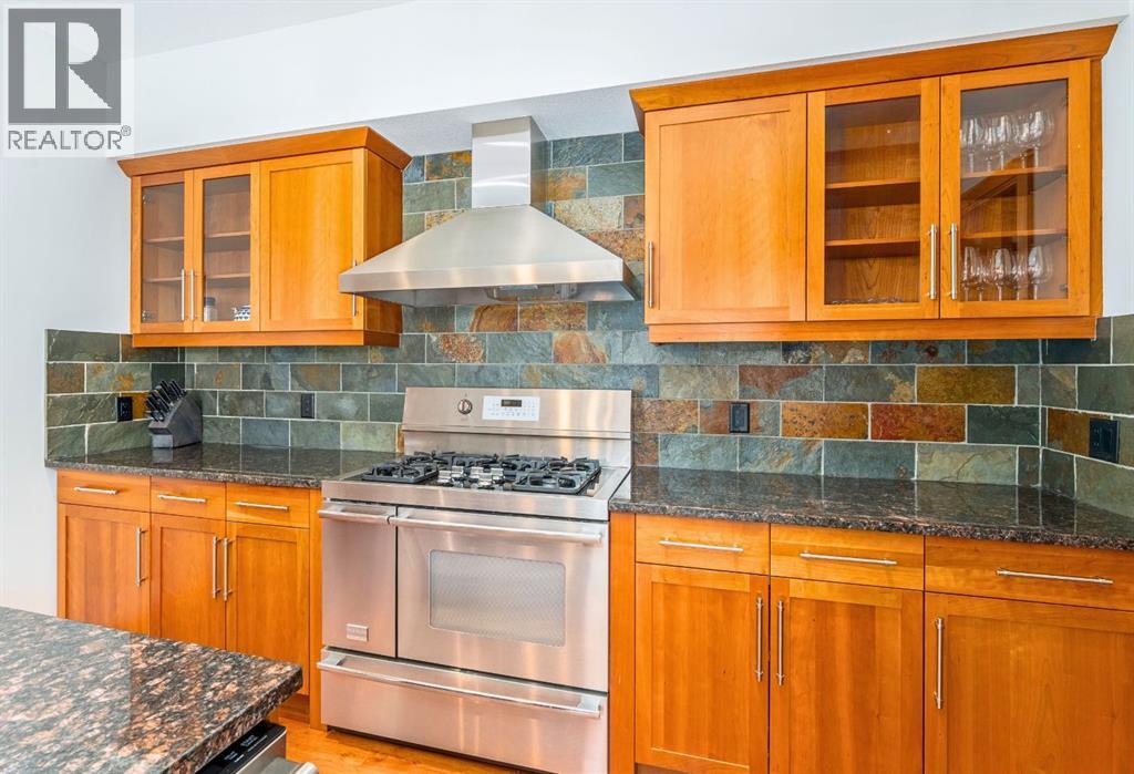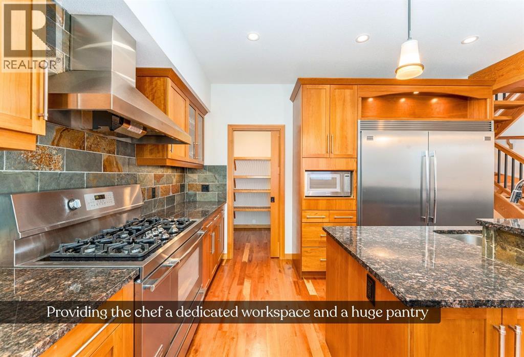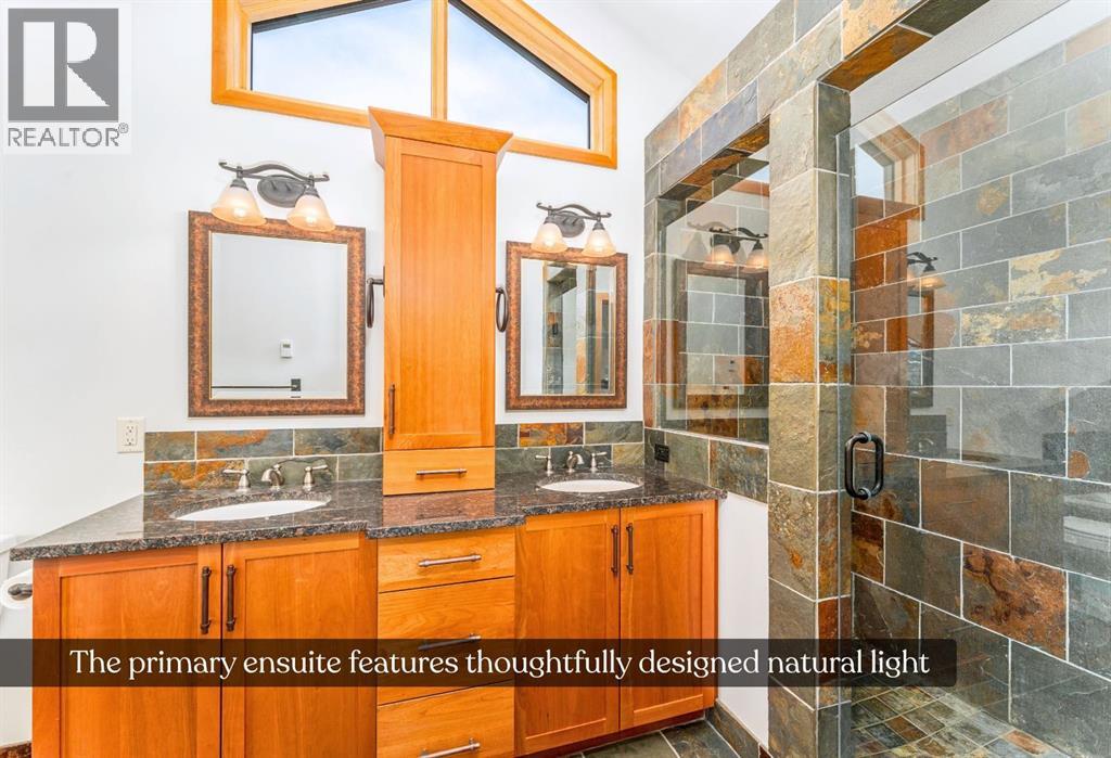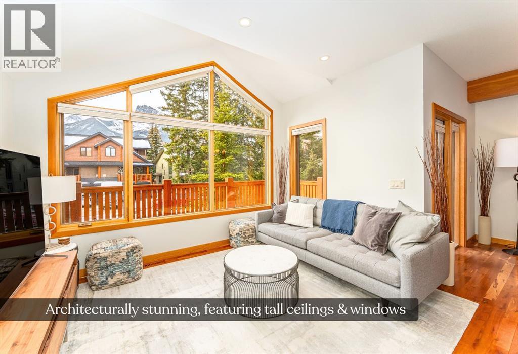 Bathed in sunshine and framed by the drama of the Canadian Rockies, this exceptional south-facing Canmore townhome, built by the local Elk Run Custom Homes is a masterclass in craftsmanship, comfort, and quiet luxury. Perfectly positioned on 5th Street in the highly sought-after, sunny South Canmore, this home offers the rare balance of serenity and accessibility, just steps from the Bow River and a short, easy stroll to downtown Canmore. The main floor welcomes you with soaring vaulted ceilings and a flood of natural light pouring through expansive windows, illuminating the open-concept living space and the open wood staircase. The living room is both grand and inviting, anchored by a striking Rundlestone gas fireplace and framed by sweeping mountain vistas that stretch from the iconic Three Sisters to the majestic Rundle Range. Designed for both everyday living and entertaining, the chef’s kitchen is a true showpiece. Outfitted with upgraded appliances—including a full-size fridge and freezer, gas range, dishwasher, and wine fridge—all complemented by granite countertops, abundant prep space, and a generous walk-in pantry that keeps everything effortlessly organized. Each of the three spacious bedrooms is a private retreat, complete with its own ensuite bathroom, offering comfort and privacy for family and guests alike. Thoughtful touches like custom powered triangle blinds in the primary suite and living room enhance both style and function. Step outside onto the expansive deck and take in the breathtaking alpine mountain scenery—your front-row seat to some of Canmore’s most iconic views. Whether it’s a quiet morning coffee or an evening gathering under the stars, this outdoor space is designed to inspire. Additional features include air conditioning, forced air heating, and in-slab heating for ultimate year-round comfort, along with rich hardwood flooring throughout. The attached heated garage ensures convenience in every season, and additional street parking is readily available. This is more than a home—it’s a lifestyle defined by natural beauty, refined design, and effortless access to everything Canmore has to offer. View today! (id:63190)