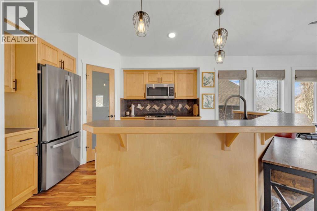 Some homes just feel comfortable the moment you walk in, and this is one of those homes ~ Right away, the entry stands out. It’s wide, open, and actually gives you space to come in, set things down, and take your boots off without bumping into each other. There’s a natural spot by the front window with a bench or seating area, which makes everyday life easier, especially through the winter months ~ As you head upstairs, the vaulted ceiling and natural light open the main living space up right away. The hardwood floors and gas fireplace make the living room feel warm and welcoming, and everything flows nicely into the kitchen and dining area so the space works the way real life works ~ This is a modified bi-level, which gives the primary bedroom its own private upper level. That separation makes a big difference. It feels quieter, more like its own retreat, with a walk-in closet and ensuite ~ There’s also a second bedroom on the main floor that works well for a child’s room, guests, or a home office depending on what you need most ~ Downstairs, the walkout basement adds even more flexibility with another bedroom, a full bathroom, and a comfortable second living space that works perfectly for movie nights, teenagers, guests staying over, or just having somewhere else to relax ~ Outside is where this property really starts to stand out ~ The yard sits on a partial pie lot with RV parking off the back alley, which is something buyers are always hoping to find in this neighbourhood. Between the upper deck and the covered patio below, you get two usable outdoor spaces depending on the season or time of day ~ The attached double garage also features in-floor heat, which makes winters a whole lot nicer ~ Located on a quiet close in Vanier Woods, you’re close to parks, trails, schools, and shopping, which is exactly why so many people choose to stay in this part of southeast Red Deer long term ~ If you’ve been waiting for a walkout home with a private primary suite layout, R V parking, and a heated garage in Vanier Woods, this one is worth seeing in person. (id:63190)