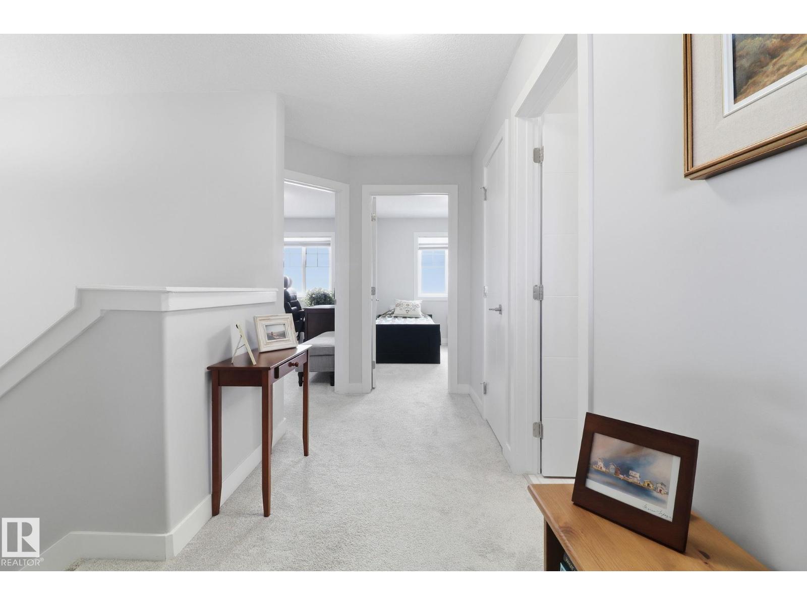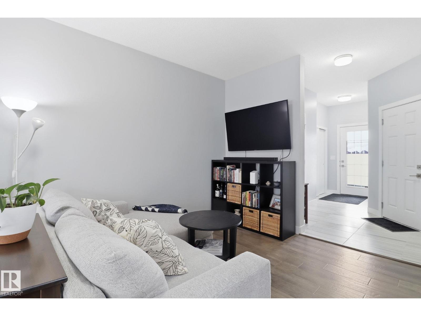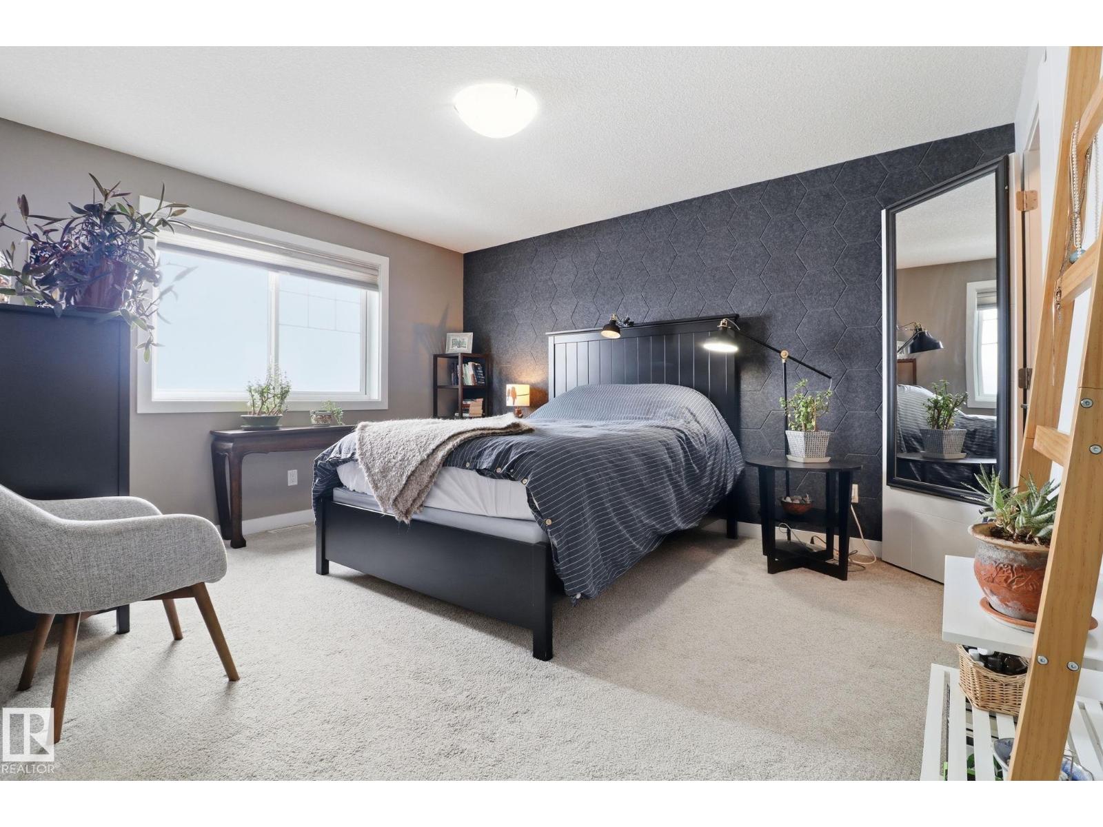Step into a warm, inviting home beginning with a large tiled foyer and flowing into engineered hardwood throughout the main floor. High ceilings and abundant natural light create an airy feel—perfect for plants. The kitchen features dark brown cabinetry, white quartz countertops, and six newer appliances, opening to a spacious dining area and versatile living space with room for multiple zones. Enjoy outdoor living with a new privacy deck and fencing. A wide staircase leads upstairs to a bright landing, cozy carpet, and consistent high-end finishes in all bathrooms, including tile matching the foyer. The huge primary bedroom offers a stylish feature wall, large walk-in closet, and 4-piece ensuite. Two additional bedrooms have great closet space, plus another full bath. Upgraded doors and quality finishes add elegance throughout. The front yard was remodelled in 2023 with a planter and reinforced paving stones, allowing for extra parking. (id:63190)