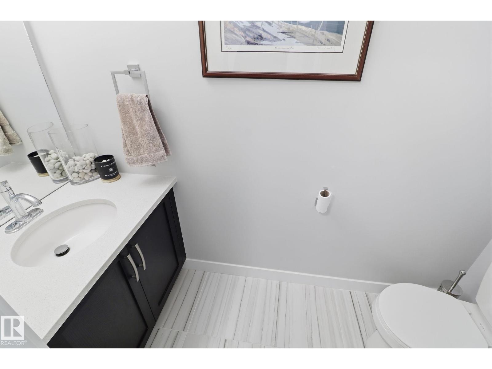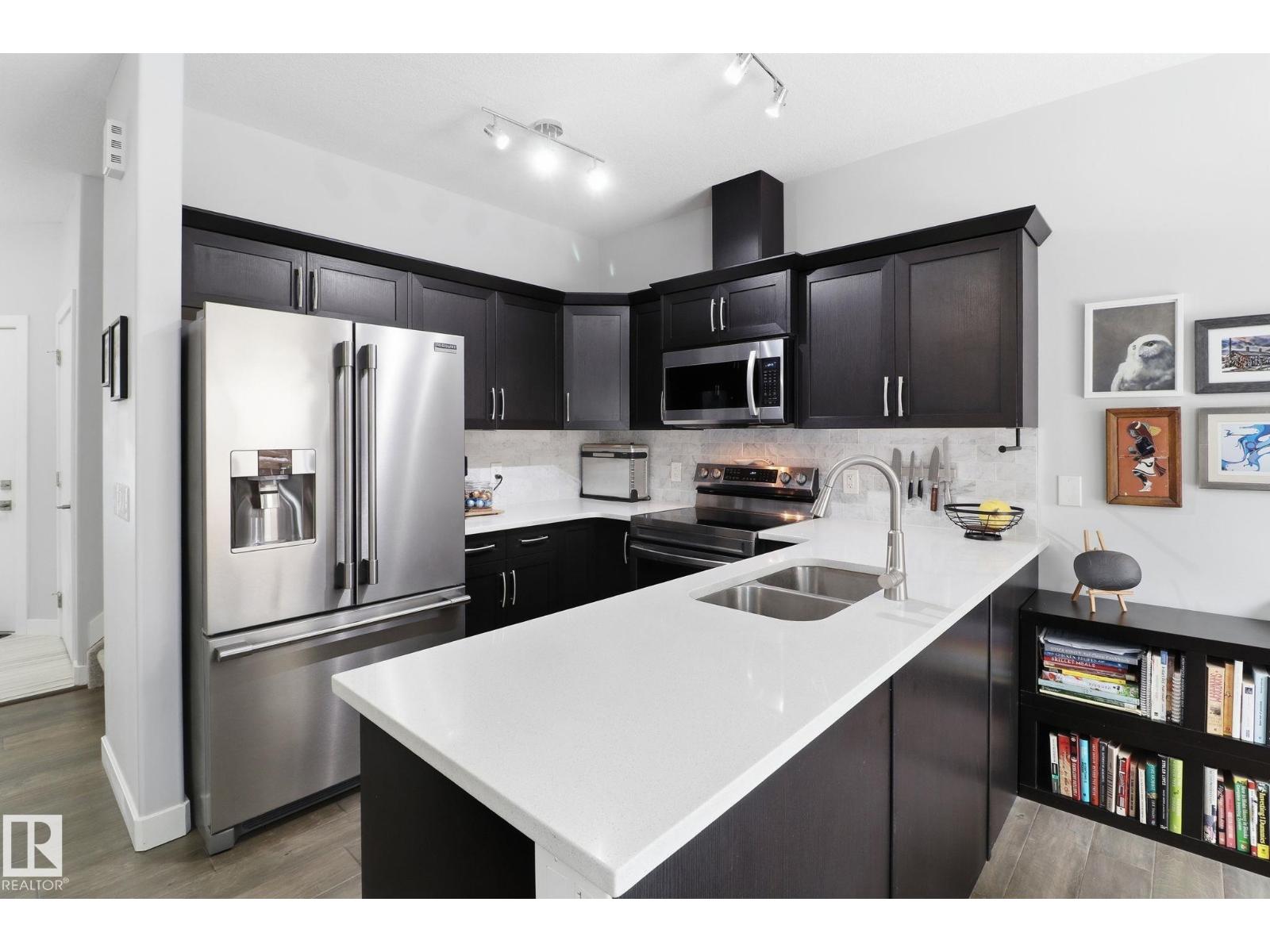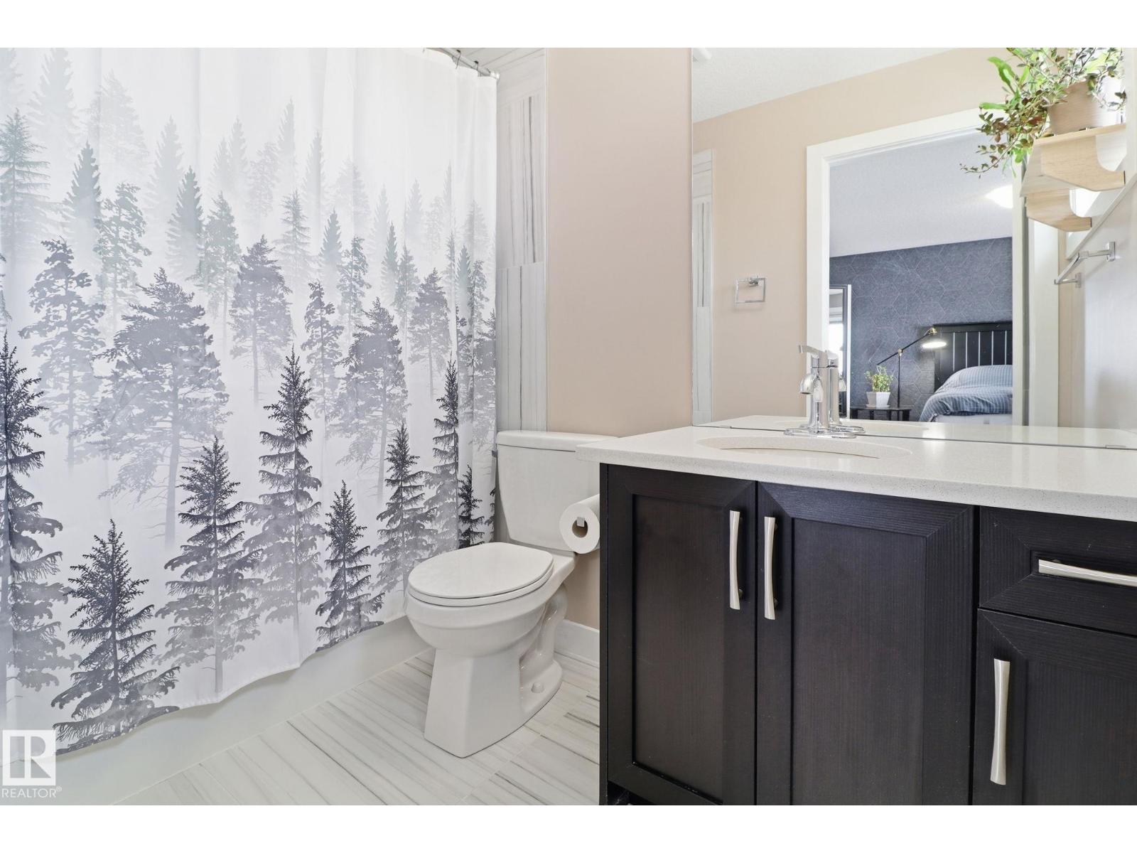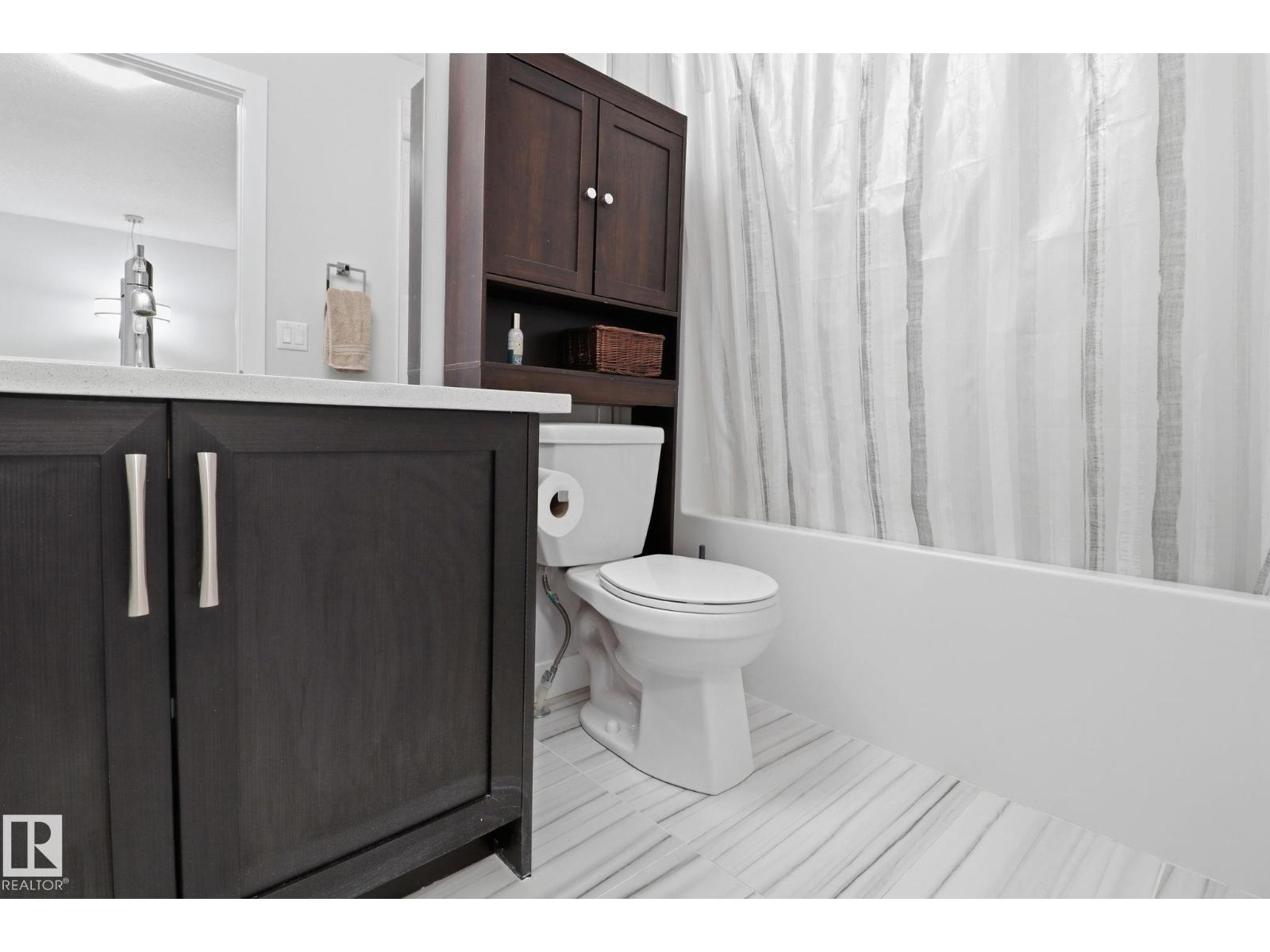 Step into a warm, inviting home beginning with a large tiled foyer and flowing into engineered hardwood throughout the main floor. High ceilings and abundant natural light create an airy feel—perfect for plants. The kitchen features dark brown cabinetry, white quartz countertops, and six newer appliances, opening to a spacious dining area and versatile living space with room for multiple zones. Enjoy outdoor living with a new privacy deck and fencing. A wide staircase leads upstairs to a bright landing, cozy carpet, and consistent high-end finishes in all bathrooms, including tile matching the foyer. The huge primary bedroom offers a stylish feature wall, large walk-in closet, and 4-piece ensuite. Two additional bedrooms have great closet space, plus another full bath. Upgraded doors and quality finishes add elegance throughout. The front yard was remodelled in 2023 with a planter and reinforced paving stones, allowing for extra parking. (id:63190)