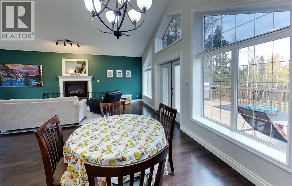 Welcome to 7 Bench Creek Estates — where beautiful mountain views and modern comfort unite. This custom two-storey home, built on 4.05 acres offers refined acreage living with the convenience of a quick commute to downtown Edson.Recent upgrades and features to this 2008 build include central air conditioning (2025), a new deck (2025), fresh paint throughout the home, and significant landscaping giving access to a wide-open back yard. Additional highlights include in-floor heating in the basement and garage, hot water on demand, electronic window blinds, and garage door openers with video capabilities, combining comfort, convenience, and modern technology throughout.The open-concept design offers bright and spacious living areas, accompanied by a gourmet kitchen with abundant cabinetry, a center island, stainless steel appliances, and a new induction stove — ideal for both daily living and entertaining.The master suite includes a private balcony overlooking the Rocky Mountains. Add to that a spa-inspired 5-piece ensuite with a large air-jet soaker tub, walk-in shower, and dual vanity, complemented by a spacious walk-in closet with convenient washer and dryer – the master suite is the calming and efficient retreat the busy owner needs. Two additional bedrooms and 4 pc bathroom complete the upper level.The fully developed, walkout basement offers comfort and entertainment, featuring in-floor heating, a theatre room with projector and sound system, a large family room, a 3-piece bathroom, and a spacious fourth bedroom. The triple attached heated garage provides ample parking and includes a large bonus room, perfect for storage, a home office, gym, or the ultimate man cave.And with ceiling-to-floor Insulated Concrete Forms, air-conditioning, and heated basement and garage floors, this is a one-of-a-kind home that is built for comfort in Alberta. This property is one of 11 in a “bare land condominium”, where you own your lot and have access to 30 additional acres of land, with Bench Creek running along the edge and walking / quadding trails throughout — offering the perfect balance of privacy, community, and natural beauty. (id:63190)