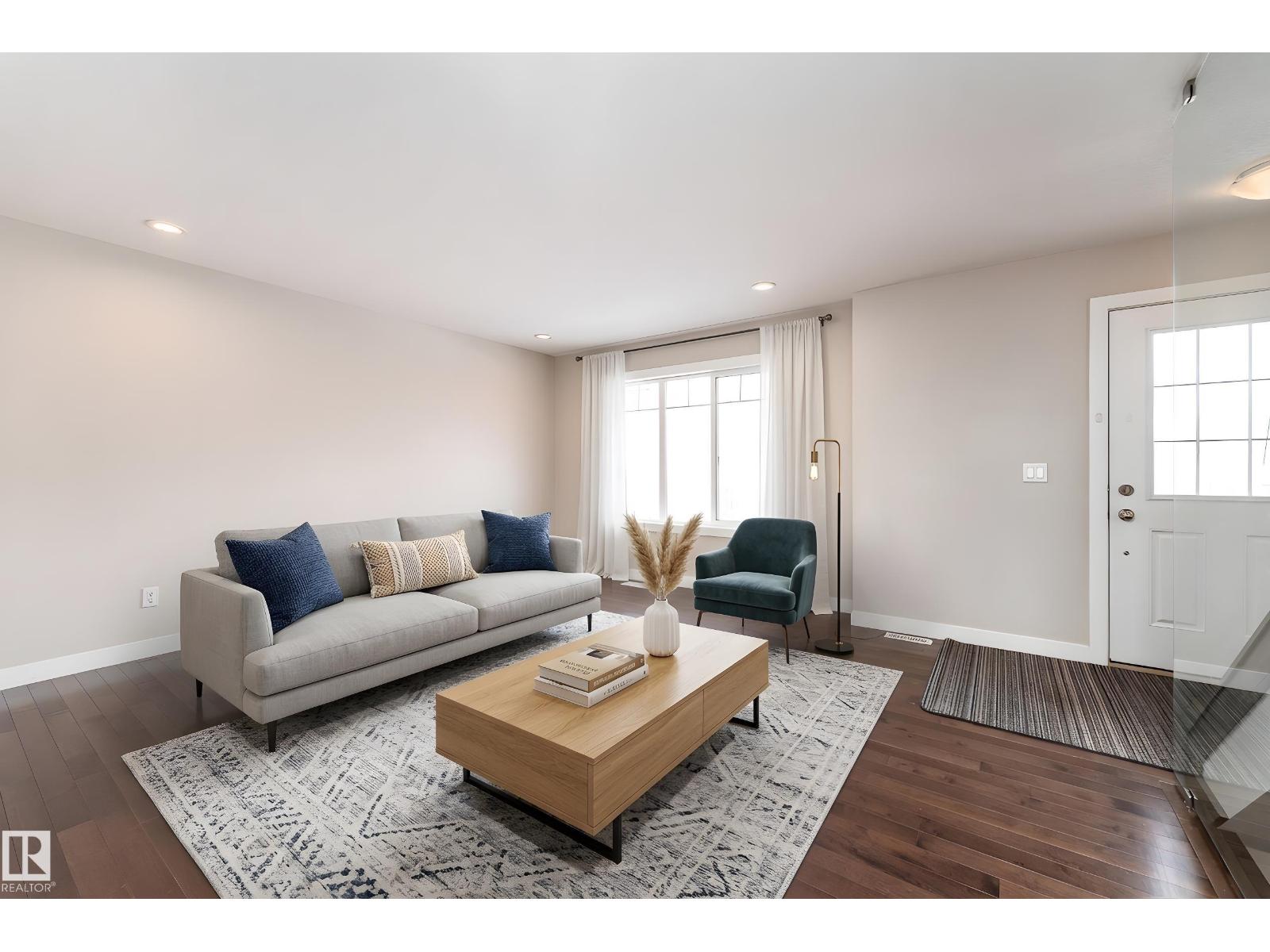 Live across from the park in this light-filled, move-in ready townhouse. This well-kept 1,285 sq ft home offers the perfect blend of comfort and convenience. The main floor opens into a spacious living room filled with natural light, flowing into a functional kitchen with bar seating and a bright dining area surrounded by large windows. A convenient half bath completes the main level. Heading upstairs with the beautiful glass feature wall, upstairs has 3 bedrooms & 2 full bathrooms, including a primary suite with its own ensuite. The lower level offers a practical laundry/utility room. Step outside through sliding doors off the dining area to your east-facing balcony, perfect for morning coffee, while the front porch shows peaceful views of the pond and mature trees. With an attached double garage, pet-friendly living, and close proximity to schools, parks, golf, and everyday amenities. A rare opportunity to enjoy park-side living in a home that truly checks every box. Some photos are virtually staged. (id:63190)