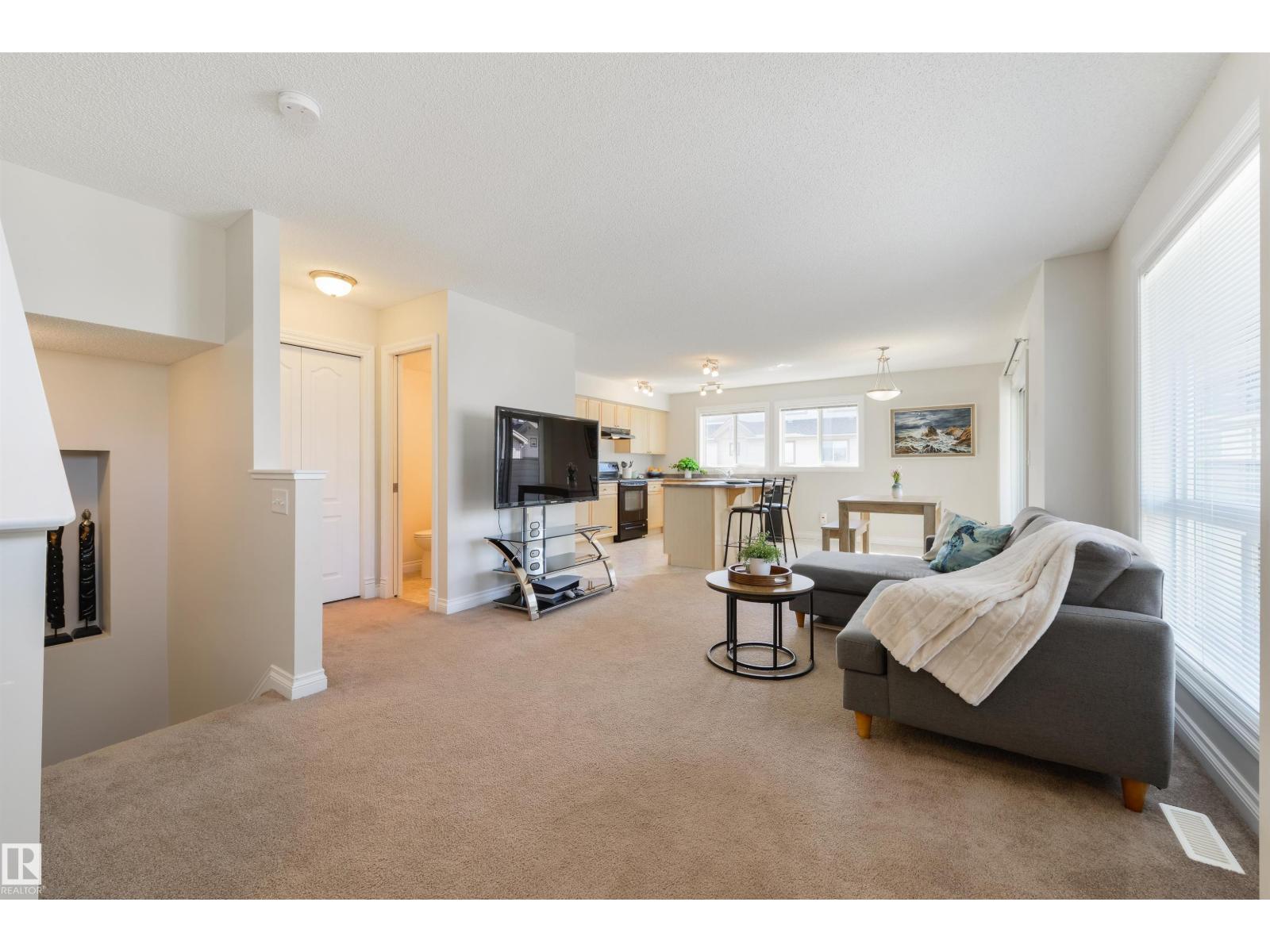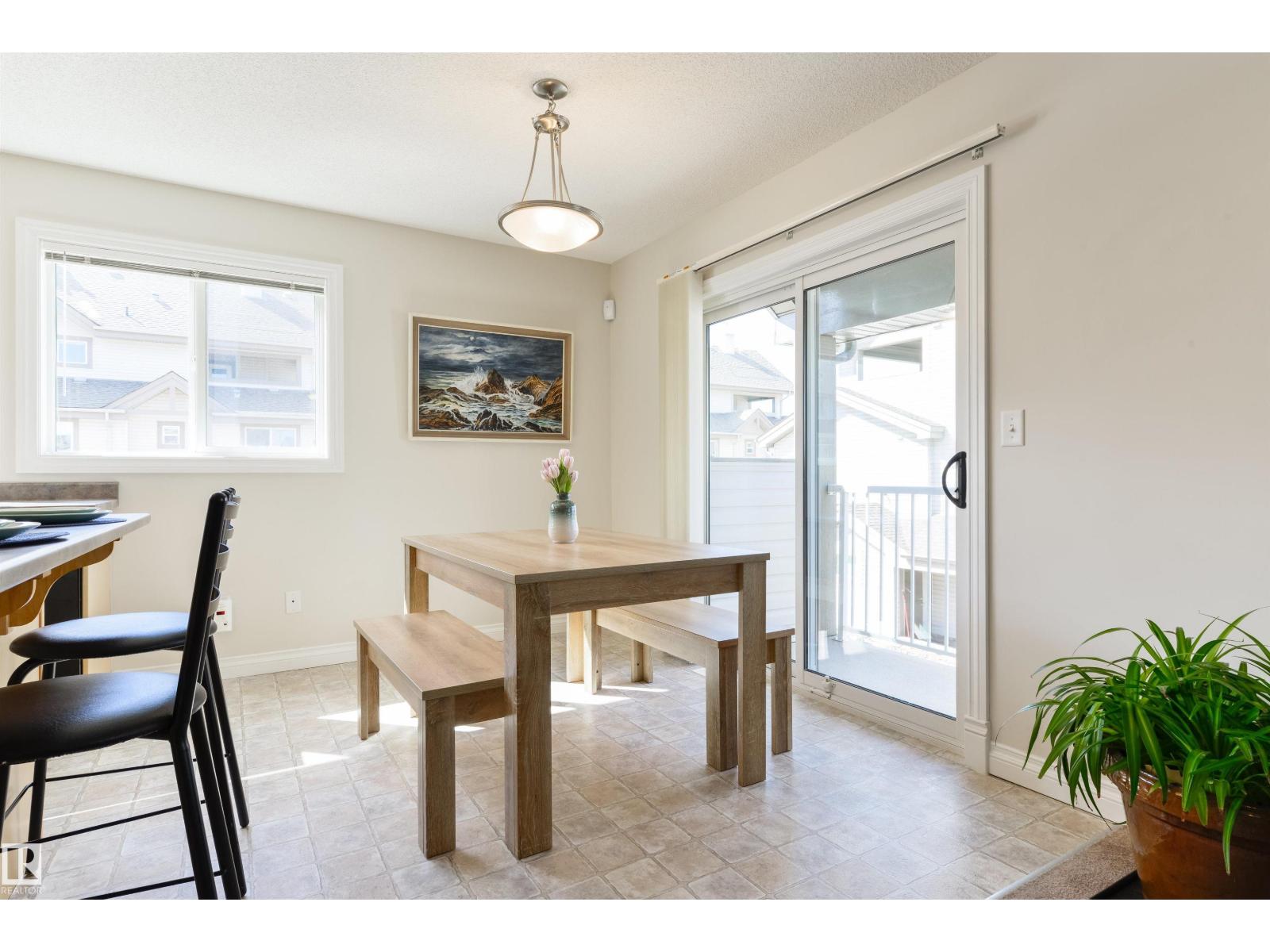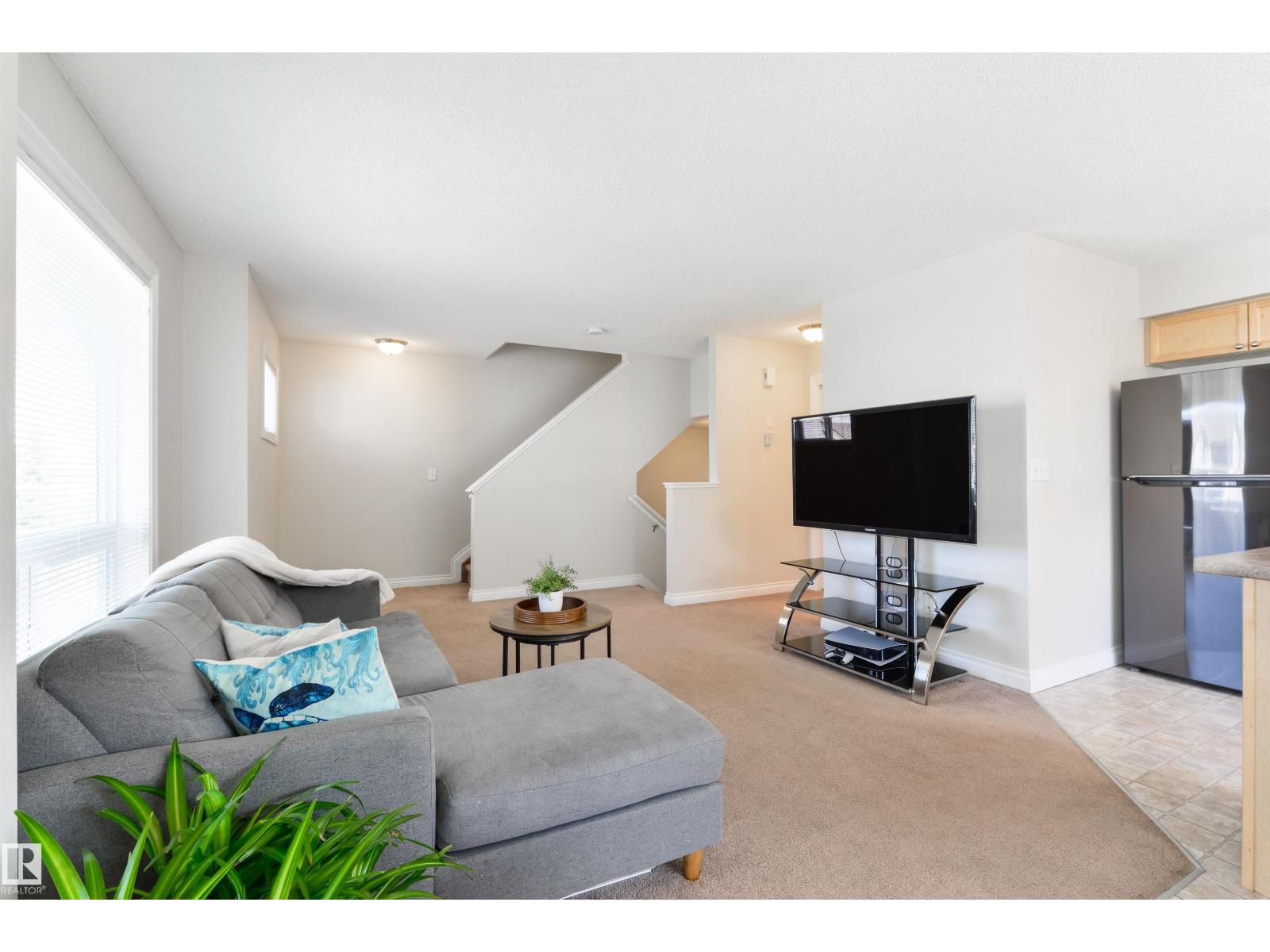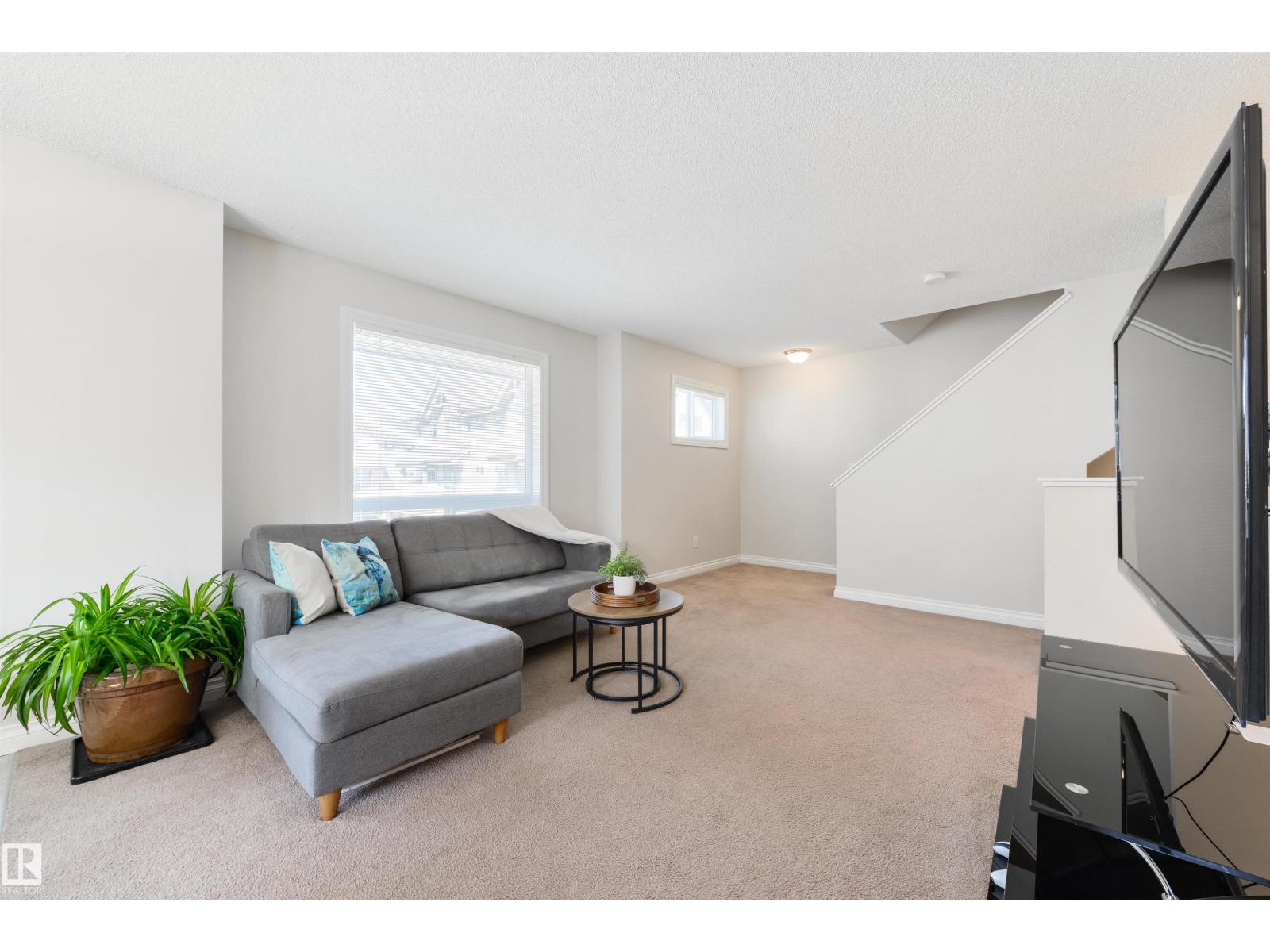 Move-in ready & in an amazing location! This bright 3 bedroom, 2.5 bathroom CORNER UNIT features an open-concept layout, perfect for entertaining, with neutral finishes throughout. The kitchen offers plenty of cupboard and counter space. Surrounded by windows, it overlooks the dining area which opens onto the balcony. You'll also love the large living room and tucked away 2-pc bathroom. Upstairs you'll find a spacious primary bedroom with a walk-in closet and 4-pc ensuite, along with 2 additional generously sized bedrooms, one with its own walk-in closet. UPSTAIRS LAUNDRY and a 4-pc bathroom complete this floor. A rare bonus for a modern townhome, the basement is accessed through the attached garage and is ideal for a gym, office, or storage. Additional features include a SECOND covered balcony upstairs, a single attached garage and full driveway. Minutes from shopping, transit, schools, restaurants, and the Heritage Valley Library, with quick access to Anthony Henday Drive and Calgary Trail. (id:63190)