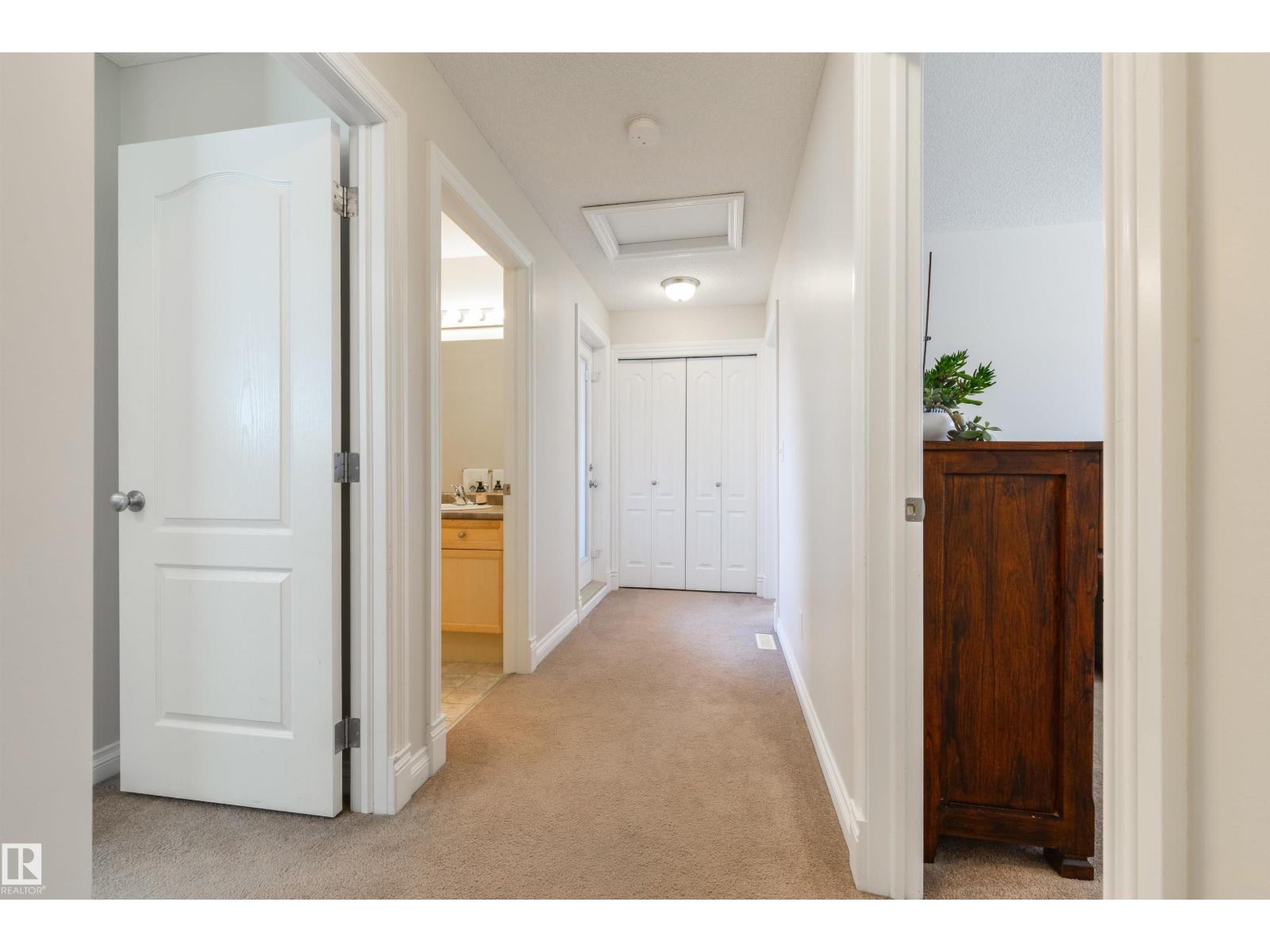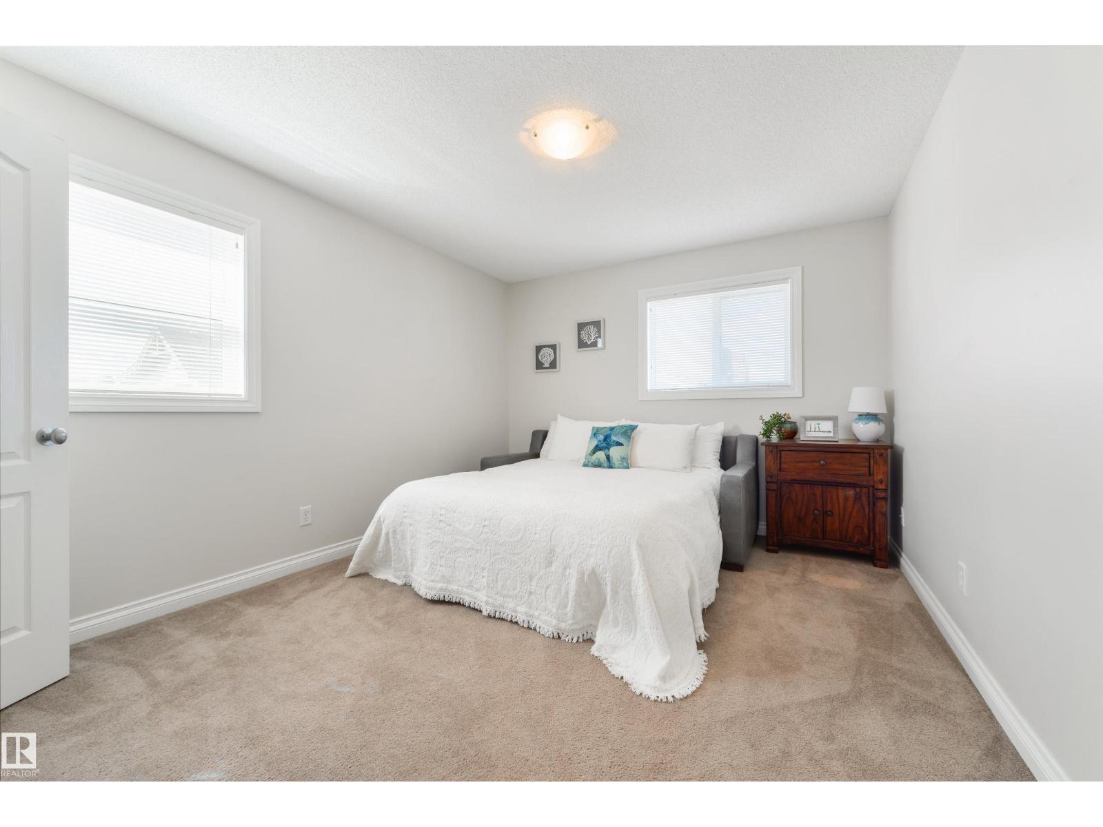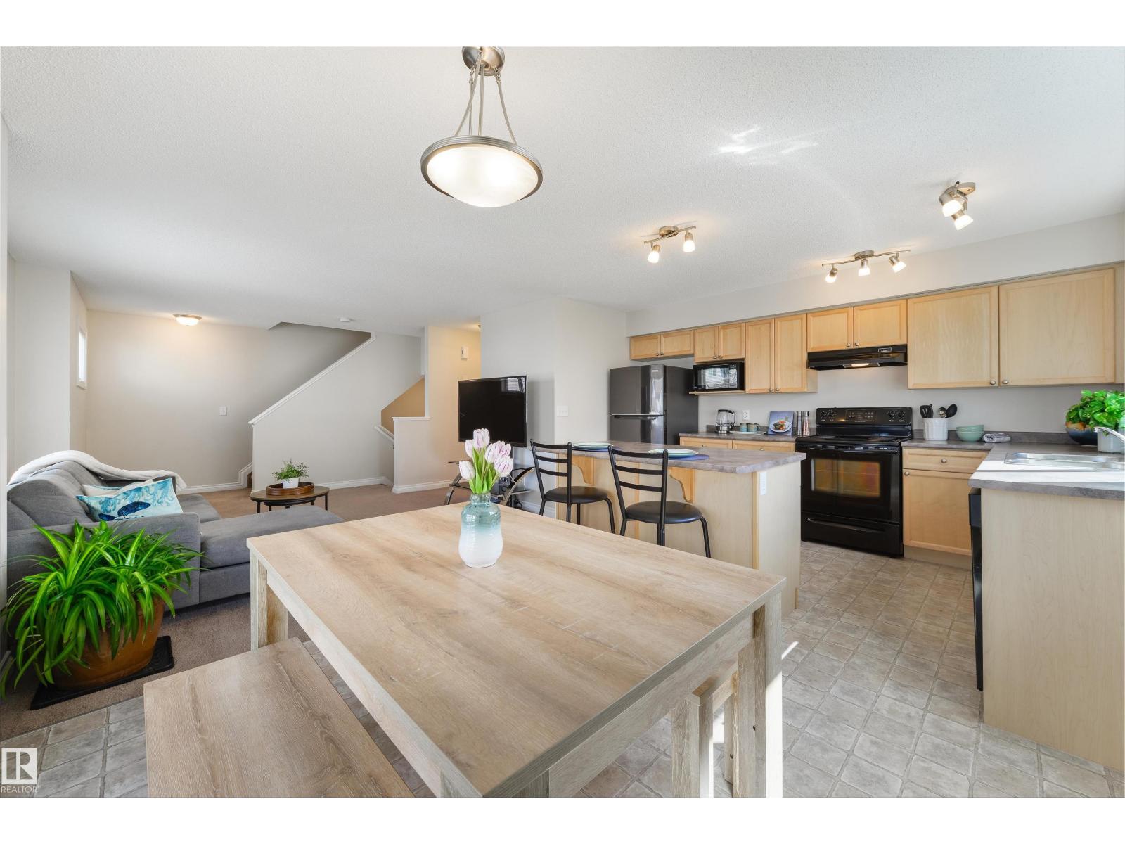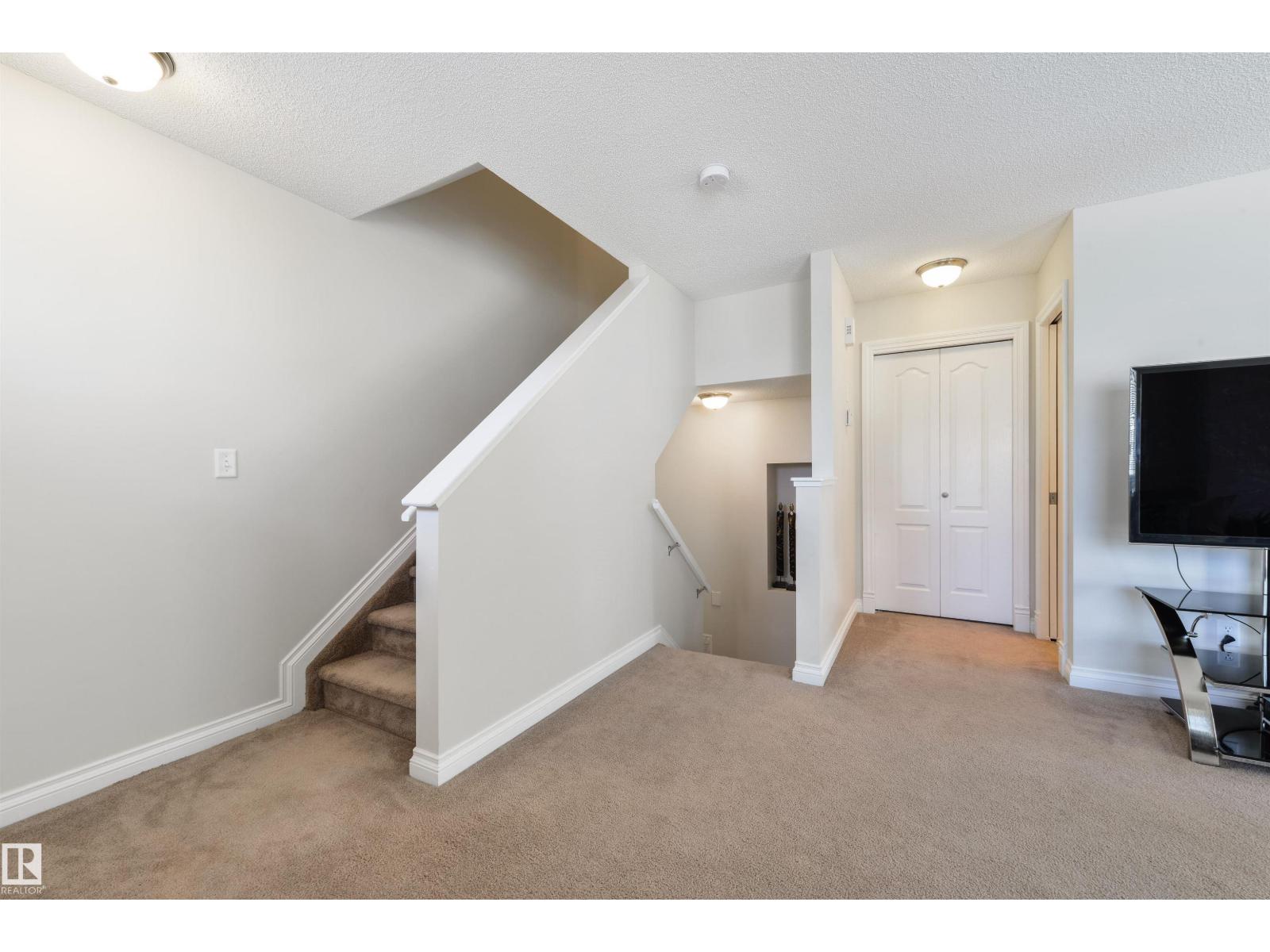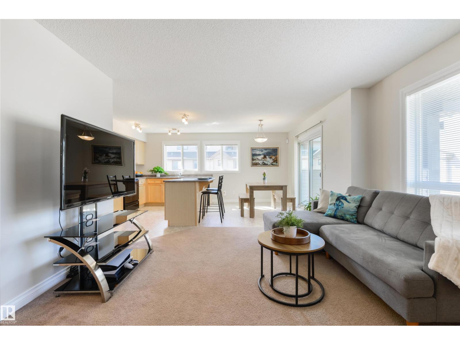Move-in ready & in an amazing location! This bright 3 bedroom, 2.5 bathroom CORNER UNIT features an open-concept layout, perfect for entertaining, with neutral finishes throughout. The kitchen offers plenty of cupboard and counter space. Surrounded by windows, it overlooks the dining area which opens onto the balcony. You'll also love the large living room and tucked away 2-pc bathroom. Upstairs you'll find a spacious primary bedroom with a walk-in closet and 4-pc ensuite, along with 2 additional generously sized bedrooms, one with its own walk-in closet. UPSTAIRS LAUNDRY and a 4-pc bathroom complete this floor. A rare bonus for a modern townhome, the basement is accessed through the attached garage and is ideal for a gym, office, or storage. Additional features include a SECOND covered balcony upstairs, a single attached garage and full driveway. Minutes from shopping, transit, schools, restaurants, and the Heritage Valley Library, with quick access to Anthony Henday Drive and Calgary Trail. (id:63190)