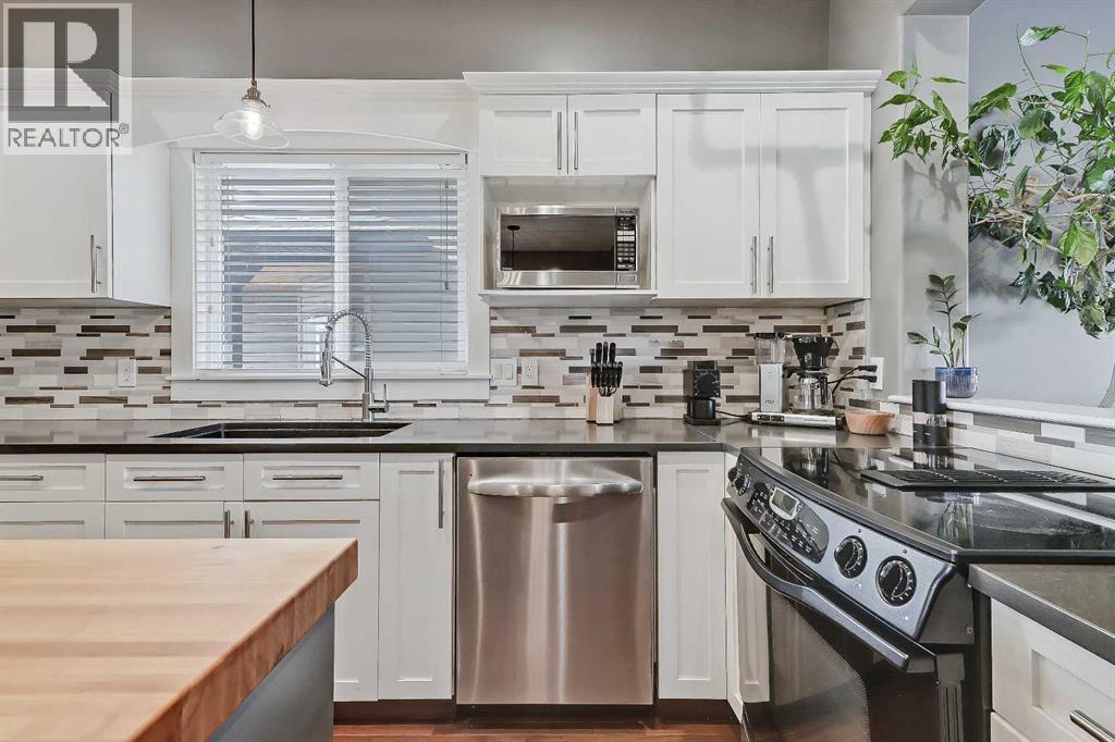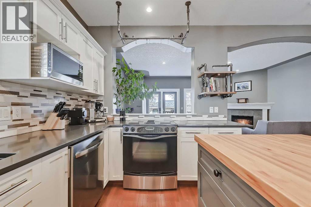 Unmatched opportunity to own a single-family home at the price of a townhome! Ideally located across from green space and minutes to amenities, this home offers almost 2,400 sq ft of living space with 3 beds up, 2.5 baths, and an insulated, heated double detached garage. This home welcomes you with a front porch framed by a mature tree, leading into a formal foyer. The main floor features solid hardwood flooring throughout and a bright front den perfect for a home office. The kitchen is functional, featuring quartz countertops, stainless steel appliances, a tile backsplash, ample cabinetry and a central island with butcher block counters. The formal dining area is centred underneath a designer light fixture, while the spacious living room offers a mantled gas fireplace. Step out onto the fully fenced backyard with a deck, large grassy area, dual gas lines, and a convenient storage shed. A concrete pathway leads to the insulated, heated, double detached garage. A discreet powder room near the front entrance completes the main level. Upstairs offers 3 generously sized bedrooms, including a primary suite with abundant natural light from multiple windows, a feature wall, a sitting area, and a walk-in closet. The ensuite features dual sinks, a soaker tub, and a separate walk-in shower. The 2nd and 3rd bedrooms share use of a full bath with an extended vanity and a tub/shower. A dedicated laundry room with tiled flooring, built-in storage, a window and a side-by-side washer and dryer complete the upper level. The basement is partially developed, offering a recreation room and a den, plus a bathroom rough-in is already in place for future development. This home also comes with a newer water tank and central air conditioning. Enjoy being just minutes from numerous options for shopping, dining, and other daily necessities. Perfectly situated on a quiet street overlooking a park/playground, this home is minutes away from the Bow River Parks and Pathways. Plus, other nearby pa rks and amenities include Shouldice Park, Bowness Park, the Alberta Children's Hospital, Foothills Hospital, the University of Calgary, and WinSport. This home is right across Our Lady of the Assumption School and close to Bowness High School, Bowness Community Association, and Bowness Skate Park, plus it’s close to various options for shopping, restaurants, and amenities such as Superstore and many local favourites, including Salt & Pepper, Cadance Coffee, and Bow Cycle… to name a few! (id:63190)