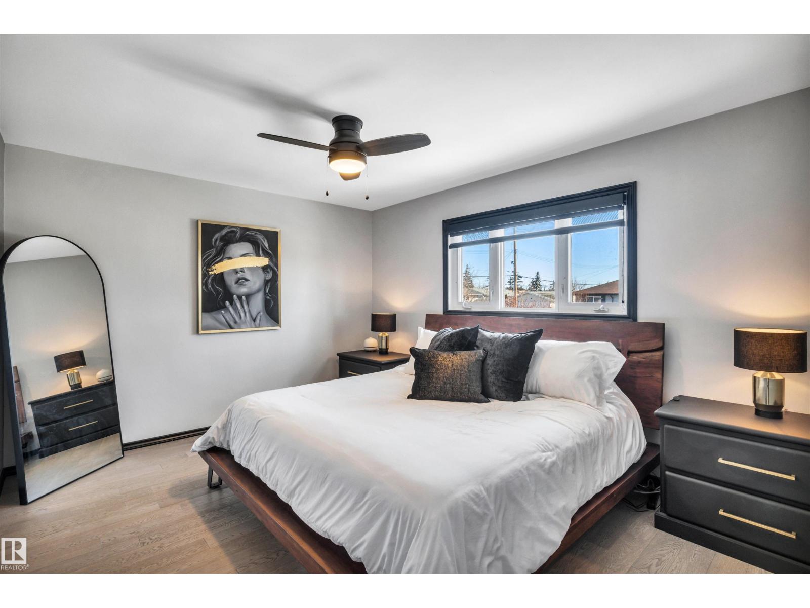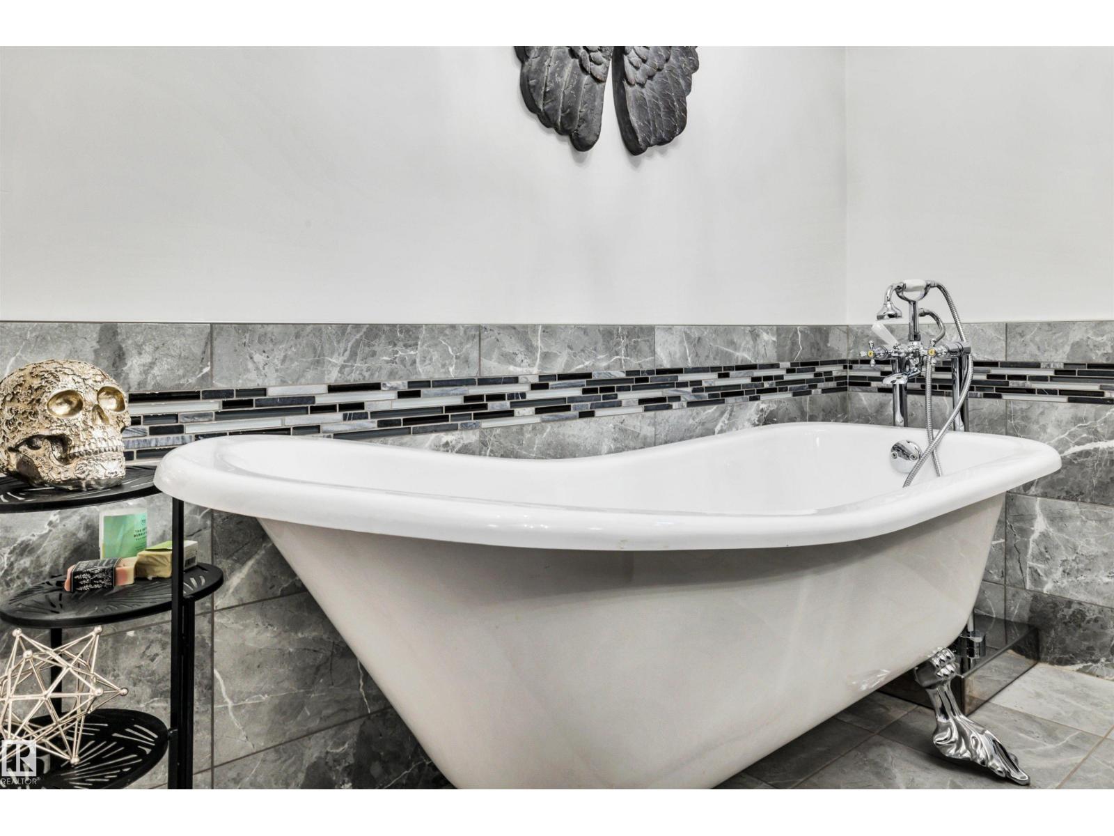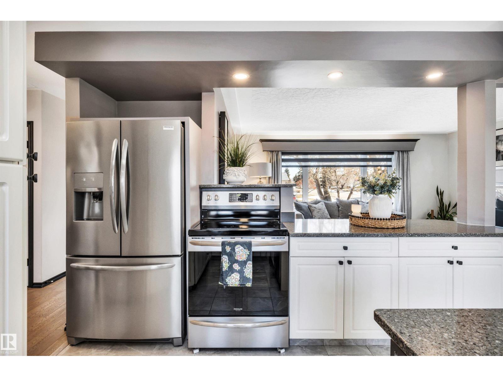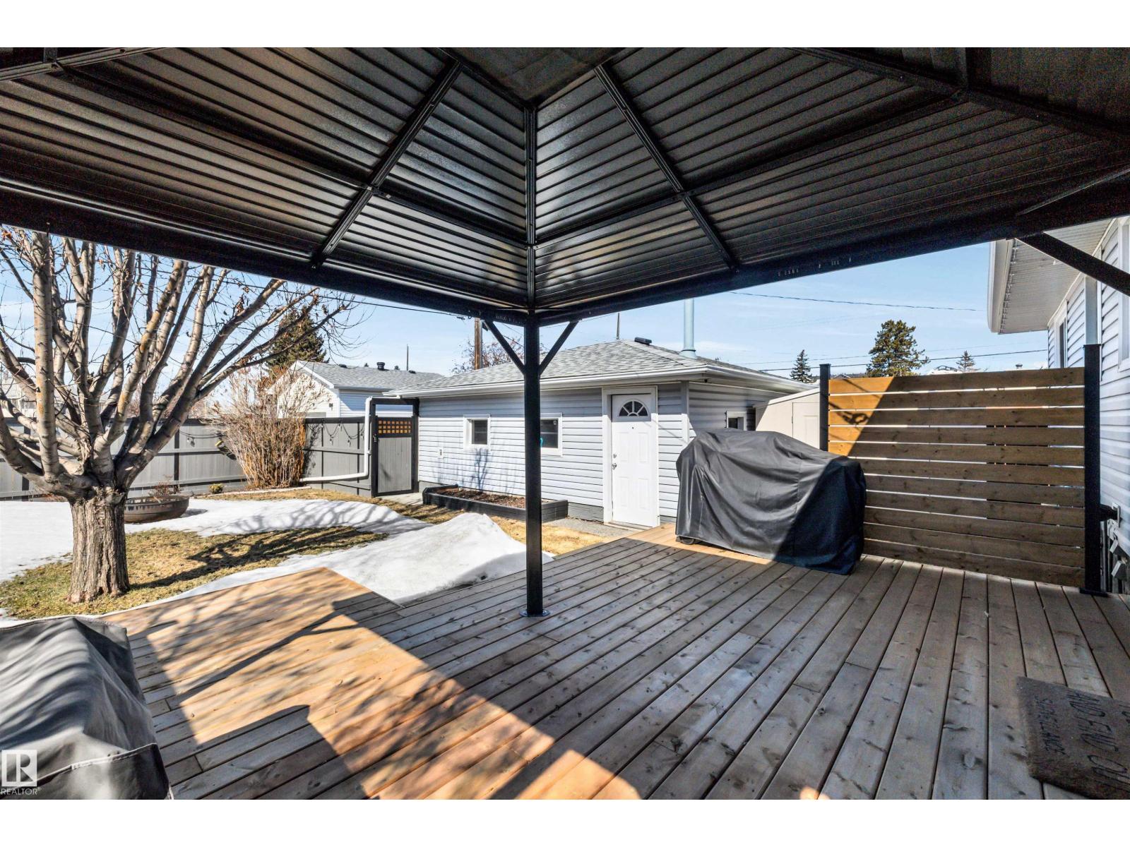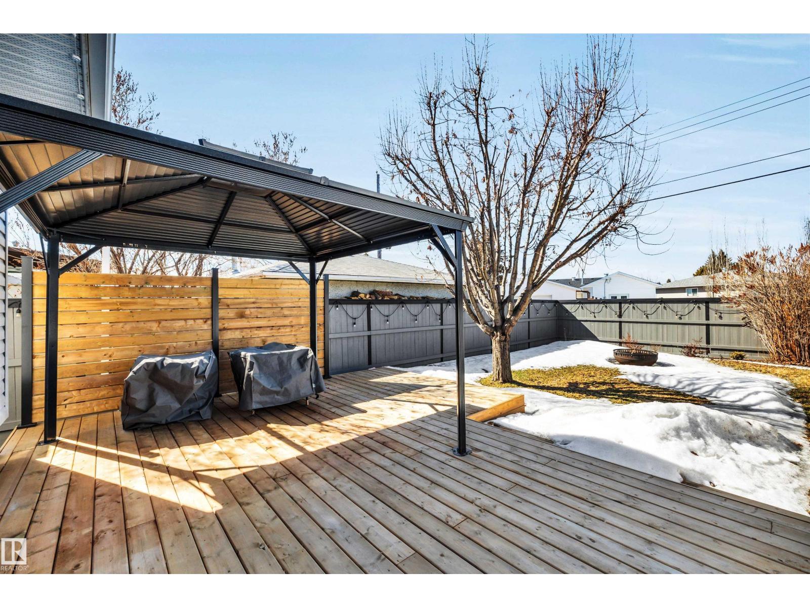 Welcome to this beautiful turn-key bungalow in Rosslyn, featuring 4 bedrooms & 2 full bathrooms. The main floor offers a modern open-concept layout w/engineered hardwood floors, spacious living room w/large newly installed picture window & generous dining area. The kitchen boasts ample cabinetry, stainless steel appliances & quartz countertops. The oversized primary bedroom includes a stunning custom walk-in closet w/organizers. The main bath features a sleek glass shower, marble counter & heated floors. The fully finished basement offers engineered hardwood, a large rec room, two additional bedrooms, & a spa-like bath with a classic clawfoot tub & heated floors. Enjoy the sunny west-facing backyard w/large deck (installed last summer), gas BBQ hookup & double detached garage. Upgrades include reinsulated attic w/added vents (2025), repainted fence, permanent exterior roofline lighting, newer shingles, gutter guards, vinyl windows, flooring, custom blinds & sewer line (2018). Quiet street w/ample parking. (id:63190)