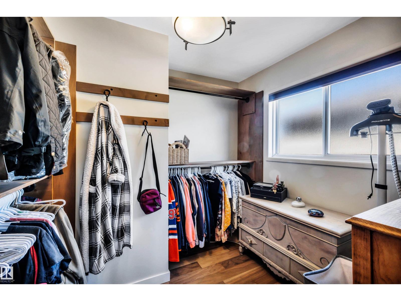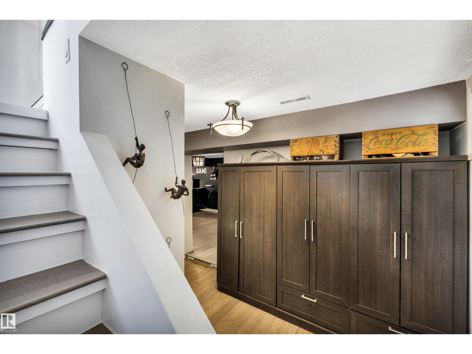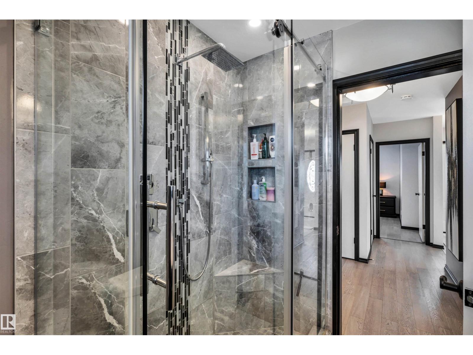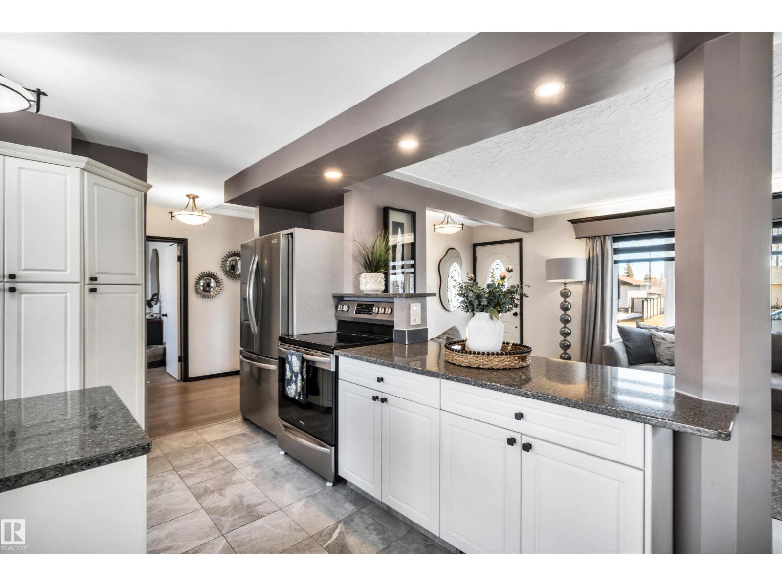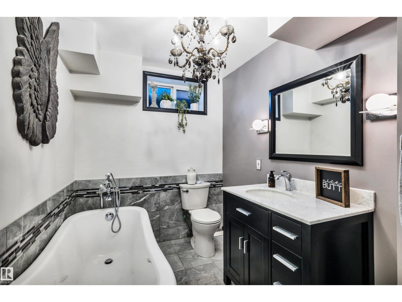 Welcome to this beautiful turn-key bungalow in Rosslyn, featuring 4 bedrooms & 2 full bathrooms. The main floor offers a modern open-concept layout w/engineered hardwood floors, spacious living room w/large newly installed picture window & generous dining area. The kitchen boasts ample cabinetry, stainless steel appliances & quartz countertops. The oversized primary bedroom includes a stunning custom walk-in closet w/organizers. The main bath features a sleek glass shower, marble counter & heated floors. The fully finished basement offers engineered hardwood, a large rec room, two additional bedrooms, & a spa-like bath with a classic clawfoot tub & heated floors. Enjoy the sunny west-facing backyard w/large deck (installed last summer), gas BBQ hookup & double detached garage. Upgrades include reinsulated attic w/added vents (2025), repainted fence, permanent exterior roofline lighting, newer shingles, gutter guards, vinyl windows, flooring, custom blinds & sewer line (2018). Quiet street w/ample parking. (id:63190)