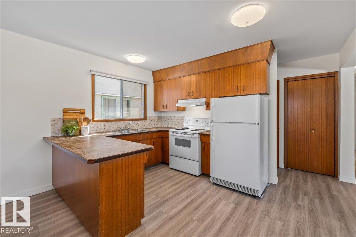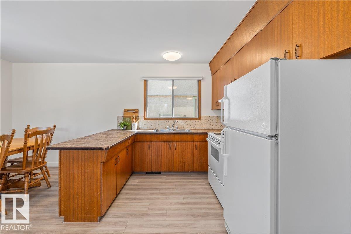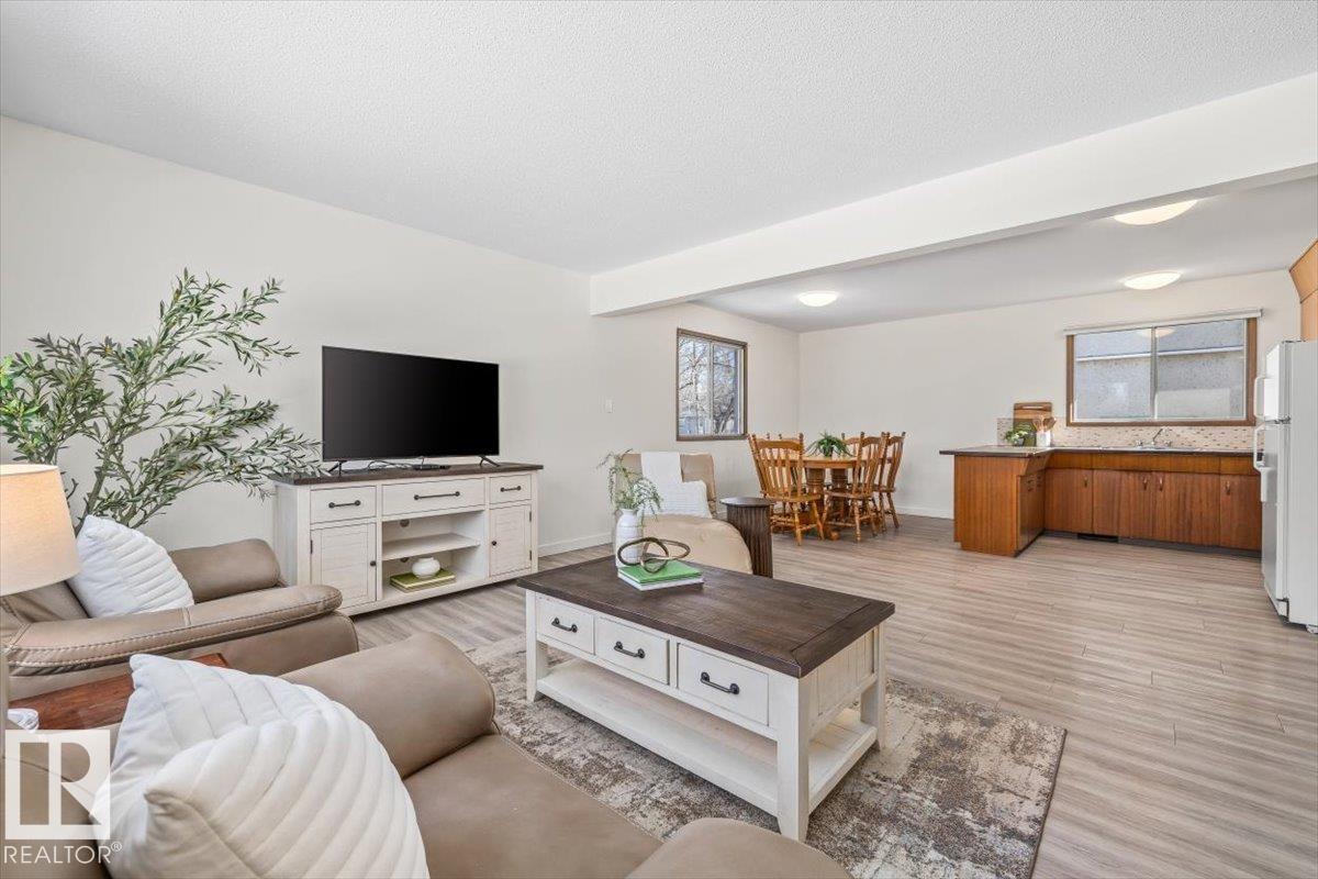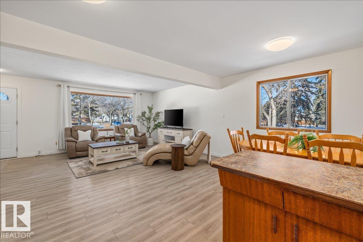 Discover incredible potential in the heart of Old Fort Saskatchewan with this spacious 1,101 sq ft. bungalow. Perfect for savvy investors or first-time buyers seeking a mortgage helper, this 6-bedroom, 3-bathroom home offers a functional layout and extensive updates. The main floor features a massive sun-drenched living room, a dedicated dining area, and a charming U-shaped kitchen that radiates vintage character. You will find three generous bedrooms on the main level, including a primary suite with a 2-piece ensuite. The fully finished basement expands your living space with a large rec room, three additional bedrooms, and a 3-piece bath. Fresh laminate flooring runs throughout the entire home. Exterior highlights include professional concrete walkways, a beautifully landscaped yard, and an oversized single detached garage. Situated just steps from local playgrounds, this move-in-ready home perfectly blends classic charm with modern durability. (id:63190)