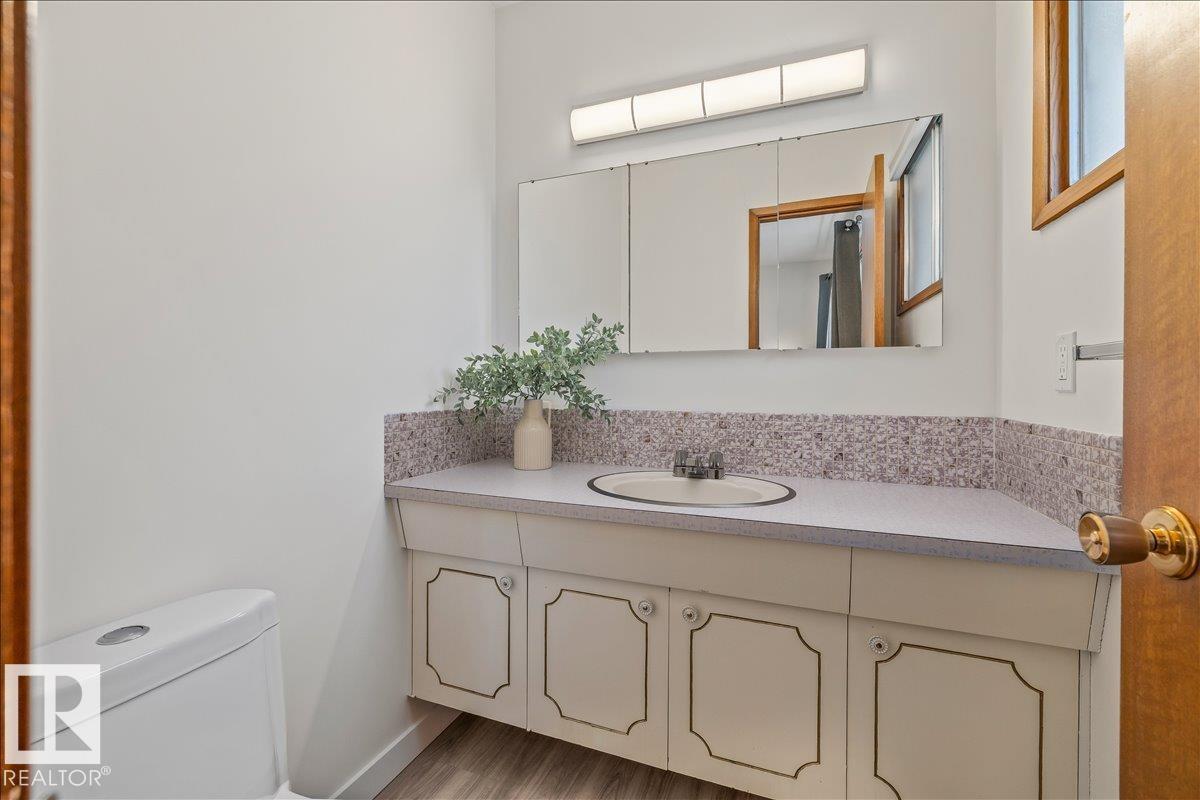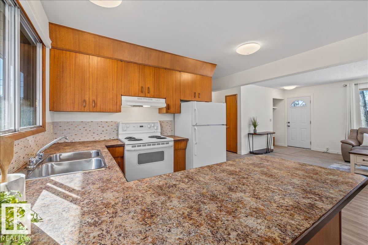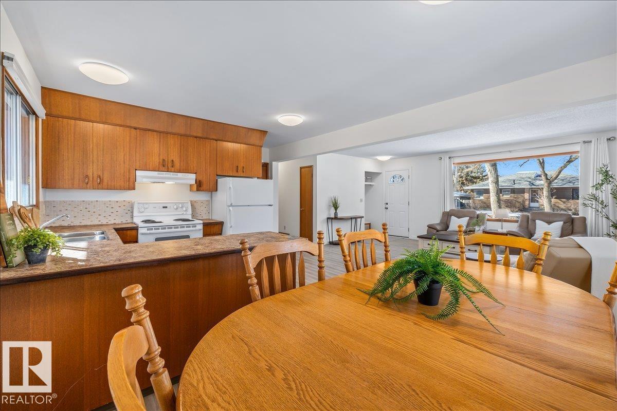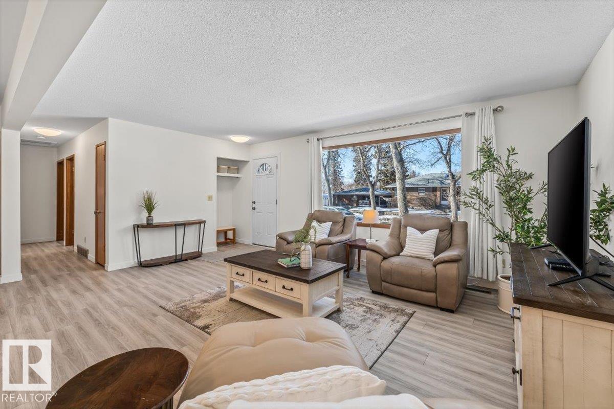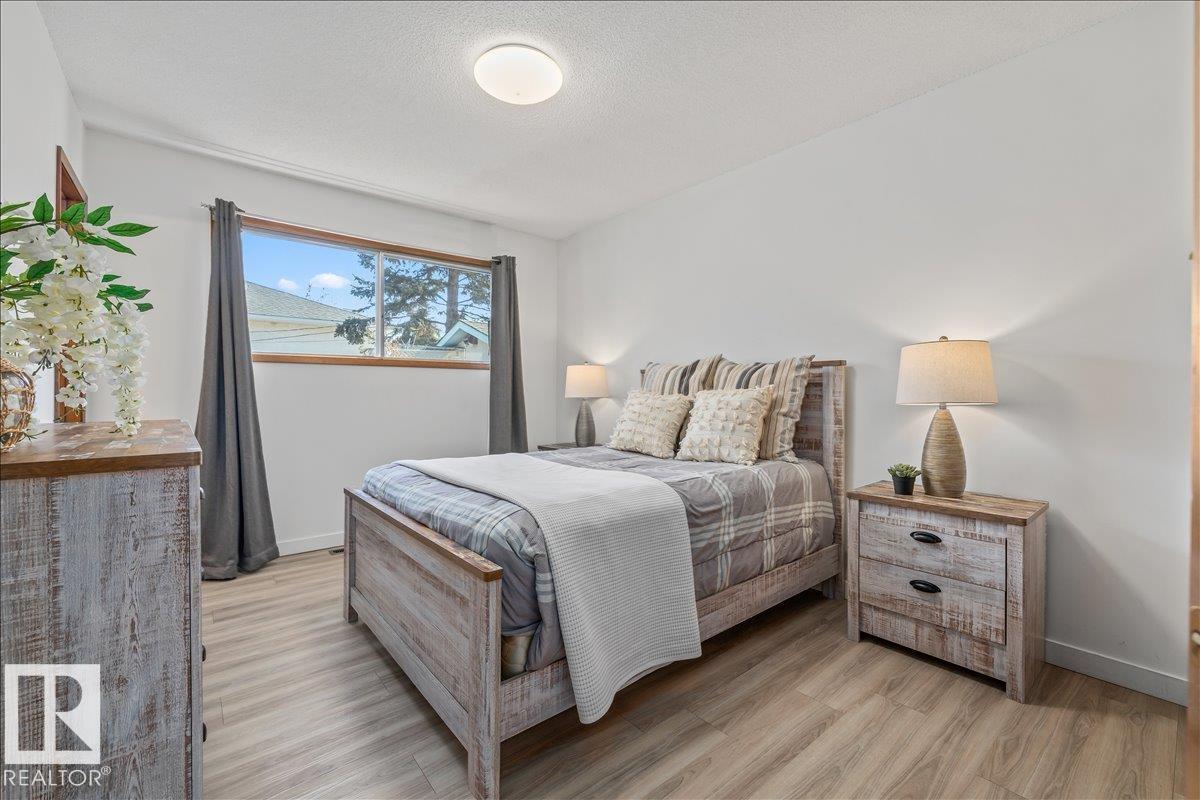 Discover incredible potential in the heart of Old Fort Saskatchewan with this spacious 1,101 sq ft. bungalow. Perfect for savvy investors or first-time buyers seeking a mortgage helper, this 6-bedroom, 3-bathroom home offers a functional layout and extensive updates. The main floor features a massive sun-drenched living room, a dedicated dining area, and a charming U-shaped kitchen that radiates vintage character. You will find three generous bedrooms on the main level, including a primary suite with a 2-piece ensuite. The fully finished basement expands your living space with a large rec room, three additional bedrooms, and a 3-piece bath. Fresh laminate flooring runs throughout the entire home. Exterior highlights include professional concrete walkways, a beautifully landscaped yard, and an oversized single detached garage. Situated just steps from local playgrounds, this move-in-ready home perfectly blends classic charm with modern durability. (id:63190)