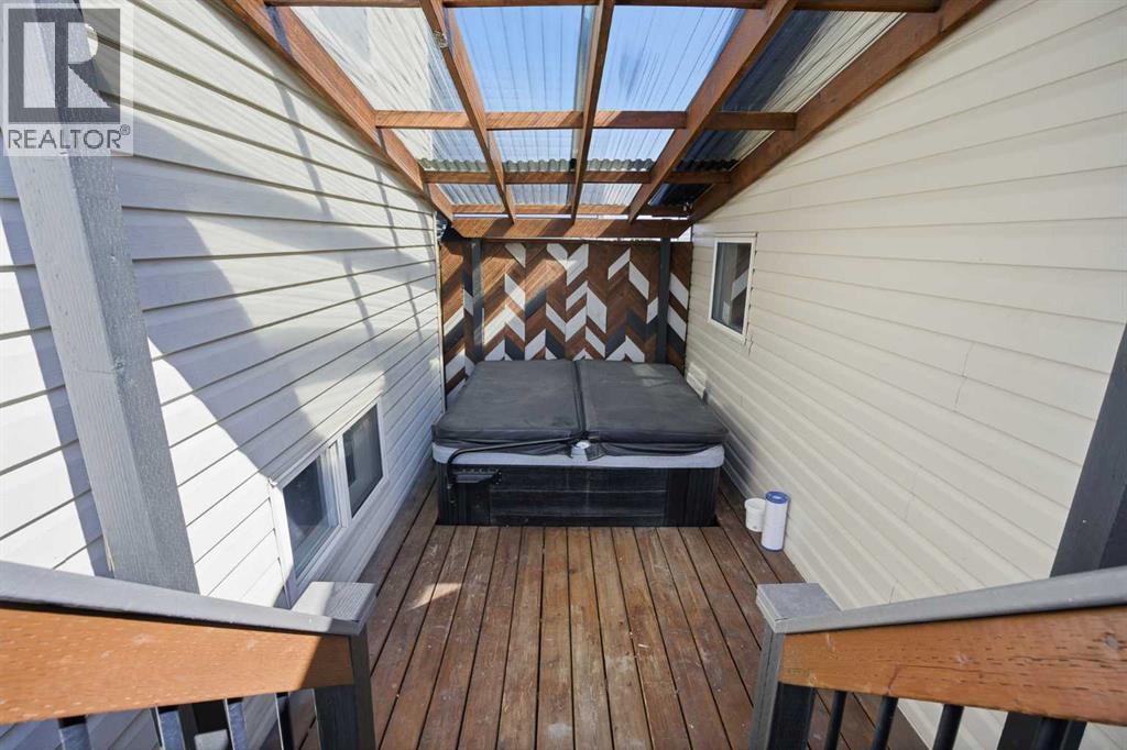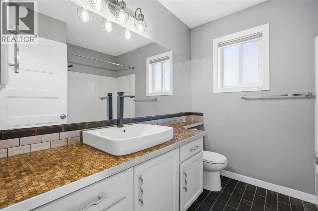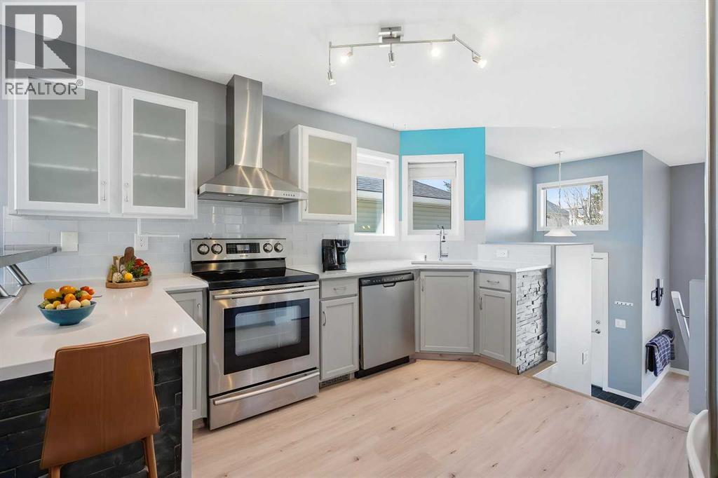 | FULLY RENOVATED | 3 BED + 2 BATH | COVERED PATIO W/ HOT TUB | HEATED DOUBLE GARAGE | STEPS TO NOSE CREEK | Welcome to this beautifully renovated home in the highly sought-after community of Coventry Hills—where comfort, style, and convenience come together effortlessly. Thoughtfully updated throughout, this home features premium vinyl plank flooring, fresh paint, updated baseboards and trim, and a refined, modern finish from top to bottom. Set in a vibrant, family-friendly neighbourhood, you’ll enjoy unbeatable access to scenic pathways, tranquil ponds, Nose Creek Park, and a wide range of nearby amenities. From the moment you arrive, the charming front façade sets a warm and inviting tone. Step inside to a private foyer with a coat closet, opening into a bright and airy living room filled with natural light. Large windows and a soft, neutral palette enhance the open feel, creating a welcoming space to relax or entertain. Upstairs, the kitchen is both functional and stylish—featuring quartz countertops, stainless steel appliances, a spacious breakfast island, painted cabinetry, and ample storage. The adjacent dining area comfortably accommodates a full-size table and offers direct access to the backyard. Step outside to your newly built deck and covered patio, complete with a hot tub—an ideal setup for year-round enjoyment and entertaining. Down the hall, you’ll find two generously sized bedrooms, including one equipped with a built-in A/C unit, along with a beautifully updated full bathroom featuring new tile work and a distinctive penny/epoxy vanity. The developed basement offers incredible flexibility with an additional bedroom, a full bathroom, and a spacious rec area—perfect for guests, a home office, or future customization. The oversized double garage is a true car enthusiast’s dream—fully insulated, drywalled, and equipped with its own heater and impressive 10’ ceilings. With the ability to accommodate up to four small vehicles and a custom staircase leadi ng to attic storage, this space alone represents a $45,000+ value. Fully move-in ready and loaded with upgrades, this is a home that truly checks all the boxes. Don’t miss your opportunity—book your private showing today! (id:63190)