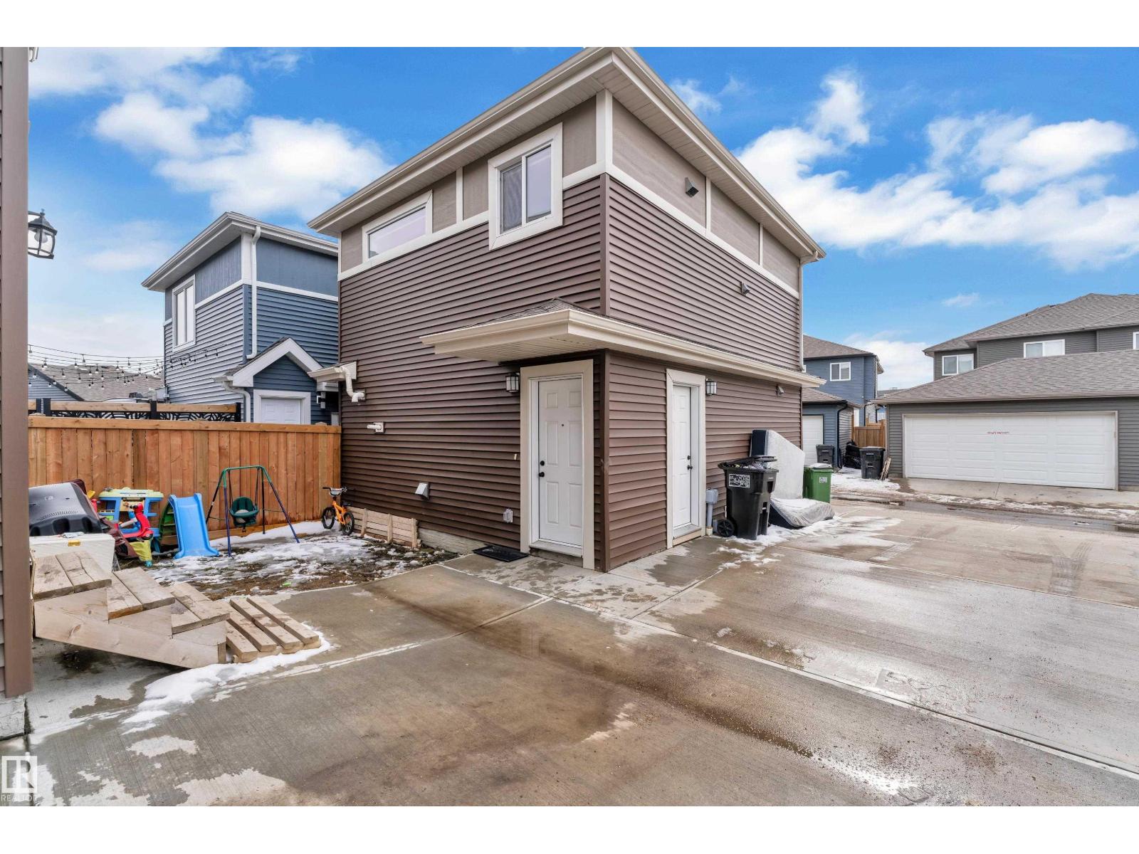 This 2021 built single family home in Orchards at Ellerslie offering 1735.94 sq ft for the home, 484.60 sq ft of garage suite, 751.84 sq ft of basement is perfect for multi-generational living or investors. Featuring 3 kitchens and 2 laundry setups, this property includes a fully finished basement with separate entrance and an in-law suite, plus a self-contained legal garage suite above the detached double garage. The main floor boasts a modern open layout with stainless steel appliances, while the upper level offers 3 bedrooms, including a primary suite with ensuite, and a bonus room. Situated on a pie-shaped lot with extra parking of upto 4 cars on the driveway and 2 cars in the garage and 2 minutes walk to schools, parks, transit, and premium community amenities. (id:63190)