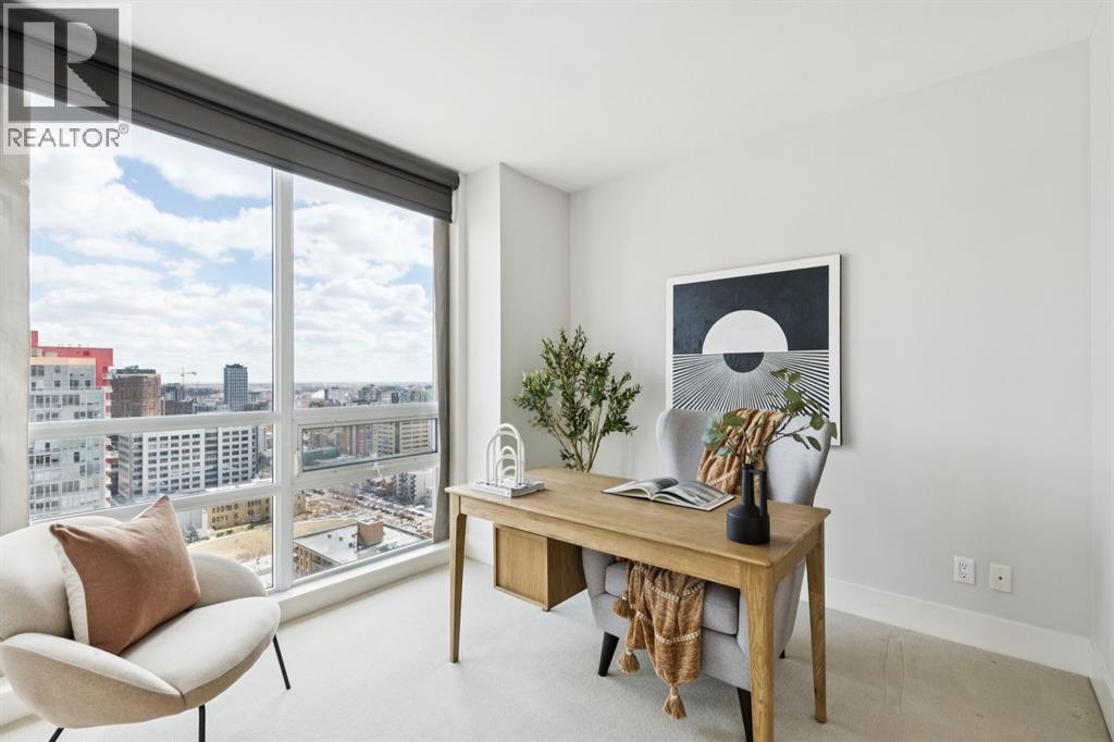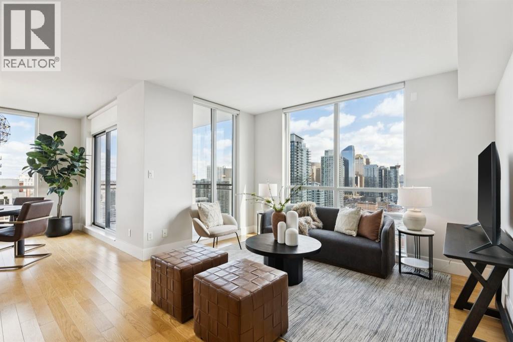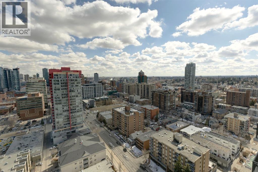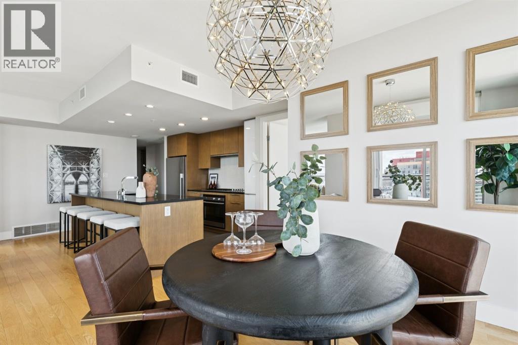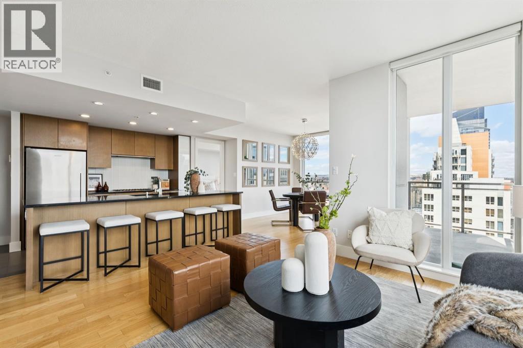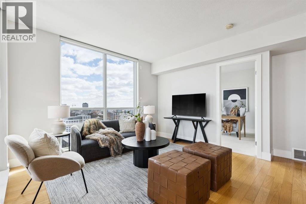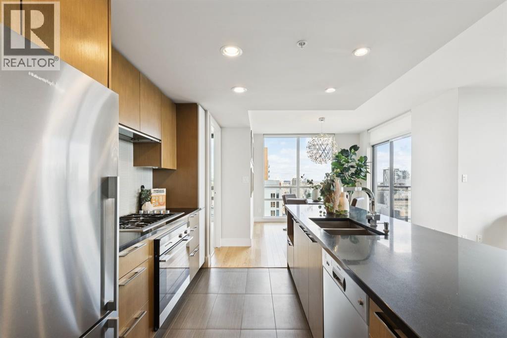 Experience elevated urban living in this stylish LUNA residence, where panoramic views stretch from the dazzling downtown skyline across North Hill, the Bow River valley, C.O.P., and out to the Rocky Mountains. Designed with one of the most sought after layouts, this bright and modern 2 bed/2 bath suite places the bedrooms on opposite sides for optimal privacy, with an open concept kitchen, living, and dining area at its heart. Flooded with natural light from floor-to-ceiling windows, the home exudes warmth while maintaining a sleek, contemporary aesthetic. The well equipped kitchen showcases warm wood cabinetry, black quartz counters, a glass backsplash, and premium stainless steel appliances including Fisher & Paykel refrigerator, gas cooktop, and oven, and a Blomberg dishwasher. A spacious island with seating flows seamlessly into the dining area, which opens onto a glass-railed balcony that's perfect for soaking in breathtaking panoramic views. The primary retreat offers a custom walk-through closet leading to a luxurious 5pc ensuite featuring in-floor heating, a deep soaker tub, and a separate shower. The second bedroom is equally well appointed with dual closets and convenient access to a 3pc cheater ensuite. Thoughtful touches like custom blackout blinds, air conditioning, in-suite laundry, and additional in-suite storage ensure everyday comfort and convenience. Residents of LUNA enjoy an exceptional array of amenities including a fully equipped gym, yoga studio, steam spa, party room, guest suites, concierge service, visitor parking, and a serene outdoor zen garden with fireplace. Located in the heart of the vibrant Beltline, you’re just steps from shopping, dining, the Bow River pathways, and everyday essentials. Complete with a storage locker (Level 3 #316) and underground parking (P1 #L28) this home offers the perfect blend of luxury, functionality, and unbeatable inner-city lifestyle. (id:63190)