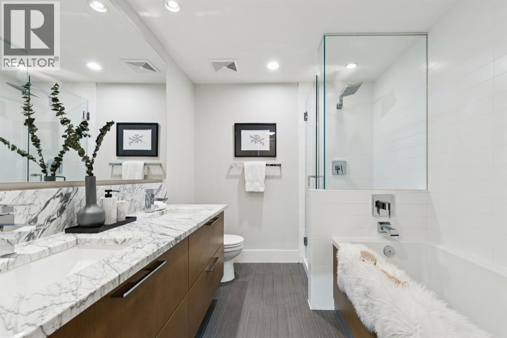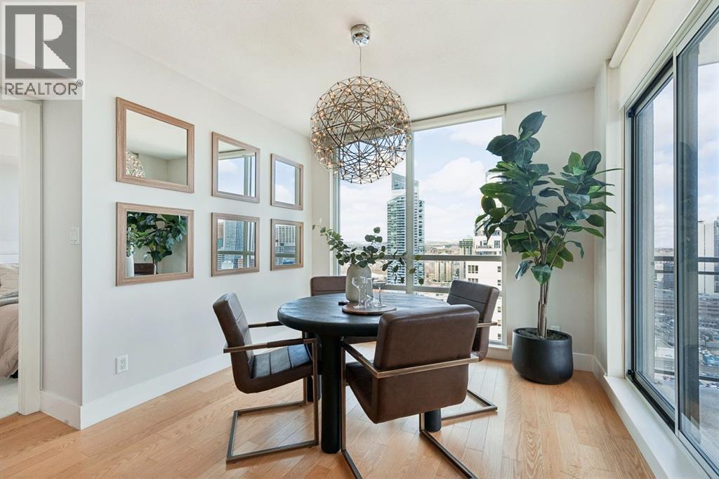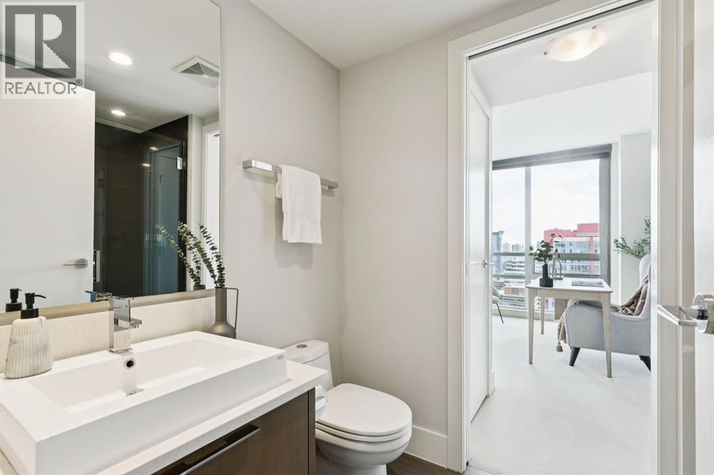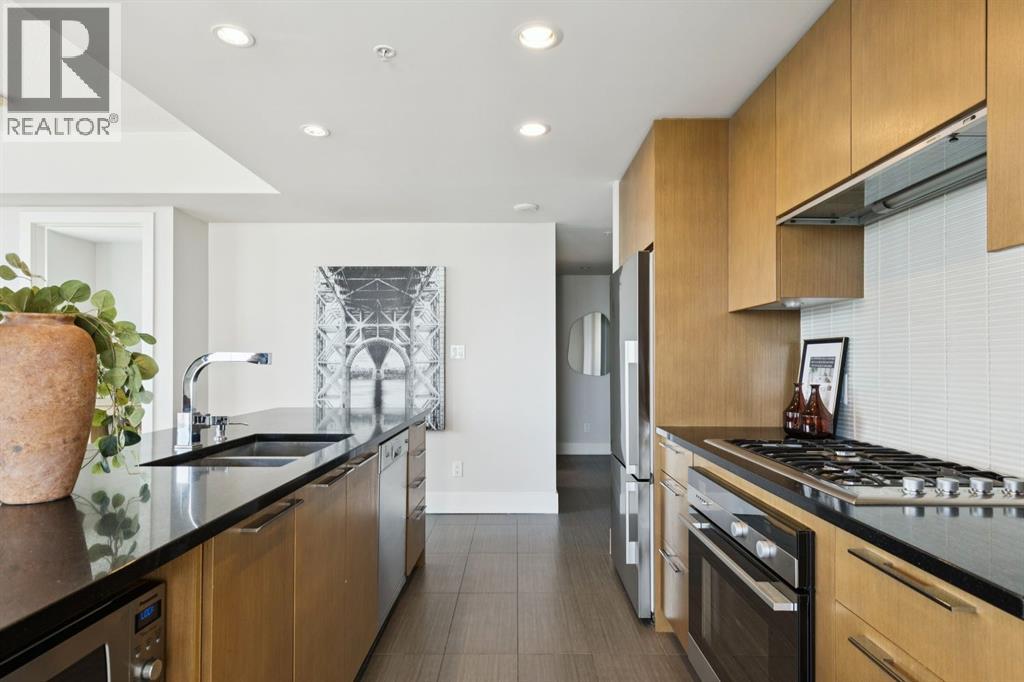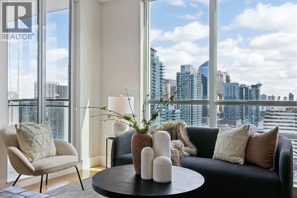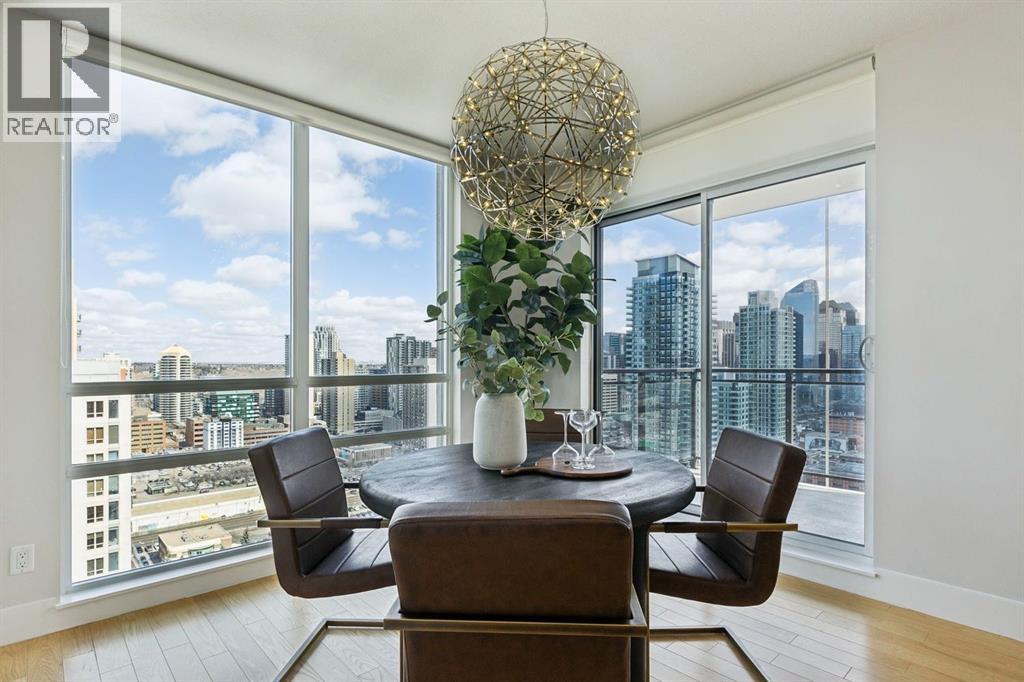 Experience elevated urban living in this stylish LUNA residence, where panoramic views stretch from the dazzling downtown skyline across North Hill, the Bow River valley, C.O.P., and out to the Rocky Mountains. Designed with one of the most sought after layouts, this bright and modern 2 bed/2 bath suite places the bedrooms on opposite sides for optimal privacy, with an open concept kitchen, living, and dining area at its heart. Flooded with natural light from floor-to-ceiling windows, the home exudes warmth while maintaining a sleek, contemporary aesthetic. The well equipped kitchen showcases warm wood cabinetry, black quartz counters, a glass backsplash, and premium stainless steel appliances including Fisher & Paykel refrigerator, gas cooktop, and oven, and a Blomberg dishwasher. A spacious island with seating flows seamlessly into the dining area, which opens onto a glass-railed balcony that's perfect for soaking in breathtaking panoramic views. The primary retreat offers a custom walk-through closet leading to a luxurious 5pc ensuite featuring in-floor heating, a deep soaker tub, and a separate shower. The second bedroom is equally well appointed with dual closets and convenient access to a 3pc cheater ensuite. Thoughtful touches like custom blackout blinds, air conditioning, in-suite laundry, and additional in-suite storage ensure everyday comfort and convenience. Residents of LUNA enjoy an exceptional array of amenities including a fully equipped gym, yoga studio, steam spa, party room, guest suites, concierge service, visitor parking, and a serene outdoor zen garden with fireplace. Located in the heart of the vibrant Beltline, you’re just steps from shopping, dining, the Bow River pathways, and everyday essentials. Complete with a storage locker (Level 3 #316) and underground parking (P1 #L28) this home offers the perfect blend of luxury, functionality, and unbeatable inner-city lifestyle. (id:63190)