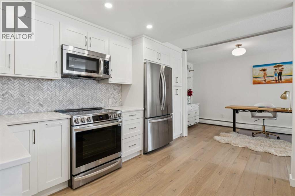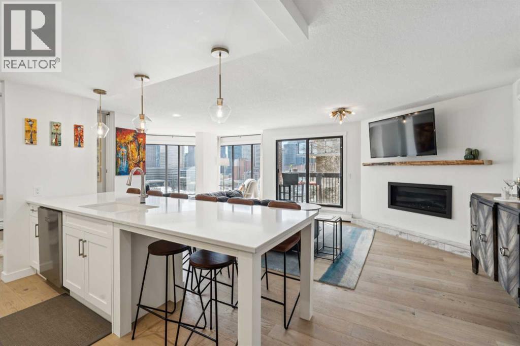 On the ridge in Crescent Heights, overlooking downtown. The most desirable real estate in the city. You can't beat these views. This is a rare opportunity. There are very few apartments on this ridge. Without question, the most reasonably priced option to get this view. This wonderful 1494 ft² apartment was recently completely renovated. Luxury finishes that will not disappoint. Engineered hardwood floors, high end appliances, tile, stone, gas fireplace. The layout has been re-organized, opened up and modernized. Huge kitchen, massive island, breakfast bar. The primary bedroom is expansive. A walk-in closet and ensuite often never found in properties at 3x the price. There is a flex-room, just off the main living space, currently being utilized as an office. Open it up or close it off with the sliding dividers and use it as you see fit. Office, work out space, dining room or whatever you imagine. The lifestyle choices here are amazing. Walk to downtown, bow river pathway system, all the restaurants and bars on Centre St, Edmonton Tr and in Bridgeland. The building has a tidy, well equipped gym. Also, there's a huge community party/games room with a kitchen, making hosting larger events with family and friends easy. They'll love to visit, there's lots of street parking. A quiet, well run building, on a quiet street so close to downtown, unheard of. (id:63190)