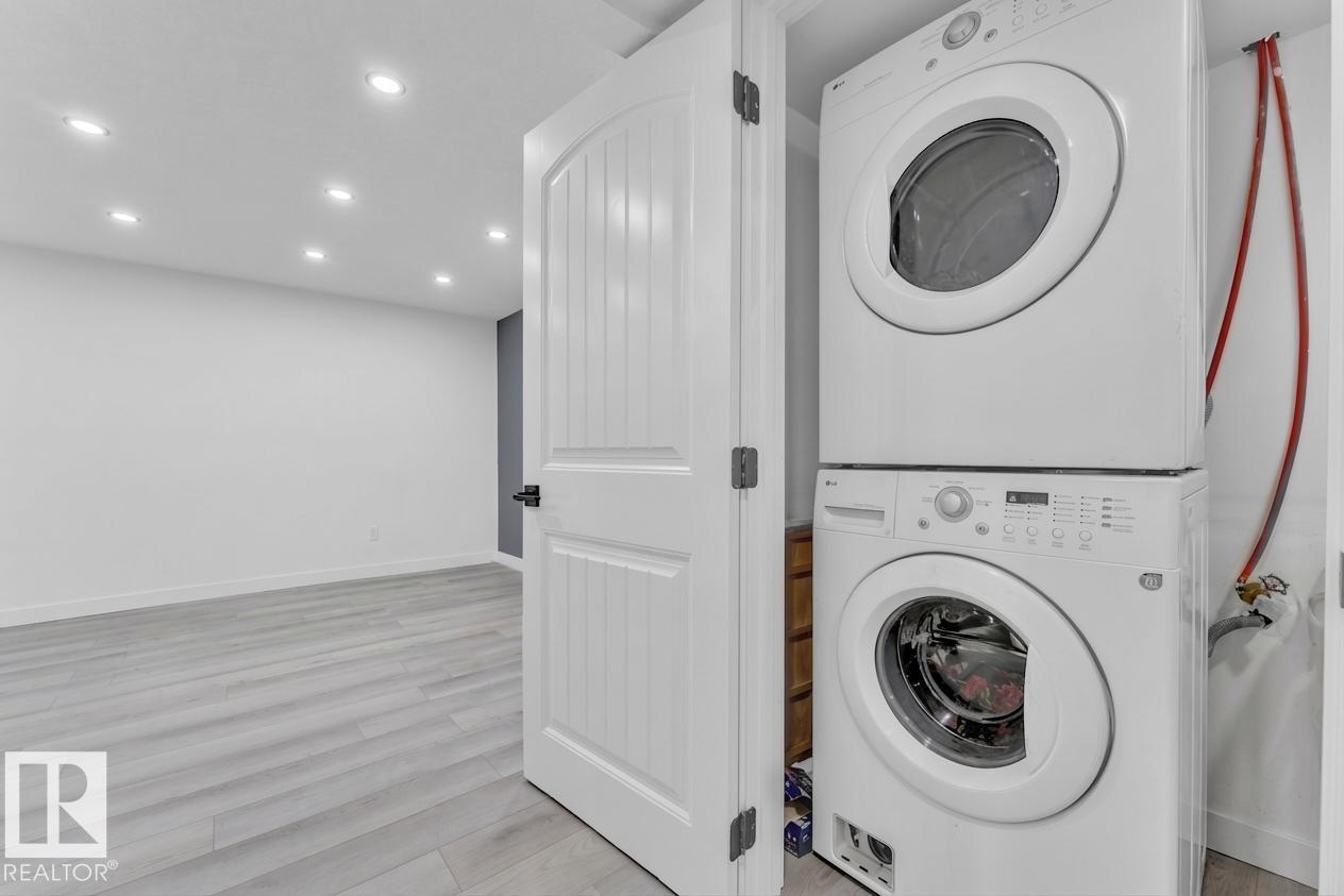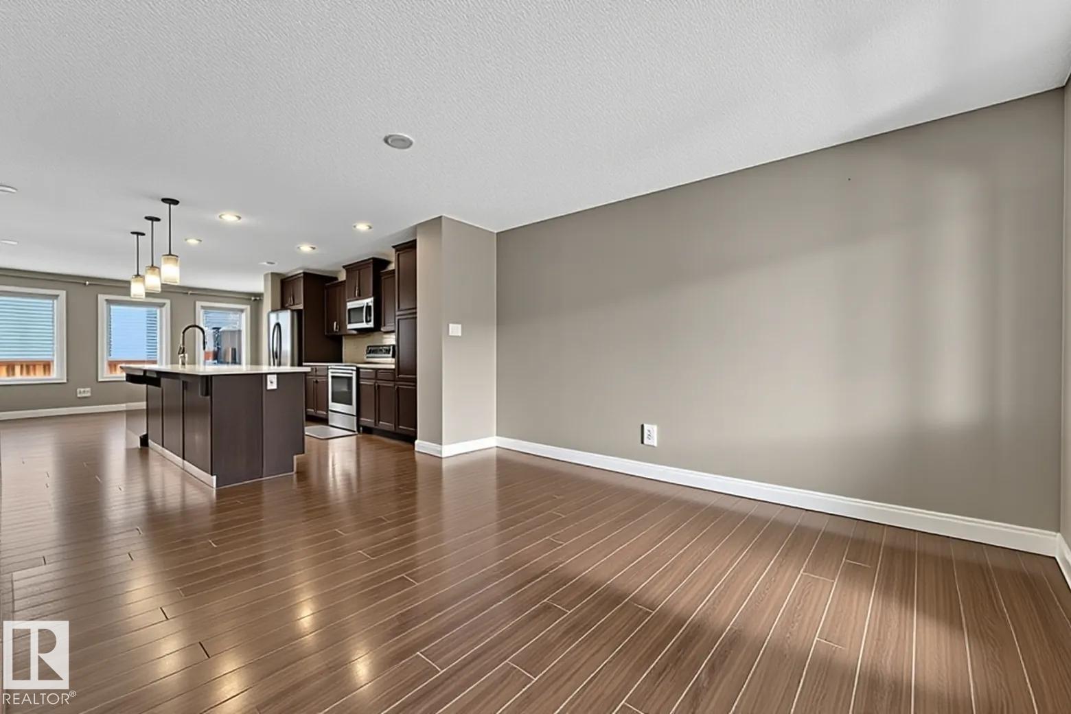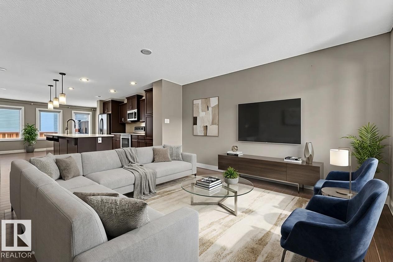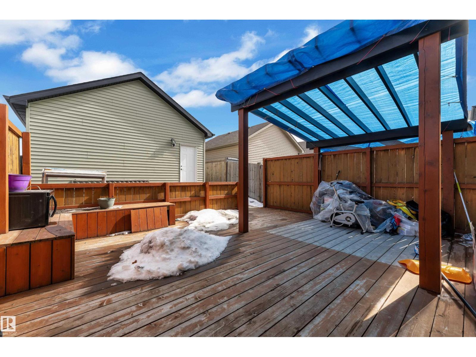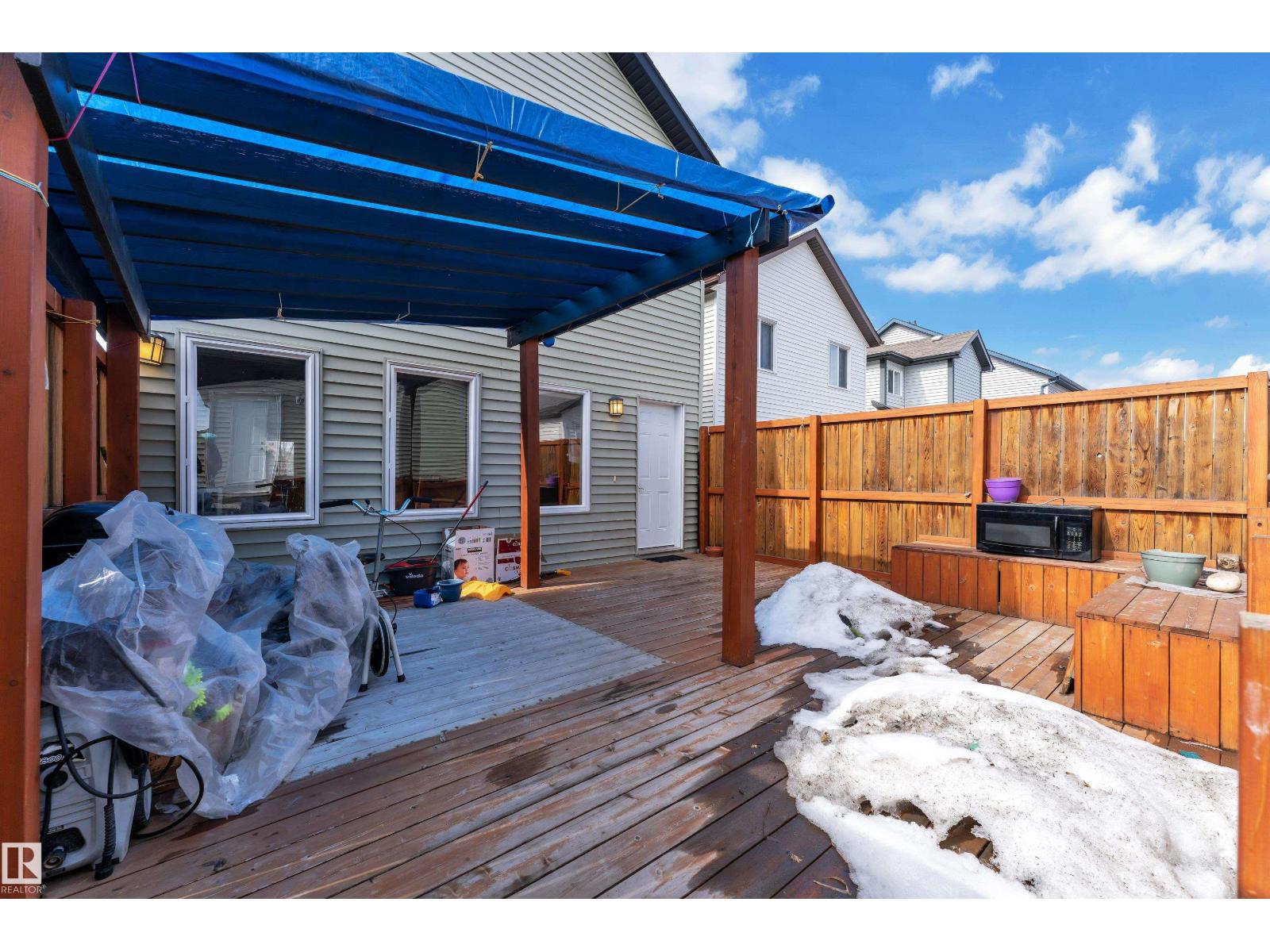Welcome to Walker! 4 BEDS|3.5 BATHS|FINISHED BASEMENT WITH KITCHEN. This well-maintained 2-storey home offers a bright and functional open-concept layout with a spacious kitchen featuring a large island, flowing into the living and dining areas—perfect for everyday living and entertaining. Upstairs includes a generous primary bedroom with walk-in closet and 4-piece ensuite, plus two additional bedrooms and a full bathroom, along with convenient UPSTAIRS LAUNDRY. FULLY FINISHED BASEMENT with SEPARATE ENTRANCE, SECOND KITCHEN, 1-BEDROOM IN-LAW SUITE, and its own LAUNDRY, ideal for extended family. Enjoy the fully fenced and landscaped yard with a HUGE DECK, along with an insulated and drywalled double detached garage, all situated on a regular lot. Conveniently located close to schools, parks, shopping, and Anthony Henday. Disclaimer - Some photos are virtually staged/virtually furniture removed. (id:63190)