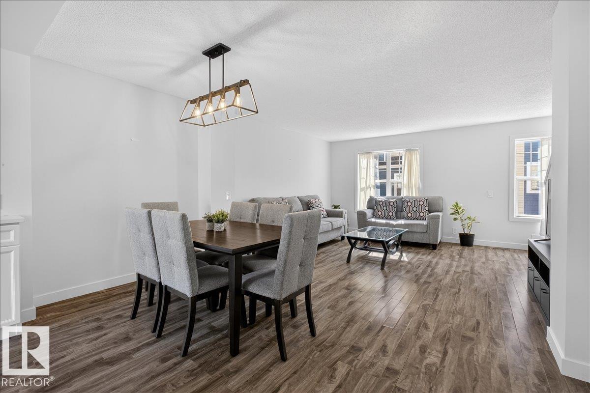 Welcome to Mosaic Parkland in the Hamptons! This beautifully updated townhouse offers 1,224 sq ft of bright, move-in-ready living. The open-concept main floor features durable laminate flooring, large windows, and a spacious living and dining area. The kitchen, with stainless steel appliances, is perfect for entertaining and is complete with quartz countertops and a tile backsplash. A main-level 2-piece bath adds convenience, while the partially finished basement offers flexible space to suit your lifestyle. Retreat upstairs to two generous primary suites, each featuring a sleek 4-piece ensuite. One suite offers a spacious walk-in closet, while the other includes two large closets for ample storage. Enjoy low-maintenance living with exterior upkeep included, a private fenced yard space, plus a double attached garage that is insulated, drywalled, and painted! Conveniently located near shopping, schools, transit, and major commuter routes. (id:63190)