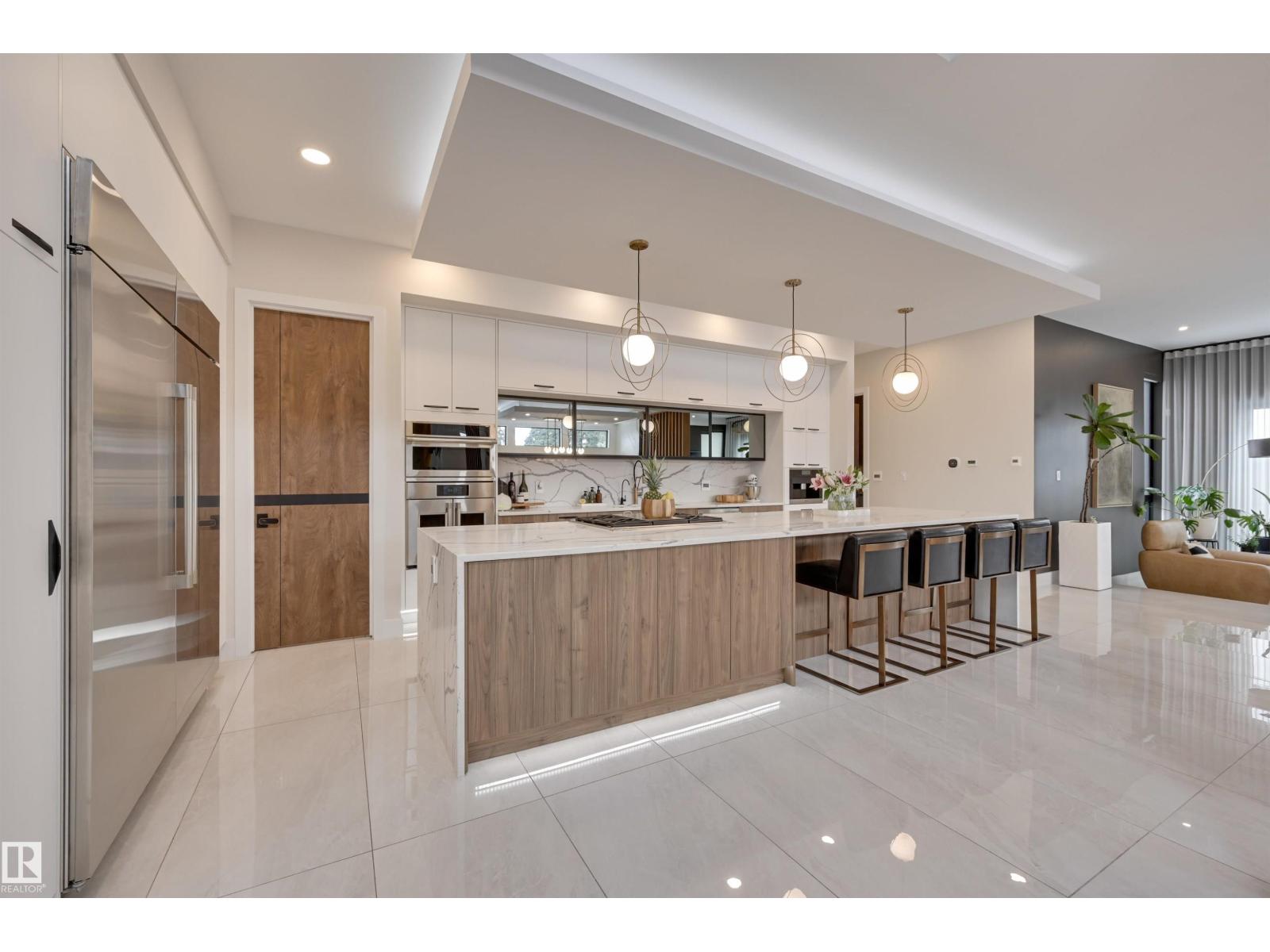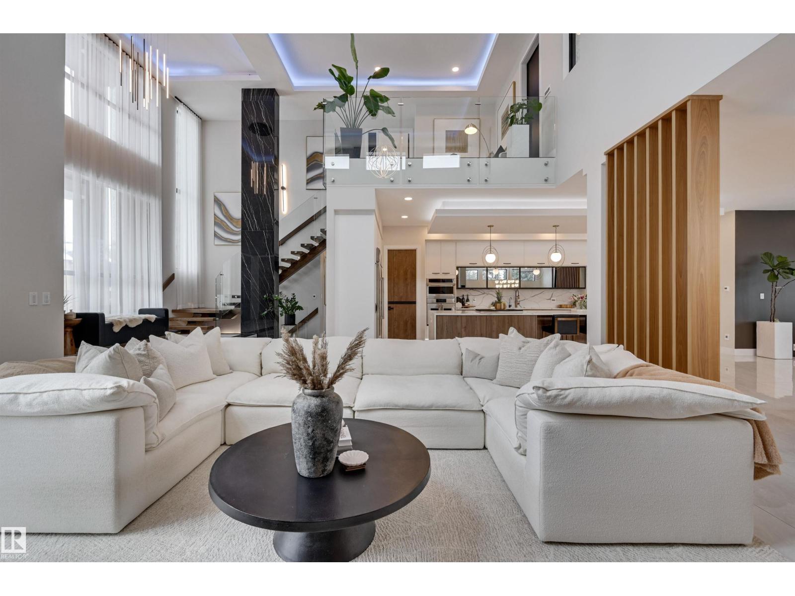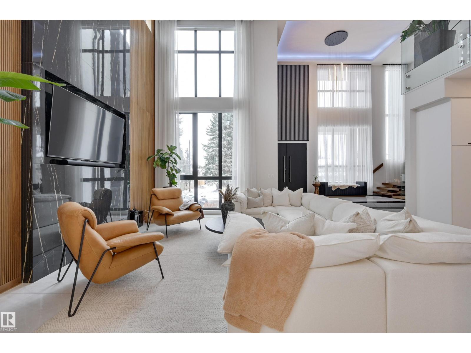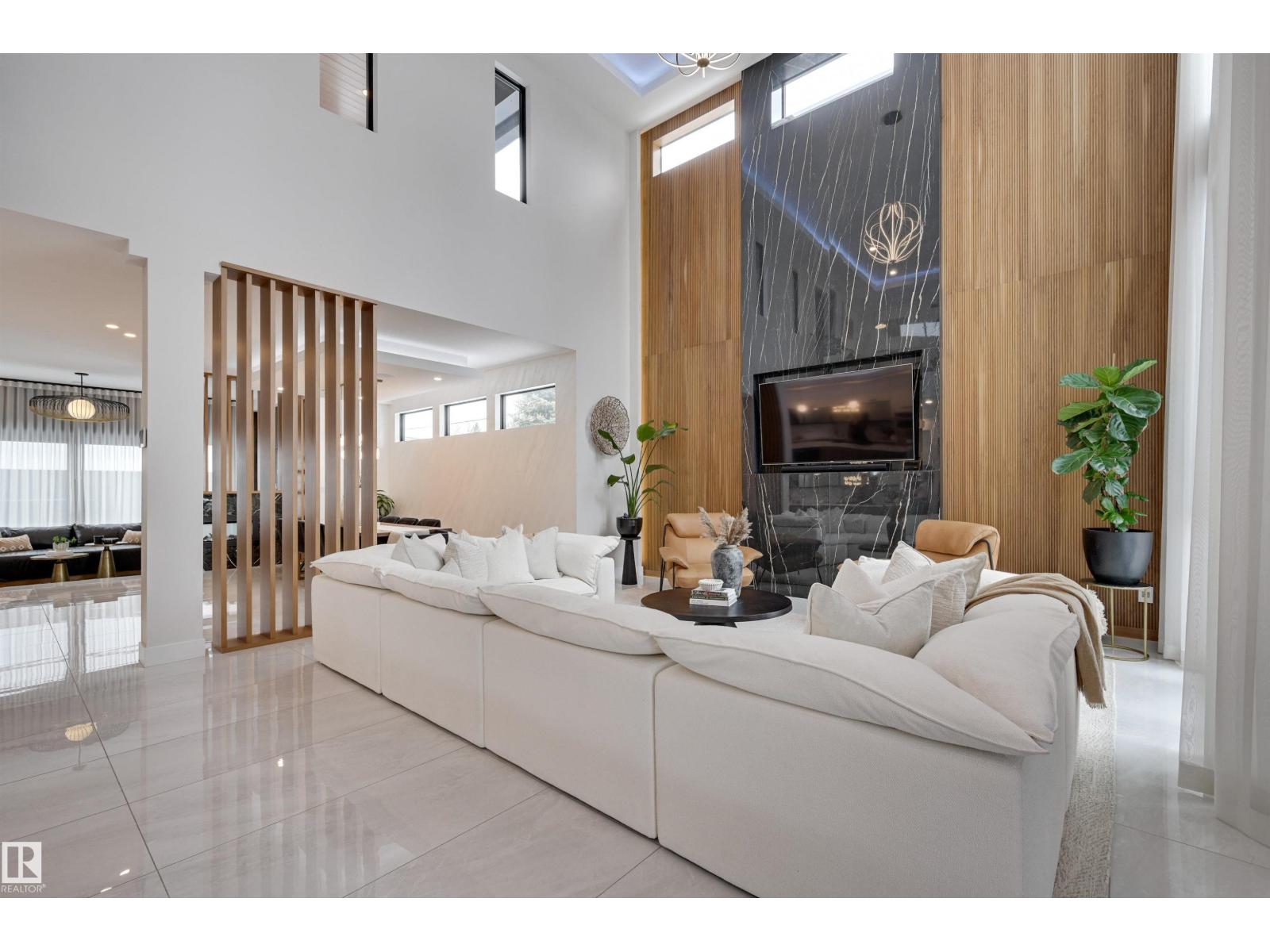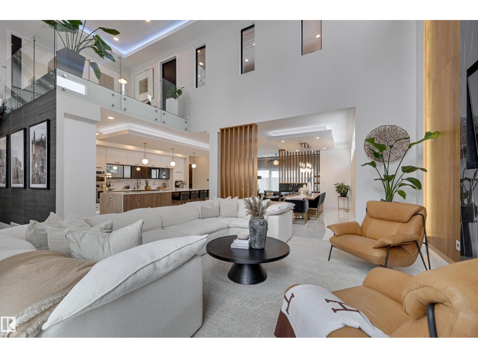 Welcome to this breathtaking custom luxury residence, masterfully designed with exceptional craftsmanship and uncompromising quality throughout. Architecturally inspired, this stunning home showcases Italian imported windows, state-of-the-art mechanical systems, and exquisite attention to detail. The main living area offers grand scale, refined proportions, & a seamless blend of timeless elegance and contemporary sophistication. The chef’s kitchen is beautifully appointed with quartz countertops, oversized island, premium appliances, & butler’s pantry. Striking open-concept living room with 2-storey fireplace, clerestory windows, & rich acoustic wood detailing. Full upper-level primary retreat with spa-inspired ensuite and walk-in closet. Gorgeous 4-season room, private patio, main floor bedroom with ensuite, & office. Deluxe basement with bar, entertainment area, & 2 additional bedrooms with ensuites. Detached Triple garage with a 1 Bed/1 Bath Garage Suite. A rare offering of luxury, design, & lifestyle. (id:63190)
