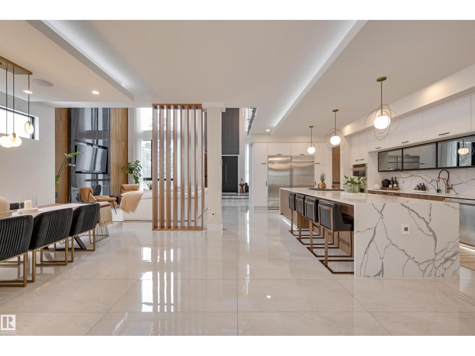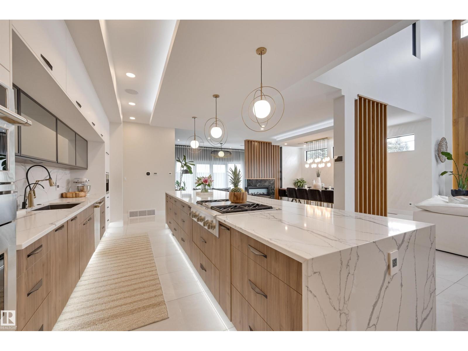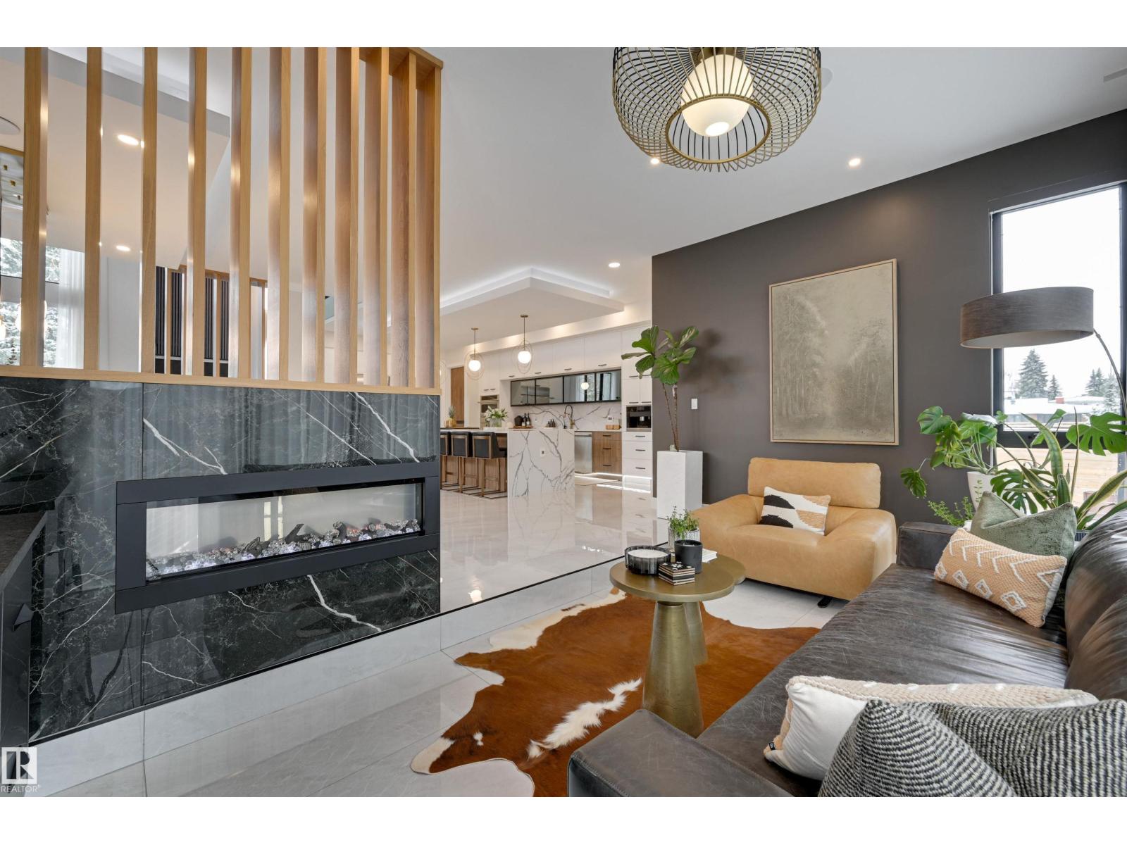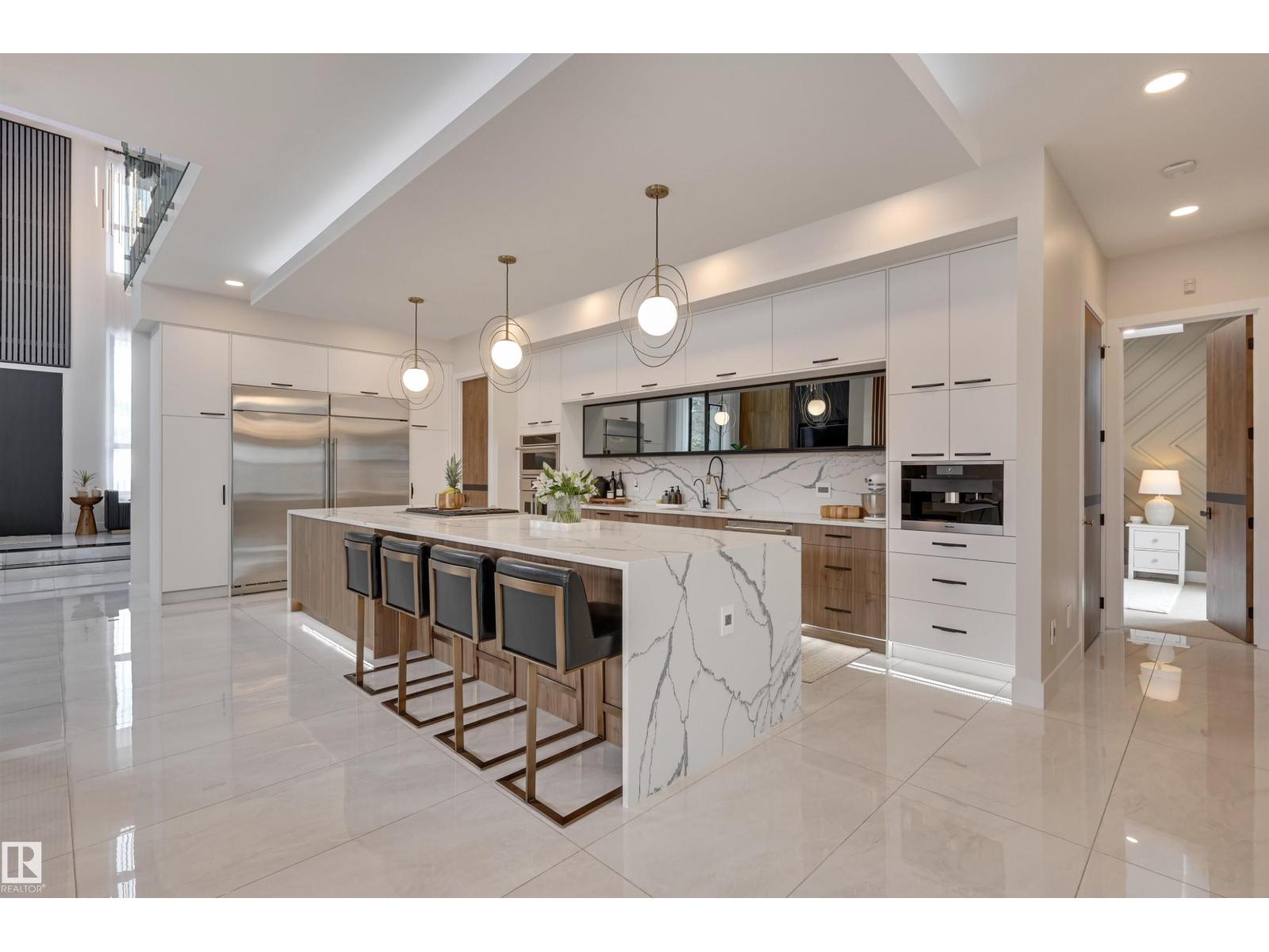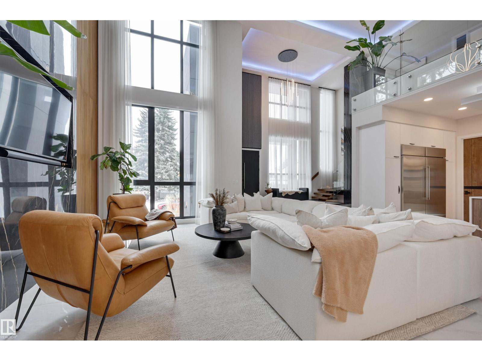 Welcome to this breathtaking custom luxury residence, masterfully designed with exceptional craftsmanship and uncompromising quality throughout. Architecturally inspired, this stunning home showcases Italian imported windows, state-of-the-art mechanical systems, and exquisite attention to detail. The main living area offers grand scale, refined proportions, & a seamless blend of timeless elegance and contemporary sophistication. The chef’s kitchen is beautifully appointed with quartz countertops, oversized island, premium appliances, & butler’s pantry. Striking open-concept living room with 2-storey fireplace, clerestory windows, & rich acoustic wood detailing. Full upper-level primary retreat with spa-inspired ensuite and walk-in closet. Gorgeous 4-season room, private patio, main floor bedroom with ensuite, & office. Deluxe basement with bar, entertainment area, & 2 additional bedrooms with ensuites. Detached Triple garage with a 1 Bed/1 Bath Garage Suite. A rare offering of luxury, design, & lifestyle. (id:63190)