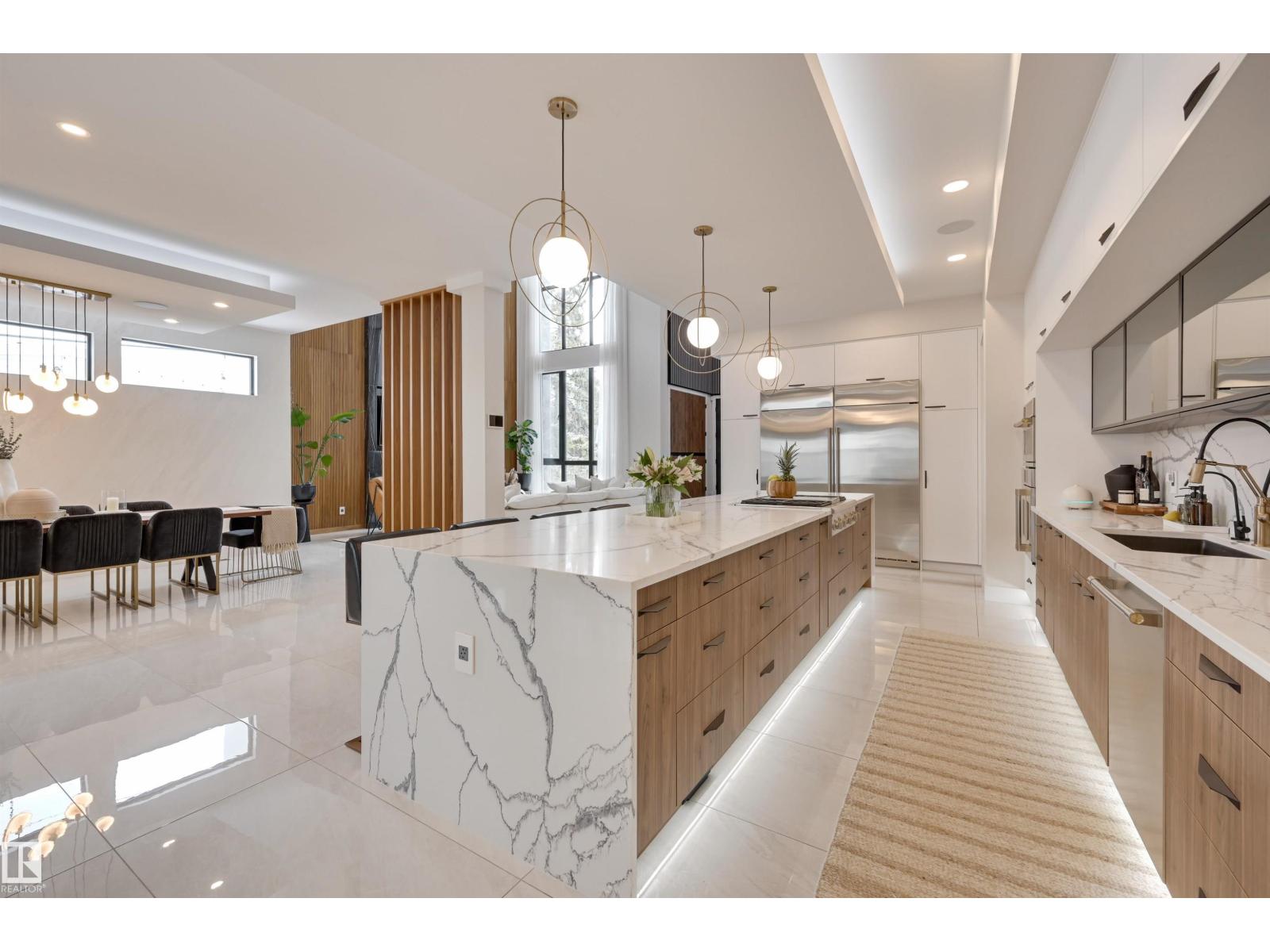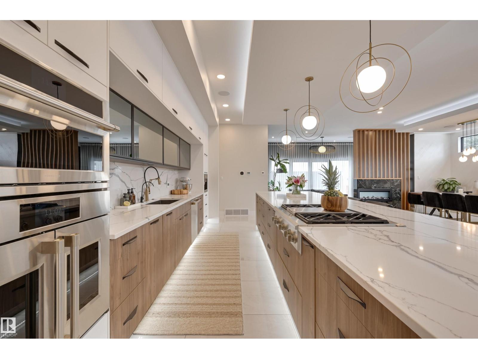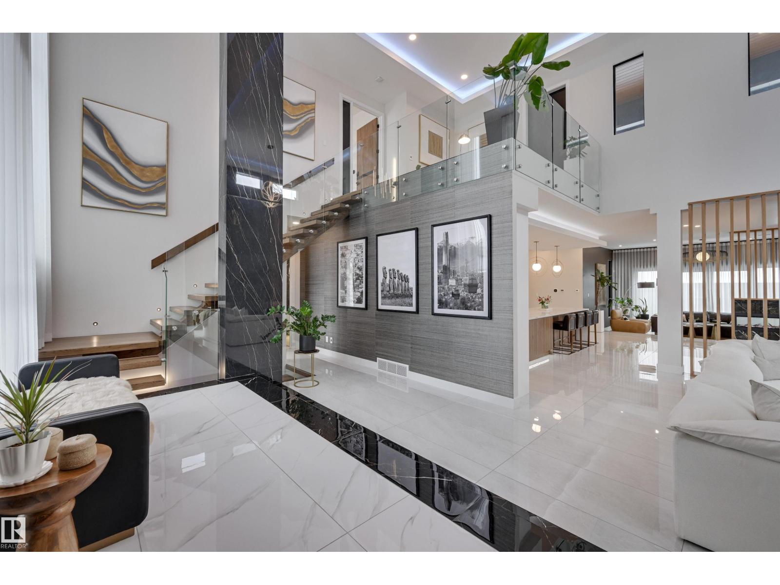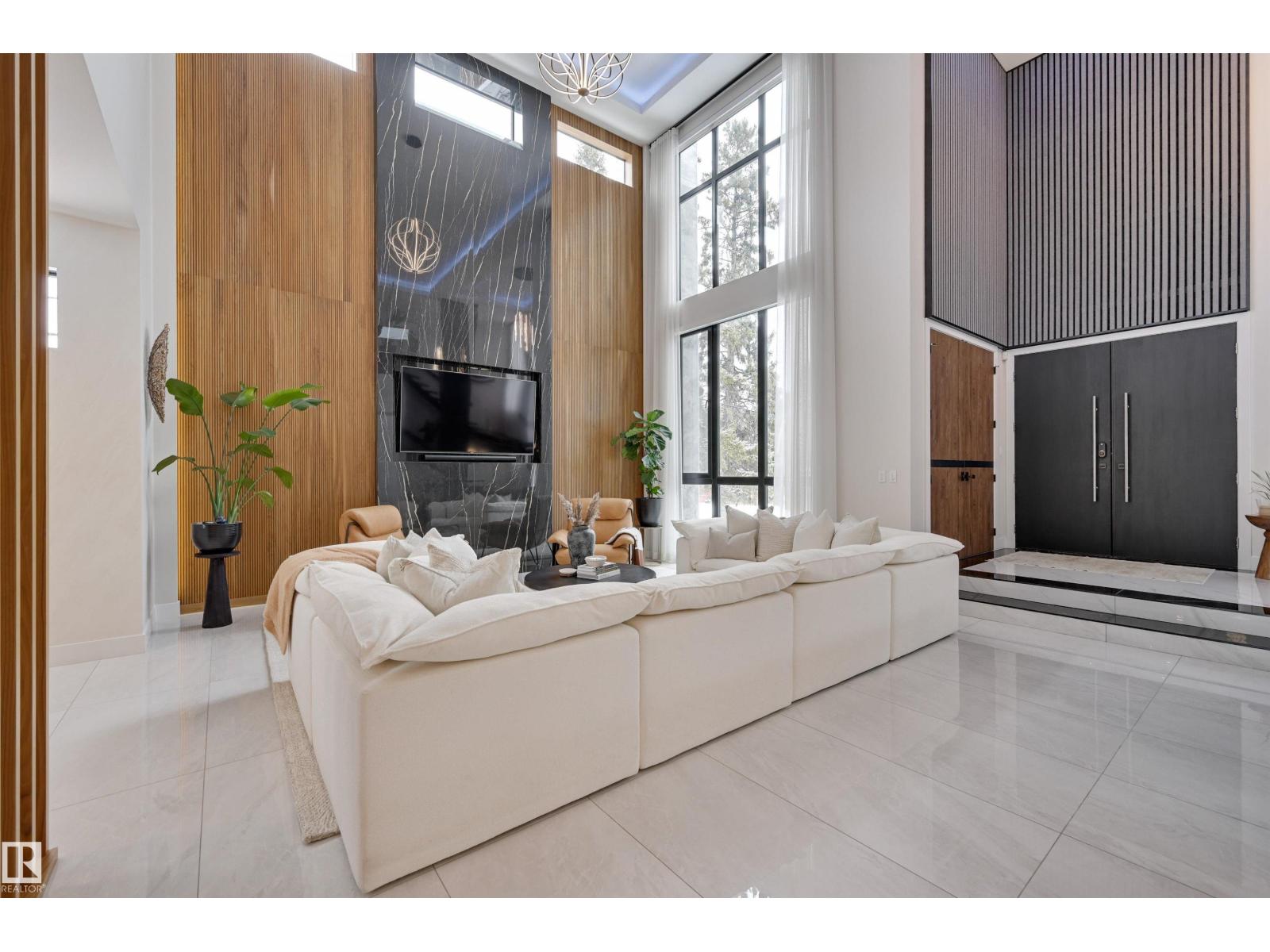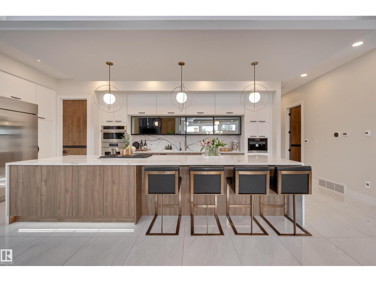 Welcome to this breathtaking custom luxury residence, masterfully designed with exceptional craftsmanship and uncompromising quality throughout. Architecturally inspired, this stunning home showcases Italian imported windows, state-of-the-art mechanical systems, and exquisite attention to detail. The main living area offers grand scale, refined proportions, & a seamless blend of timeless elegance and contemporary sophistication. The chef’s kitchen is beautifully appointed with quartz countertops, oversized island, premium appliances, & butler’s pantry. Striking open-concept living room with 2-storey fireplace, clerestory windows, & rich acoustic wood detailing. Full upper-level primary retreat with spa-inspired ensuite and walk-in closet. Gorgeous 4-season room, private patio, main floor bedroom with ensuite, & office. Deluxe basement with bar, entertainment area, & 2 additional bedrooms with ensuites. Detached Triple garage with a 1 Bed/1 Bath Garage Suite. A rare offering of luxury, design, & lifestyle. (id:63190)