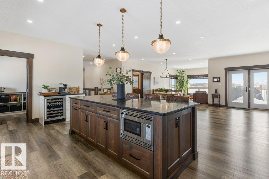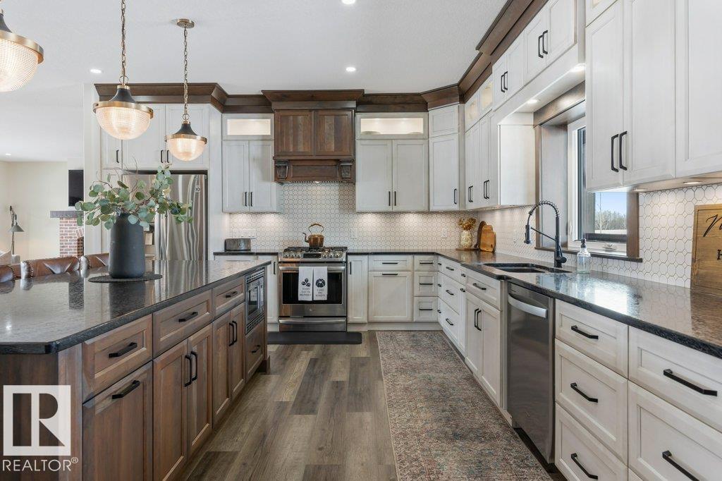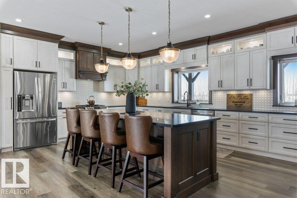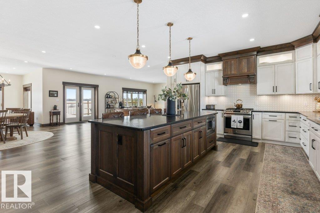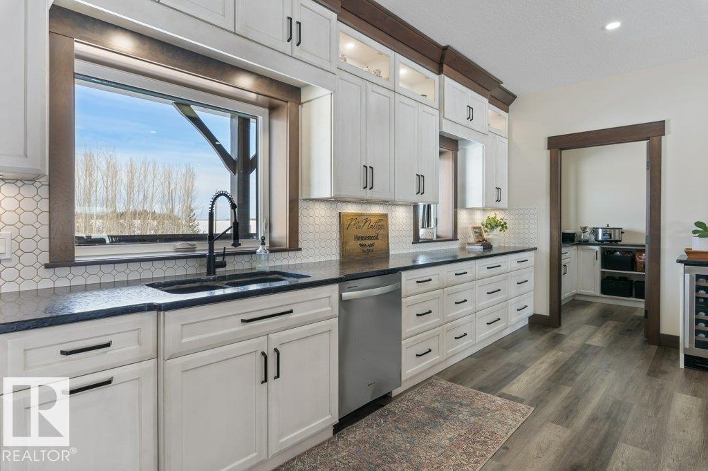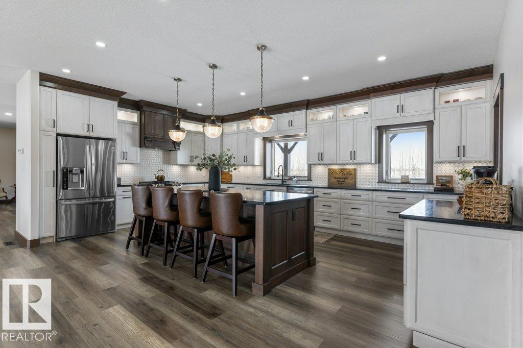 Located on 12 Acres & a 1/2 a mile off of HWY 44, this METICULOUS, LIKE NEW ICF home offers over 6,500 sq ft of detailed living space and a 6000 sqft refurbished shop offering over 12,000 sqft of AMAZING SPACE. If you have a large family or are looking for a multi-generational estate home this 7+BDRM BUNGALOW with an extra large garage that can fit up to 5 cars lets you live in style & set up your business. Features include: Luxurious kitchen with professional series appliances, custom millwork throughout, SUNDRENCHED ROOMS, separate loft/bdrm with ensuite & A/C, spectacular master with 5pc spa inspired ensuite, 3 lower bdrms, 1 including attached living area, second kitchen, theatre rm, rec rm, & 2 feature FP's just to start. THE HEATED 6000 SQFT SHOP WITH 3 OVERHEAD DOORS has 4 separate workshops & a 3 pc bath. The 12 acres is set up for a hobby farm with water to pastures, out building, dugout & creek. Additional features include radiant in floor heating & state of the art osmosis system & much more (id:63190)