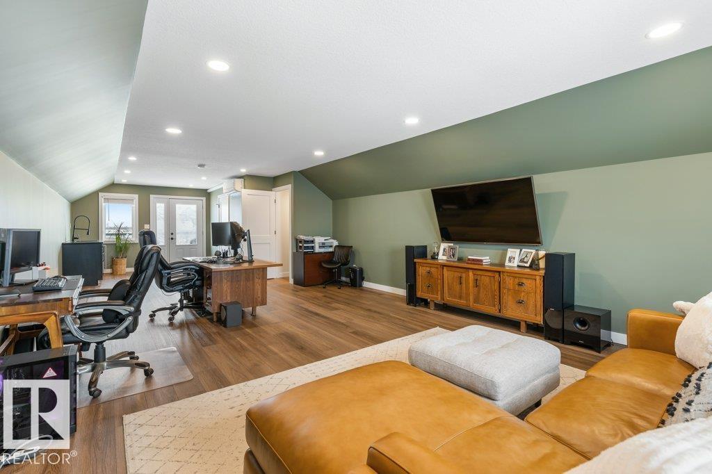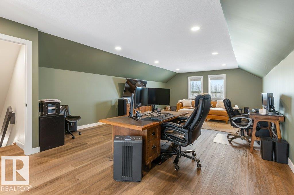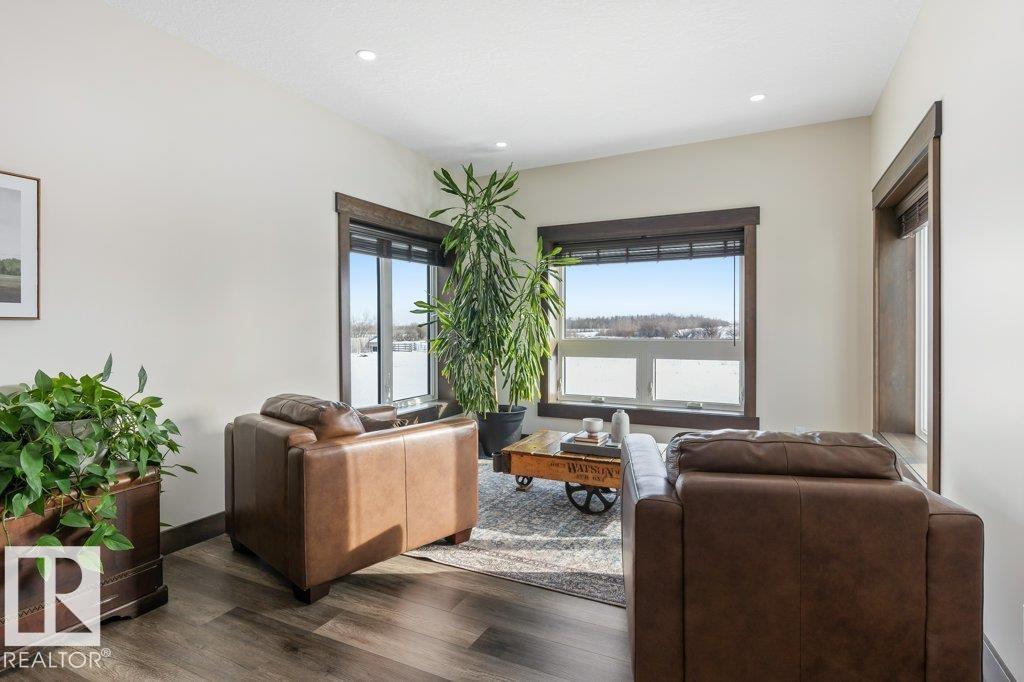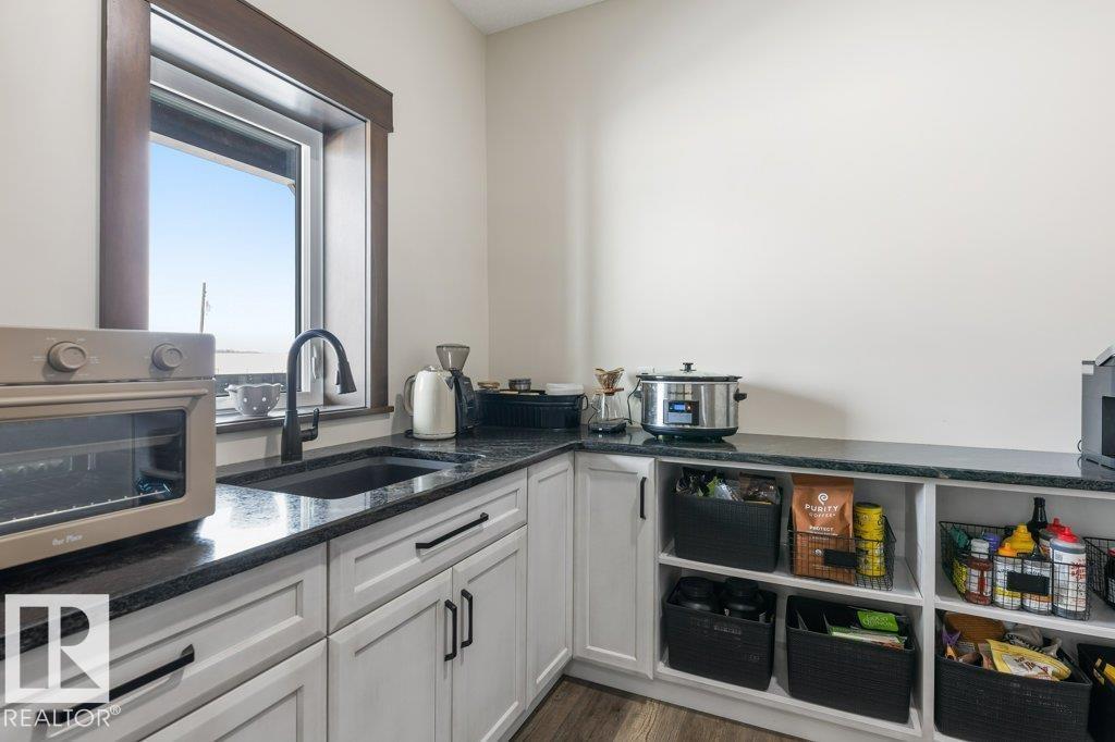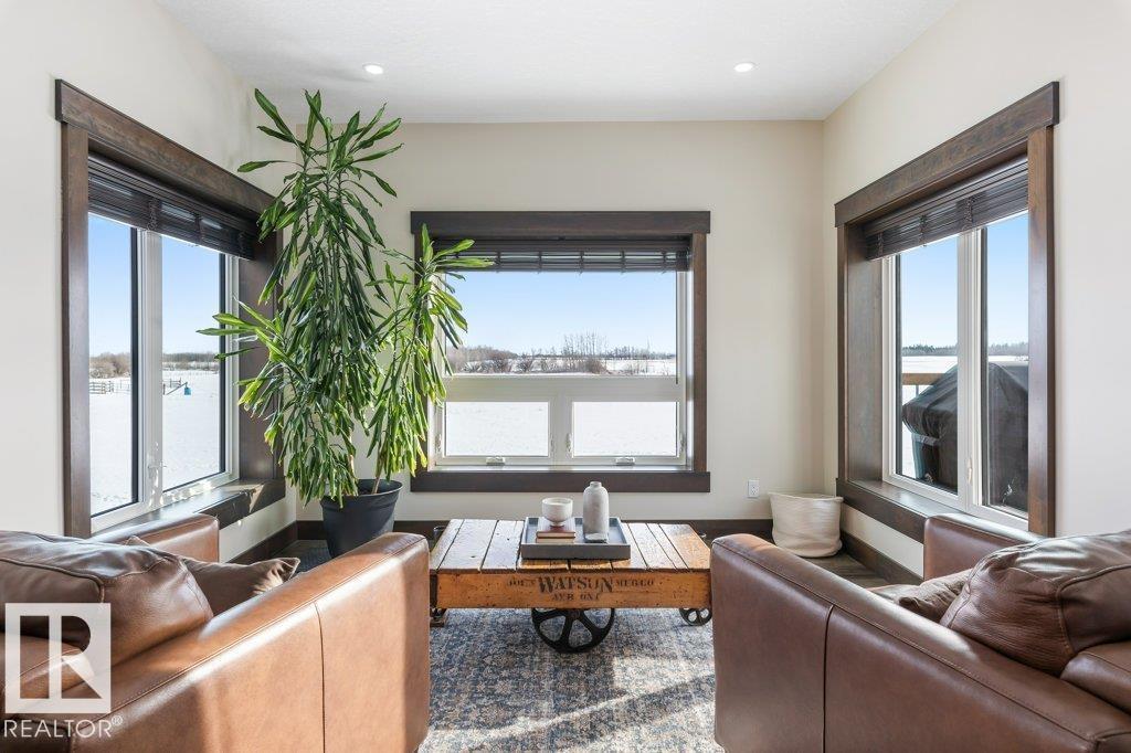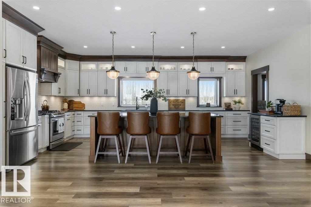 Located on 12 Acres & a 1/2 a mile off of HWY 44, this METICULOUS, LIKE NEW ICF home offers over 6,500 sq ft of detailed living space and a 6000 sqft refurbished shop offering over 12,000 sqft of AMAZING SPACE. If you have a large family or are looking for a multi-generational estate home this 7+BDRM BUNGALOW with an extra large garage that can fit up to 5 cars lets you live in style & set up your business. Features include: Luxurious kitchen with professional series appliances, custom millwork throughout, SUNDRENCHED ROOMS, separate loft/bdrm with ensuite & A/C, spectacular master with 5pc spa inspired ensuite, 3 lower bdrms, 1 including attached living area, second kitchen, theatre rm, rec rm, & 2 feature FP's just to start. THE HEATED 6000 SQFT SHOP WITH 3 OVERHEAD DOORS has 4 separate workshops & a 3 pc bath. The 12 acres is set up for a hobby farm with water to pastures, out building, dugout & creek. Additional features include radiant in floor heating & state of the art osmosis system & much more (id:63190)
