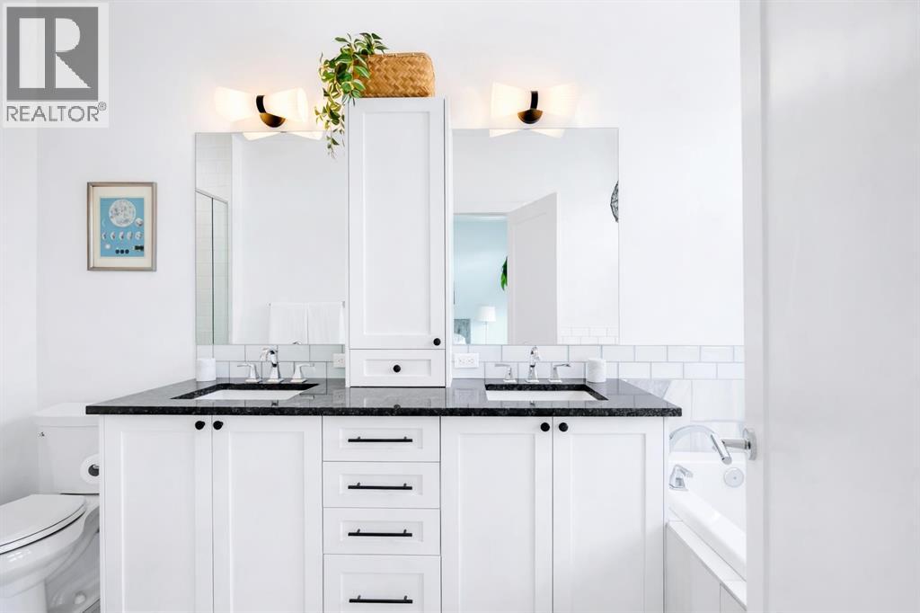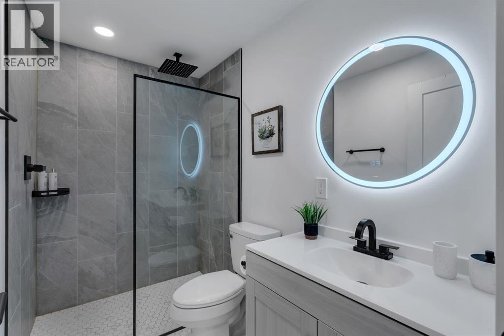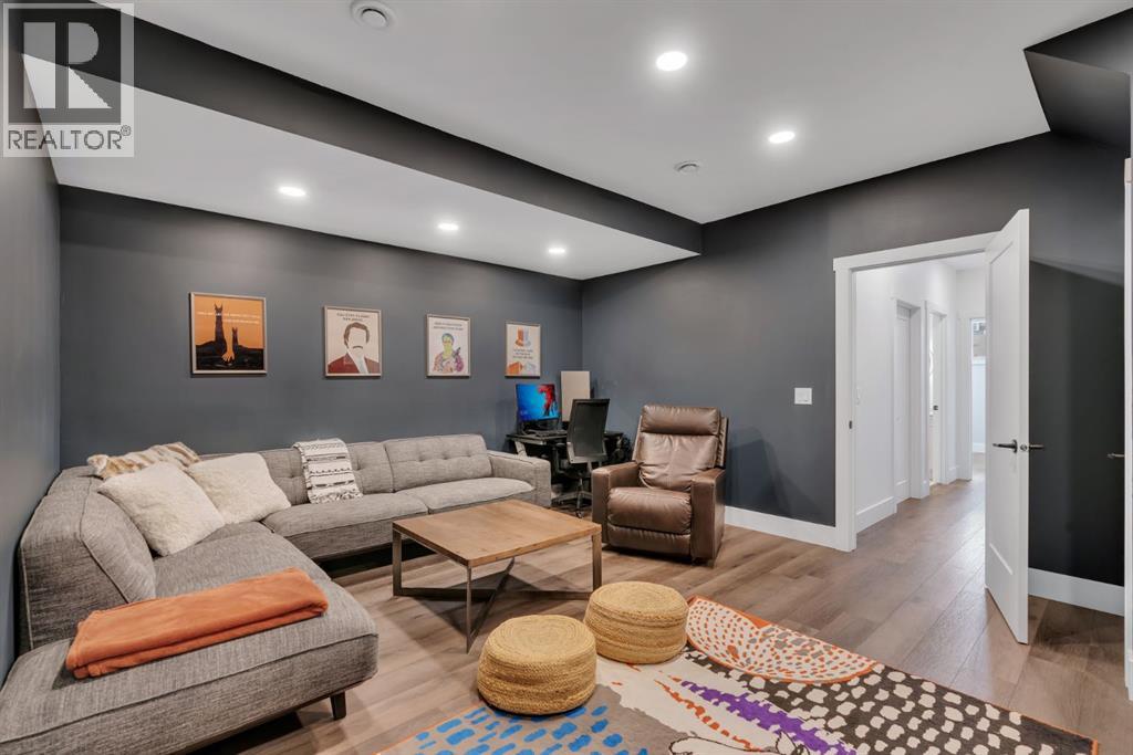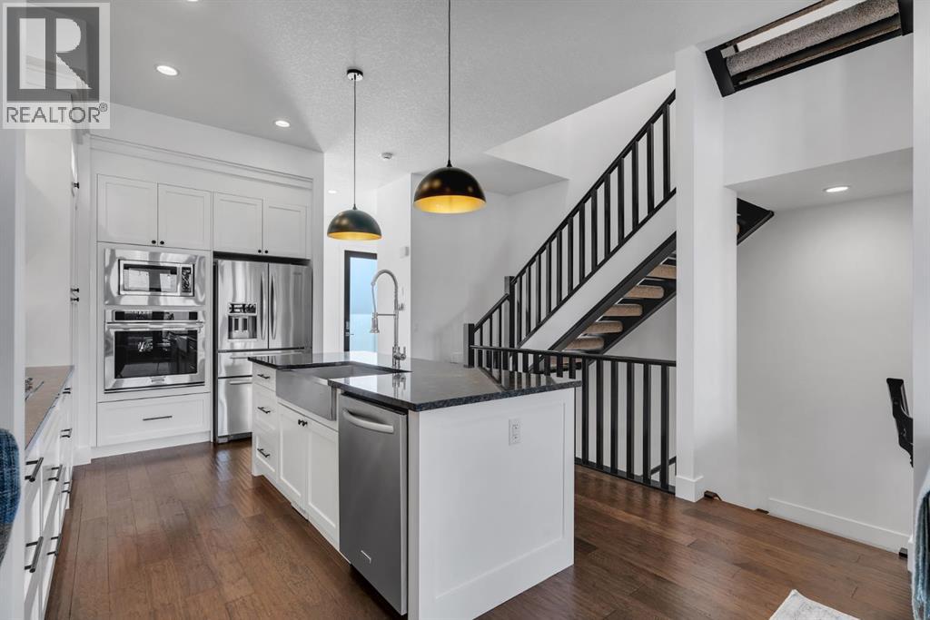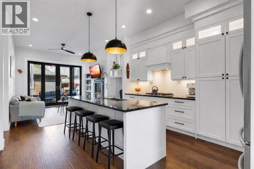 OPEN HOUSE SAT 12-2M* Your inner-city home awaits. Experience urban living at its finest in this custom-built contemporary residence in the heart of Killarney, offering over 2,400 sq ft of thoughtfully designed living space.The main floor features a distinctive layout that balances bright, open-concept living with a private front dining room—perfect for hosting memorable dinners. Soaring 10-foot ceilings and expansive windows flood the space with natural light, while refined finishes elevate every corner. In the Kitchen you will find a stainless steel appliance package complete with built in oven & gas cooktop for your inner Chef. Shaker cabinetry with glass accents and a built in hood fan provide ample storage, and the central island with designer pendant lighting is the perfect gathering place for the home. A paneled fireplace with crisp shaker detailing anchors the living room, creating a warm and inviting atmosphere. Completing the main level is a functional mudroom with custom millwork and a private 2-piece powder room.Ascend the striking open-riser staircase with a sleek black railing, illuminated by a strategically placed skylight above. The upper level offers three spacious bedrooms, a convenient laundry area, and two full bathrooms. The primary suite is a true retreat, featuring elegant ceiling detail, a fan, and a luxurious 5-piece ensuite with double vanities, a soaker tub, and a walk-in shower. The front bedroom impresses with vaulted ceilings and a rare walk-in closet—an exceptional feature for a secondary bedroom.The fully finished basement expands your living space with a large family room, complete with a built-in bar and electric fireplace—perfect for movie nights or relaxing evenings. A fourth bedroom with an oversized window and concrete window well allows for abundant natural light, complemented by a generous walk-in closet and a 4-piece bathroom with a walk-in shower. Additional storage, including space beneath the stairs, along with upgrades such as custom window coverings, air conditioning, and central vacuum, add to the home’s exceptional functionality.Step outside to a beautifully designed west-facing backyard, ideal for evening entertaining. Enjoy custom landscaping, a built-in BBQ, and a stunning pergola over a rich Balau hardwood deck with integrated planter.A double detached garage provides secure parking and ample storage.All of this is ideally situated on a quiet street in sought-after Killarney—just a 10-minute walk to Westbrook C-Train station and shopping. Enjoy nearby local favorites like Luke’s Drug Mart, or take advantage of quick access to major roadways for effortless trips to the mountains. With close proximity to Westhills, Marda Loop, and countless amenities, this turn-key home offers incredible value in an unbeatable location. (id:63190)